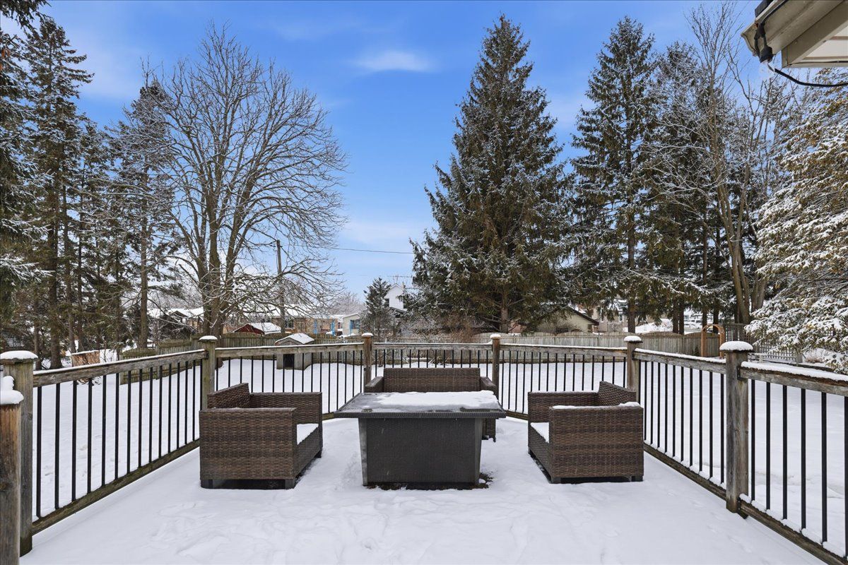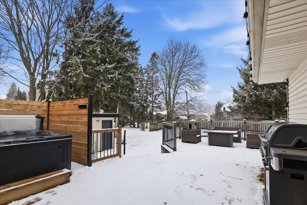 Welcome to this elegantly updated bungalow in seaforth, offering refined main floor living in a beautifully finished home. Featuring 3 bedrooms and 1 stylish bathroom, this residence has been thoughtfully updated with quality and comfort in mind. The stunning brand new kitchen is the true centrepiece, showcasing quartz countertops, custom cabinetry, a granite sink, pantry closet, new range hood, and brand-new fridge and dishwasher. A large island makes entertaining easy and functional. New laminate flooring flows seamlessly throughout the home, complemented by fresh paint, brand-new interior doors, window trim, and baseboards, along with updated interior and exterior fixtures and spotlights for a cohesive, modern aesthetic. A steel roof completed in 2023 adds lasting value and peace of mind. The bathroom has been completely upgraded, creating a spa-inspired space. Convenience meets functionality with a new washer and dryer located on the main level, making everyday living even more effortless. Step outside to the expansive deck, relax in the hot tub or enjoy a quiet evening by the fire, overlooking a spacious backyard with room to relax, play, or unwind. A truly move in ready home offering effortless living on one level, ideal for those seeking style, comfort, and quality in a beautifully finished home.