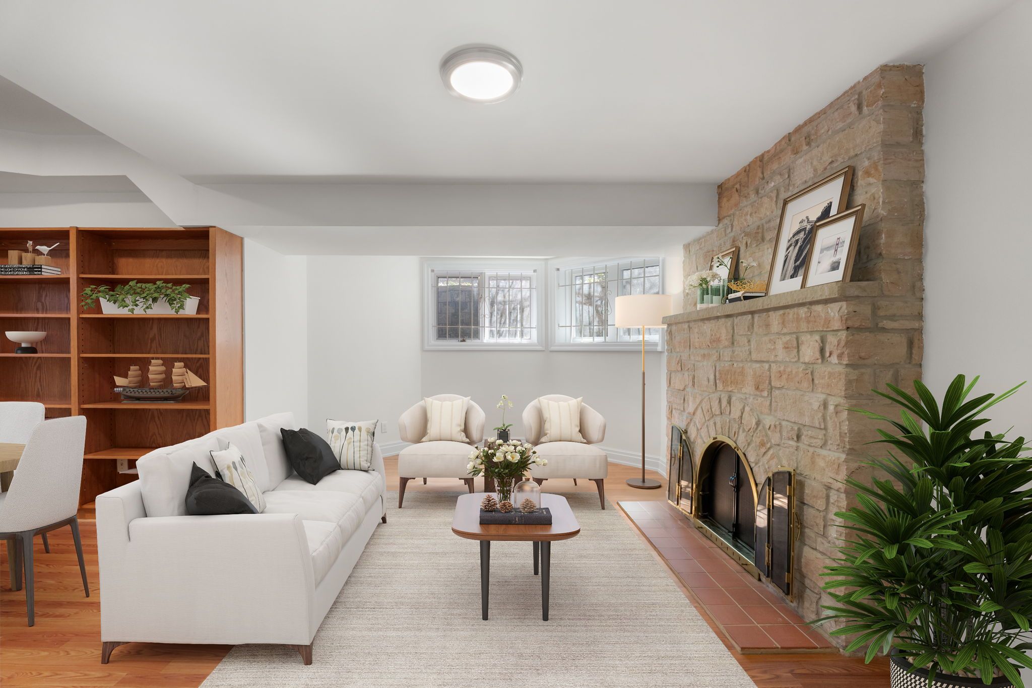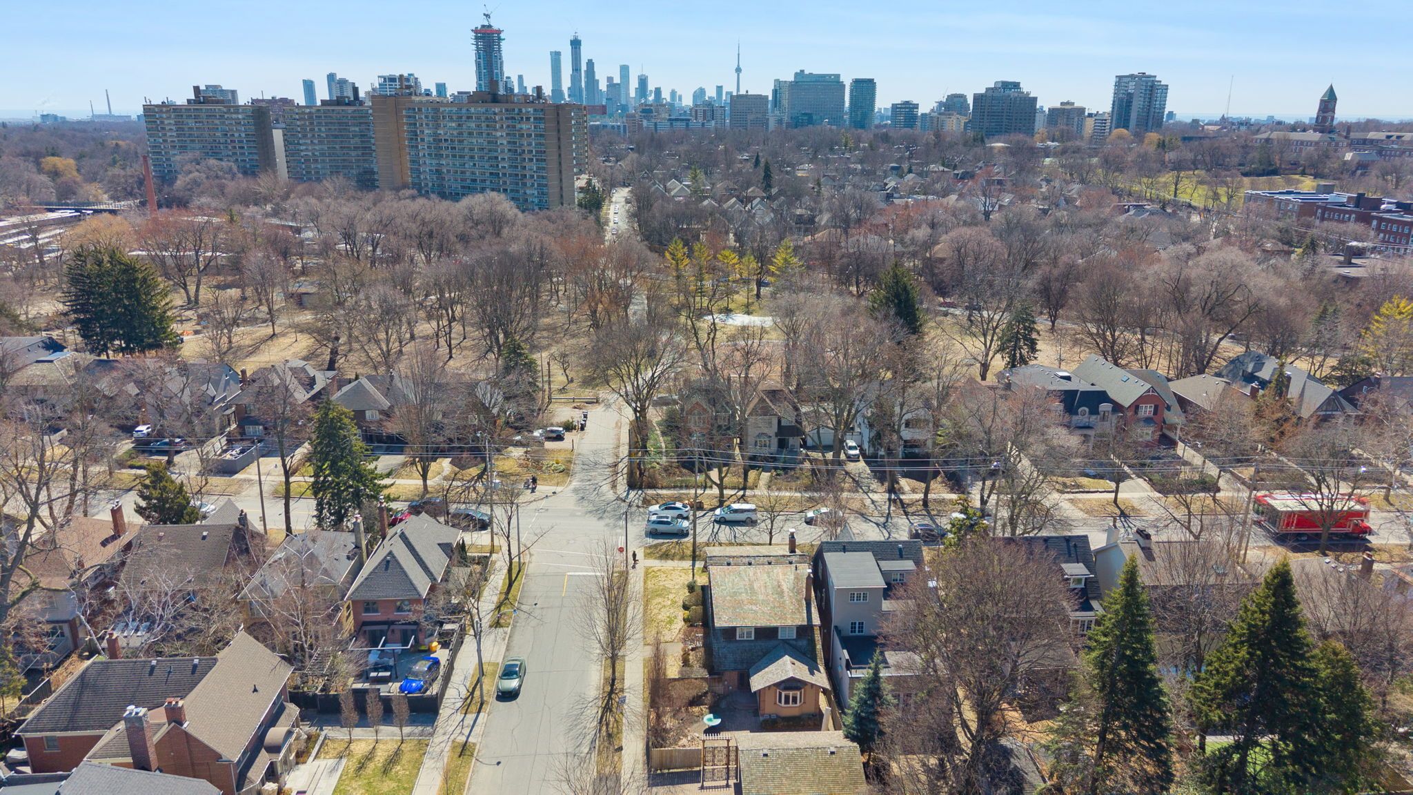 Backing onto oriole park, this elegant detached residence in chaplin estates offers a rare sense of calm, privacy, and space in one of midtown's most established family neighbourhoods. Set on a beautifully landscaped corner lot, the home feels quietly distinguished from the moment you arrive, with mature gardens framing every approach and a fenced backyard that opens to a peaceful private patio. Inside, the scale is immediately welcoming. A generous foyer with double doors, ample storage, and a discreet powder room introduces a main floor designed for both entertaining and comfortable daily life. To one side, a beautifully appointed sitting room with a bay window, fireplace, and built-in bookshelves offers a refined retreat - equally suited to a formal living room, library, or private home office. Warm oak floors carry throughout the main level, adding richness and continuity. The eat-in kitchen is bright and inviting, with upgraded stainless steel appliances and abundant natural light. It flows into the dining room, where sliding doors open to the garden. The dining room overlooks a stunning sunken family room centered around a statement stone fireplace and with expansive bay windows overlooking the backyard. Upstairs, the primary suite enjoys beautiful views over the park, a spacious closet, a spa-like ensuite with soaker tub, and a private south-facing balcony. Two additional bedrooms with dedicated double closets and a skylit family bath complete the second floor. The finished lower level adds more flexibility, offering a bright recreation room with a second stone fireplace and custom built-ins, a fourth bedroom, a powder room, and a discreet ventilated wine cellar. With detached garage parking, additional driveway space, and easy access to oriole park, davisville subway station, the kay gardner beltline trail, top schools, and the restaurants & shops along yonge st, this home offers both everyday ease and lasting elegance in an established toronto enclave.