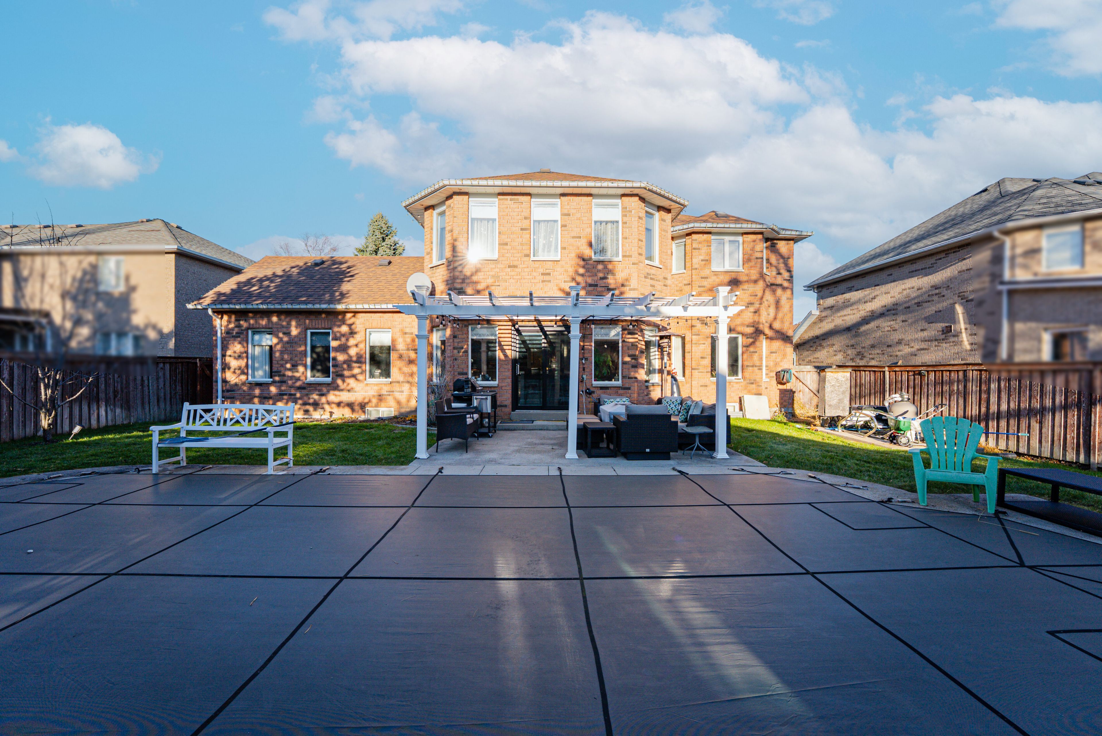 • In-ground heated pool surrounded by beautiful landscaping for relaxation.