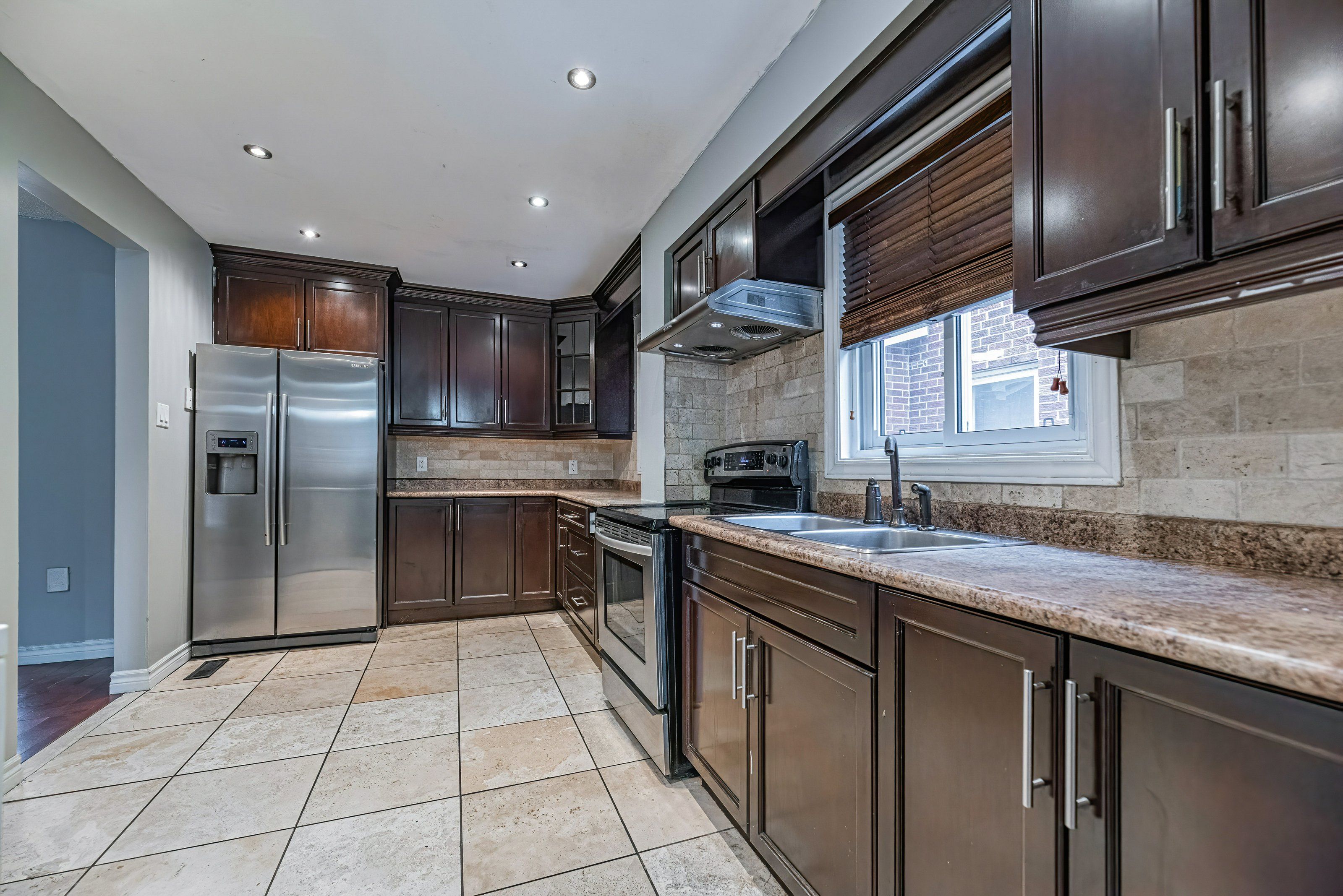 Rare find! Main & upper level! 3 bedroom, 2 storey home with 2 parking + walkout to large fenced yard. Features custom family-sized kitchen with stainless steel appliances, tile floor and lots of counter & cabinet space! Open concept living & dining area with walkout to back deck through french doors. Primary bedroom with semi-ensuite and double closet, private ensuite washer & dryer, hardwood flooring throughout. Large yard for relaxing, steps to amenities including walmart, restaurants, starbucks, minutes to schools, parks & hwy 410
