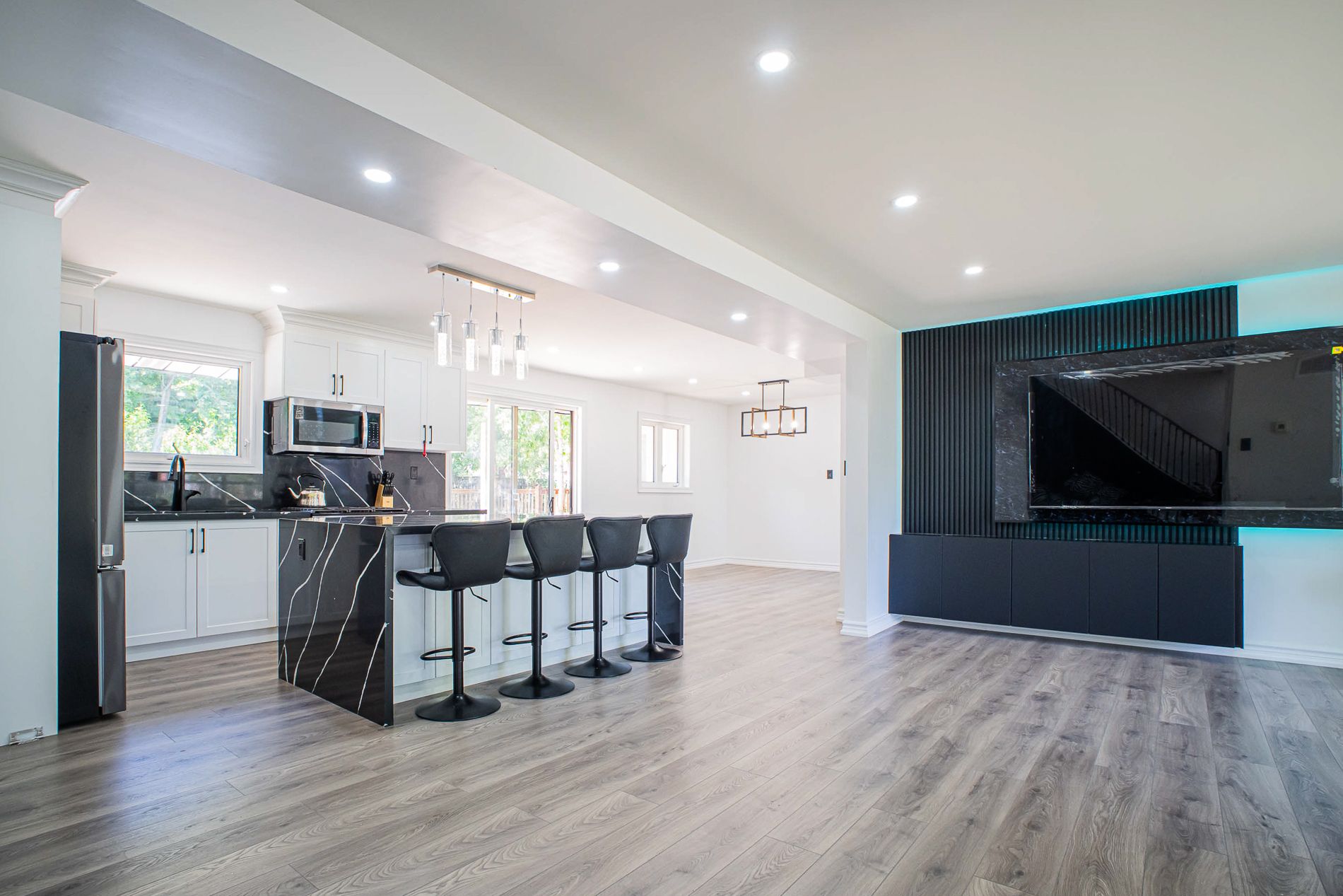 Situated on a huge premium corner lot in a highly sought-after hamilton neighbourhood, this fully renovated, move-in ready detached home offers exceptional quality, functionality, and modern design throughout. Extensively updated from top to bottom - nearly rebuilt to the studs - the home features brand new plumbing and electrical systems, providing outstanding workmanship and long-term peace of mind. The bright and inviting main floor showcases a spacious living room highlighted by a custom wall unit and a dramatic floor-to-ceiling window that fills the space with natural light. The beautifully crafted custom kitchen is designed for both everyday living and entertaining, complete with brand new stainless steel appliances, a stunning marble-look island, and a walkout to the private backyard retreat. Elegant hardwood flooring flows seamlessly throughout, creating a cohesive and contemporary aesthetic. The upper level offers three well-appointed bedrooms, including a spa-inspired primary ensuite finished with luxurious marble slabs and a deep soaker tub - the perfect space to unwind. The fully finished basement provides exceptional versatility, featuring two additional bedrooms, a separate entrance, and rough-in for a second laundry, making it ideal for extended family living or potential income opportunities. Step outside to your private backyard oasis, complete with a brand new deck, sparkling pool, and two storage sheds - perfect for entertaining and outdoor enjoyment. Furnace and hot water tank are owned. Conveniently located close to schools, parks, shopping, and everyday amenities, this turnkey property delivers quality craftsmanship, comfort, and flexibility - an outstanding opportunity not to be missed.