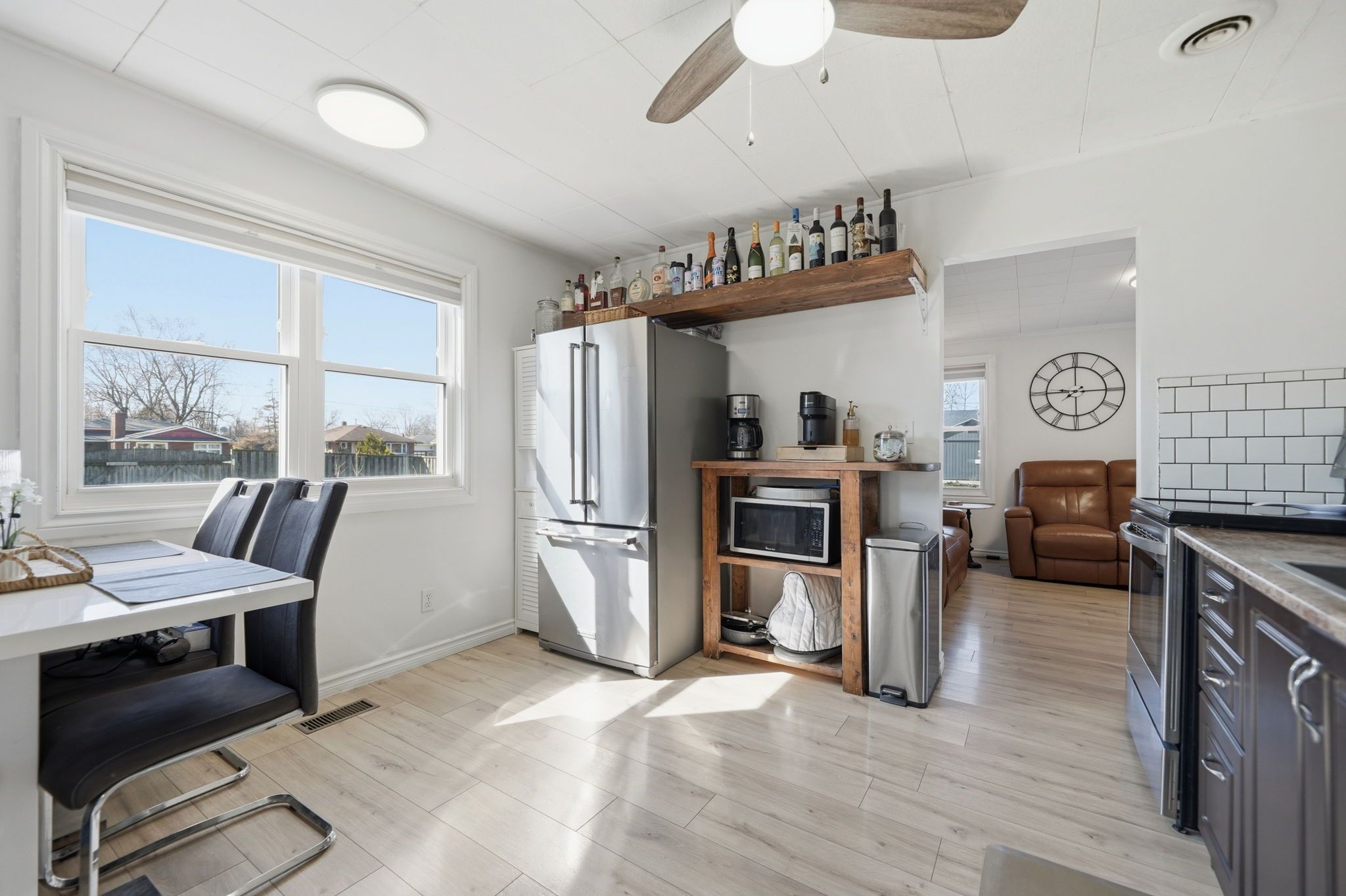 Move in ready and inviting 2 bedroom bungalow with thoughtful updates throughout, comfortable living space and spacious fully fenced backyard, large patio and storage sheds perfect for entertaining or relaxing in your private outdoor retreat. Ideal for a for first time home buyer, young professional or anyone looking for a stress free lifestyle. Updates include: electrical panel upgrade and central a/c (2021) windows, over sized deck, paved driveway (2020) eavestroughs, attic insulation and front door entry (2023) flooring (2020). Close to all amenities, international border, and highway access.
