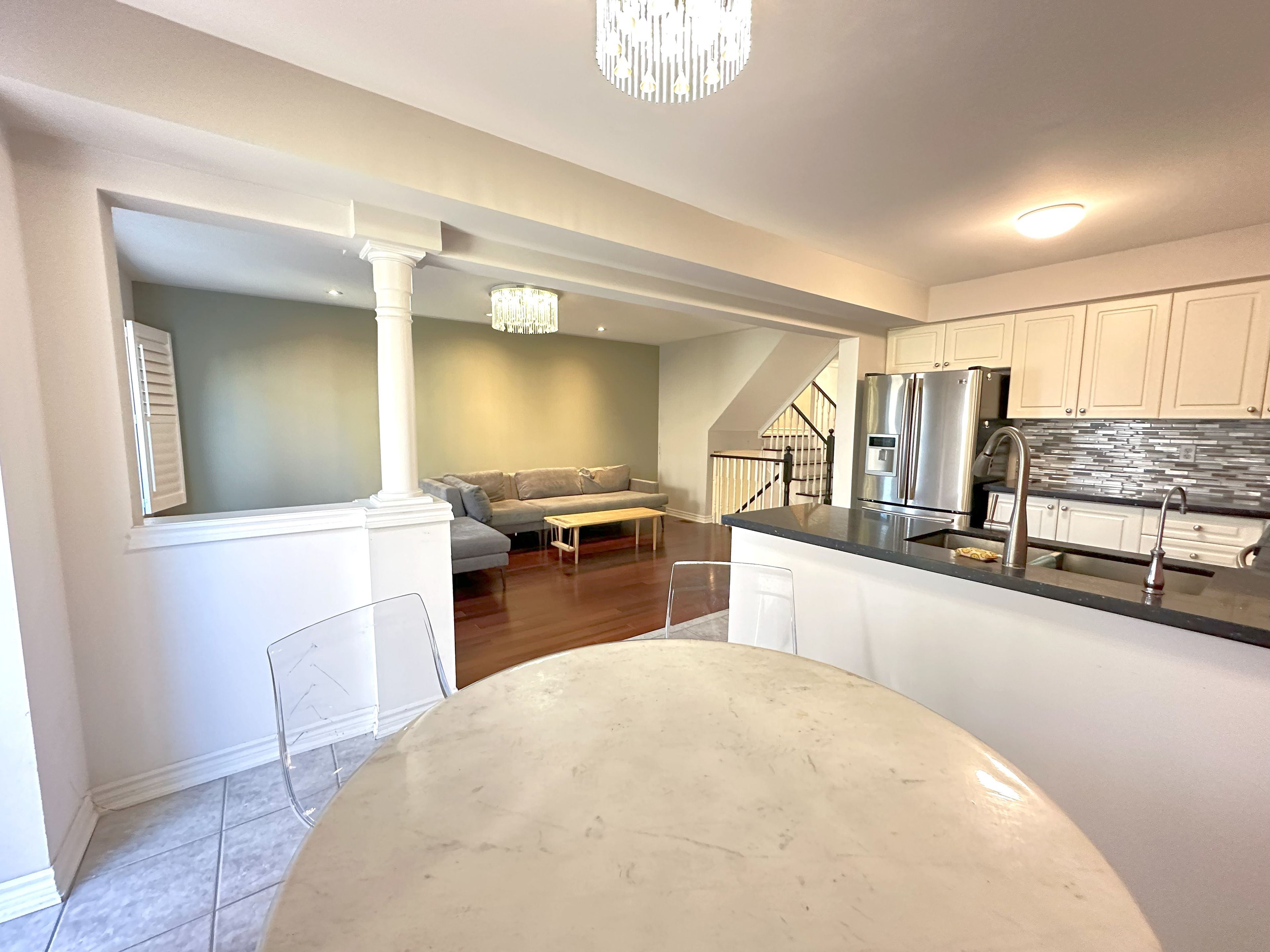 The rent includes wifi. Clean & bright freehold townhome conveniently located in desirable south unionville community. Close to go station, hwy 407 & hwy 7, t & t supermarket, restaurants, school, markville mall. Open concept main flr. Features double door entry. Modern kitchen includes a good sized breakfast area with w/o to the patio. Flooring is hardwood on both levels. Upgrades include pot lights and granite countertop in kitchen and bathrooms. The landlord will keep the den on 2nd floor for storage.
