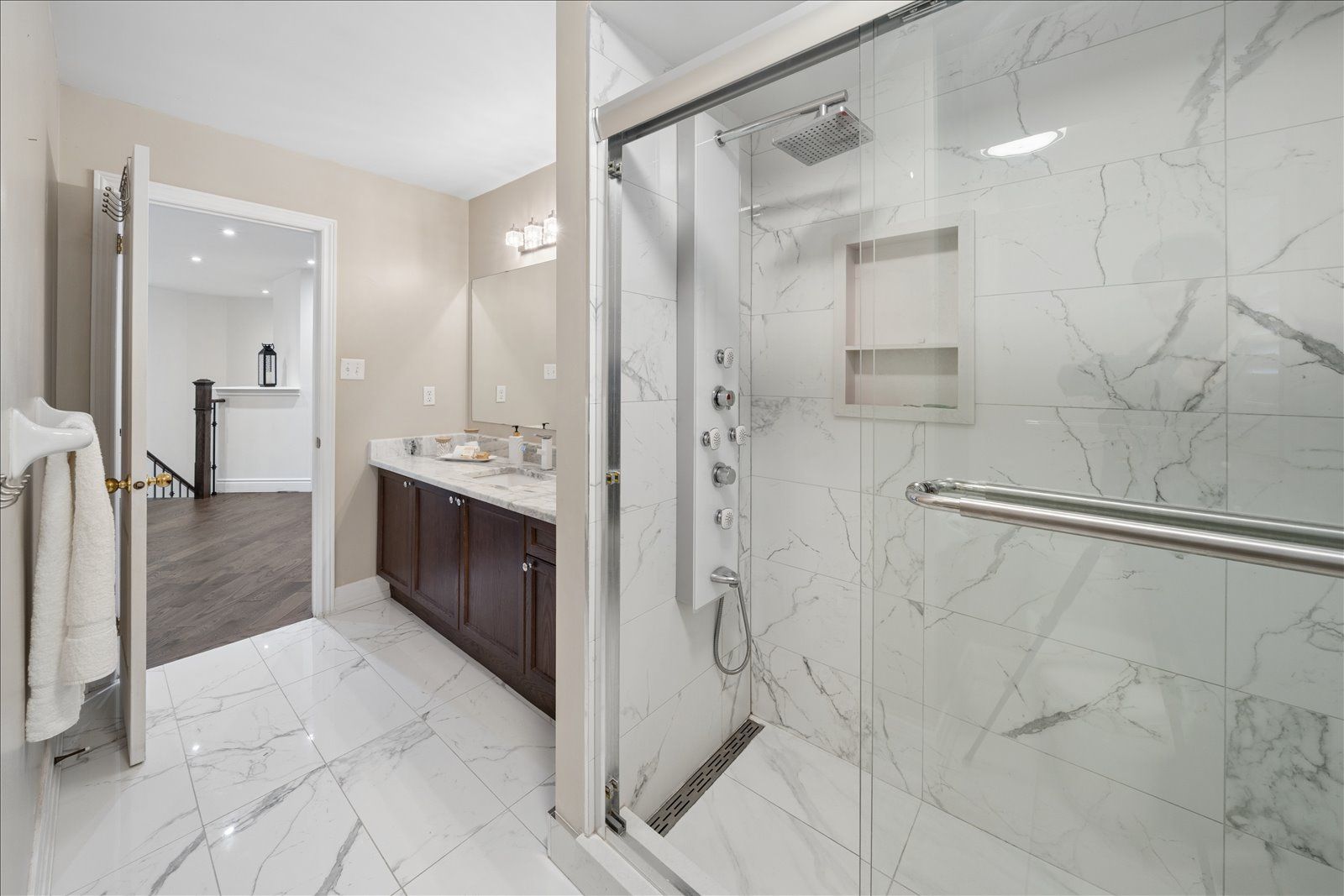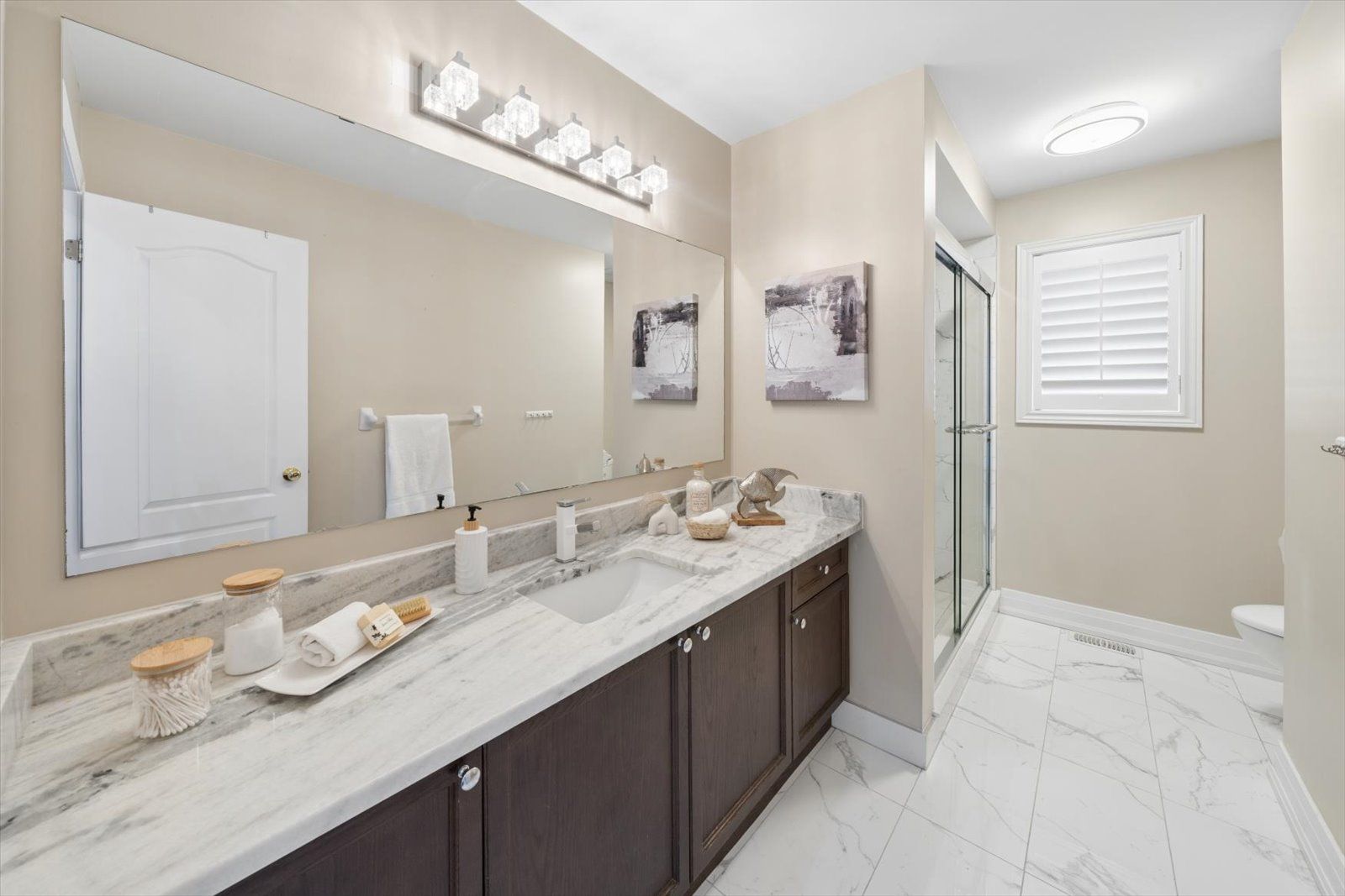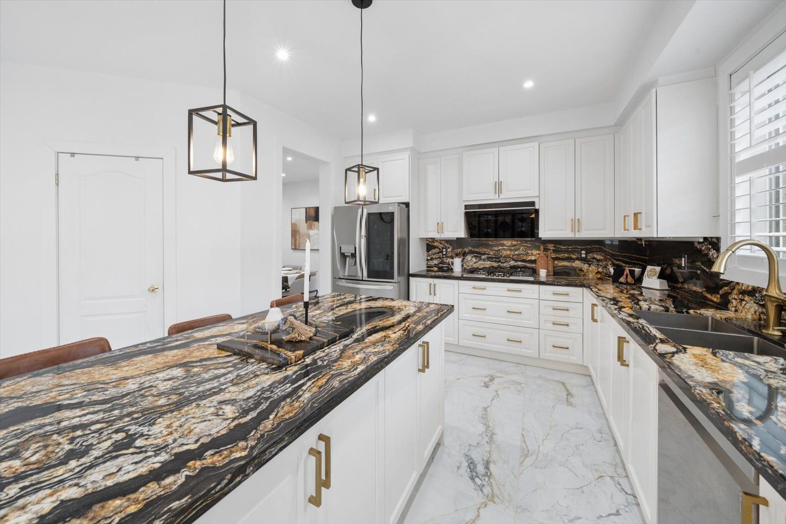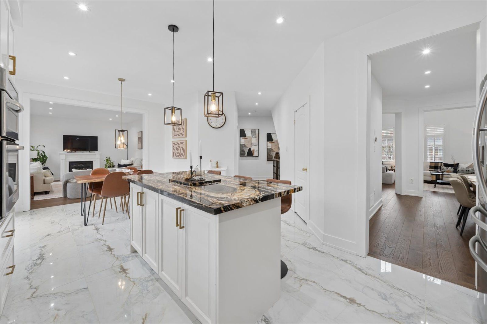 Space, style, and a stunning renovation in fabulous brooklin. This is the home you've been waiting for! Offering over 3,500 sq ft of beautifully upgraded living space plus a fully finished basement, this stunning 4+1 bedroom, 5 bathroom home was extensively renovated in 2023 with wide plank hardwood, striking oversized porcelain tile, potlights, designer lighting, california shutters, and elevated finishes throughout every level. From the street, the home's striking architecture and large front porch make an immediate statement. Step inside and the grand foyer sets the tone at once, opening directly into a breathtaking living room with soaring cathedral ceilings that stop you in your tracks. A beautiful hardwood staircase with iron pickets draws the eye upward while natural light pours through, and the hardwood floors guide you naturally through the home's generous and beautifully appointed spaces. The main floor flows with wonderful purpose, from the formal living and dining rooms ideal for entertaining, through to the warm family room with gas fireplace, and into the stunning upgraded kitchen at the heart of it all, complete with striking granite counters and backsplash, a large centre island, walk-in pantry, stainless steel appliances and a walkout to a private backyard retreat - complete with large interlock patio and ornamental/fruit trees. Upstairs, the spacious primary suite offers two walk-in closets and a luxurious 5-piece ensuite. The three extra bedrooms are generously sized, one with its own private ensuite, providing comfort and flexibility for the whole family. The fully finished basement adds exceptional versatility with the 5th bedroom, large recreation area, dedicated home office and renovated 3 pc washroom - perfect for large families or multi-generational living. This is a rare opportunity to own a home of this size, quality and presence just steps away from top-rated schools, parks and the amenities of highly sought-after brooklin.