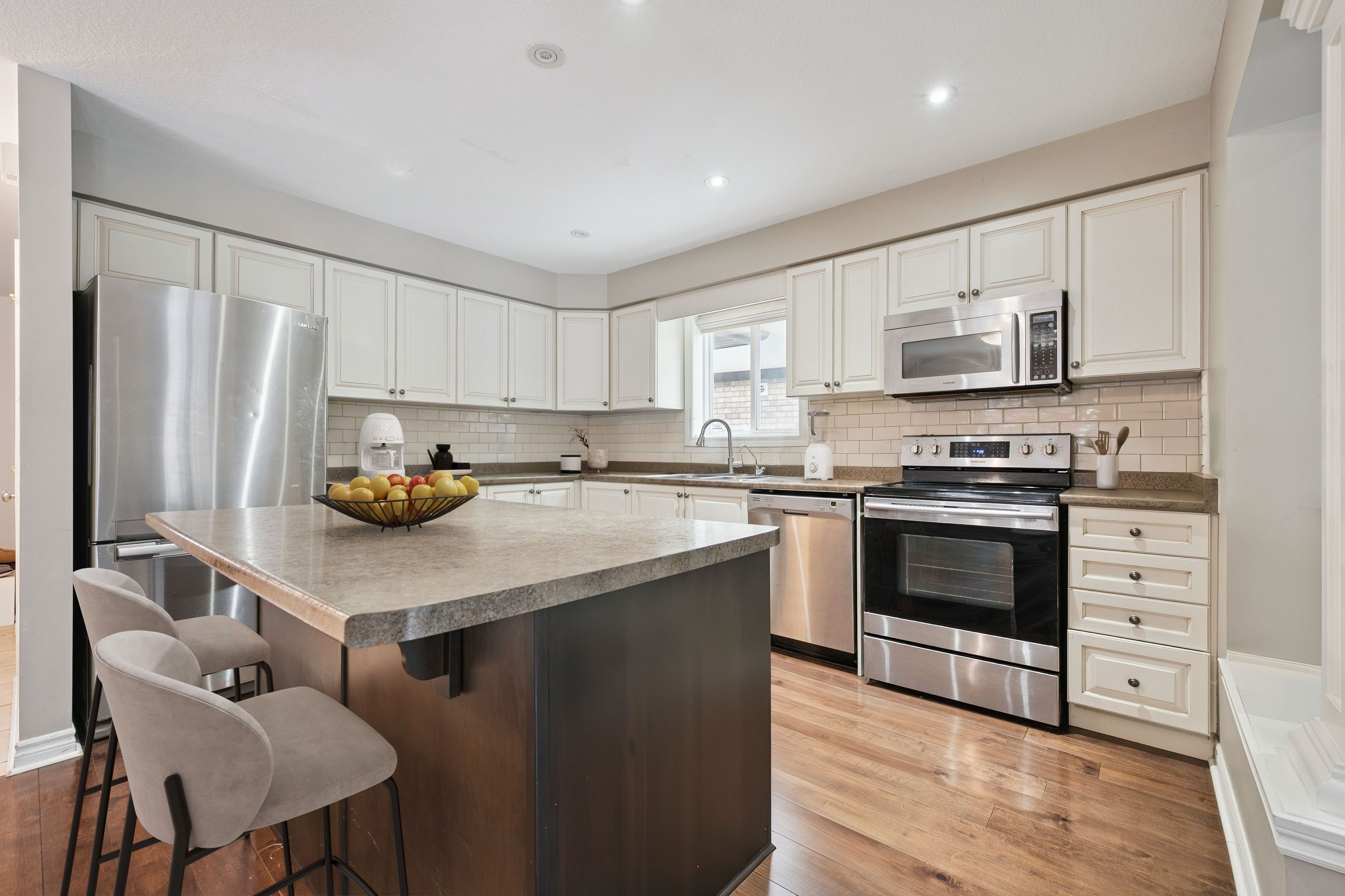 Welcome to 77 laughland lane, a spacious craftsman-style home set on a premium oversized pie-shaped lot in guelph's highly sought-after south end. Ideally located within walking distance of westminster woods public school and close to parks, amenities, and highway 401, this property offers exceptional versatility with 4 bedrooms plus a legal basement apartment-ideal for multi-generational living, investors, or those seeking a mortgage helper. Inside, the carpet-free main home showcases engineered hardwood flooring and an expansive, open-concept layout designed for both everyday living and entertaining. The eat-in kitchen features stainless steel appliances, a central island, and generous prep and storage space, flowing seamlessly into the dining area with walkout access to the backyard. The spacious double living room is filled with natural light from large windows overlooking the yard. Upstairs, the oversized primary bedroom provides a true retreat, complete with its own dedicated ensuite. Three additional bedrooms share a well-appointed 4-piece family bathroom. This includes the versatile third-floor loft, which is perfect for a home office, studio, or separate family room. A convenient second-level laundry room enhances everyday functionality. Outside, the expansive pie-shaped lot offers rare outdoor space and privacy, anchored by a beautiful inground saltwater pool and ample room for entertaining or quiet enjoyment. The legal basement apartment is thoughtfully designed with its own separate entrance, full kitchen, 4-piece bathroom, and private laundry, providing excellent income potential. The property is currently rented for $5,022 per month plus utilities, with vacant possession available may 1st. A rare offering that delivers exceptional value for both families and investors.
