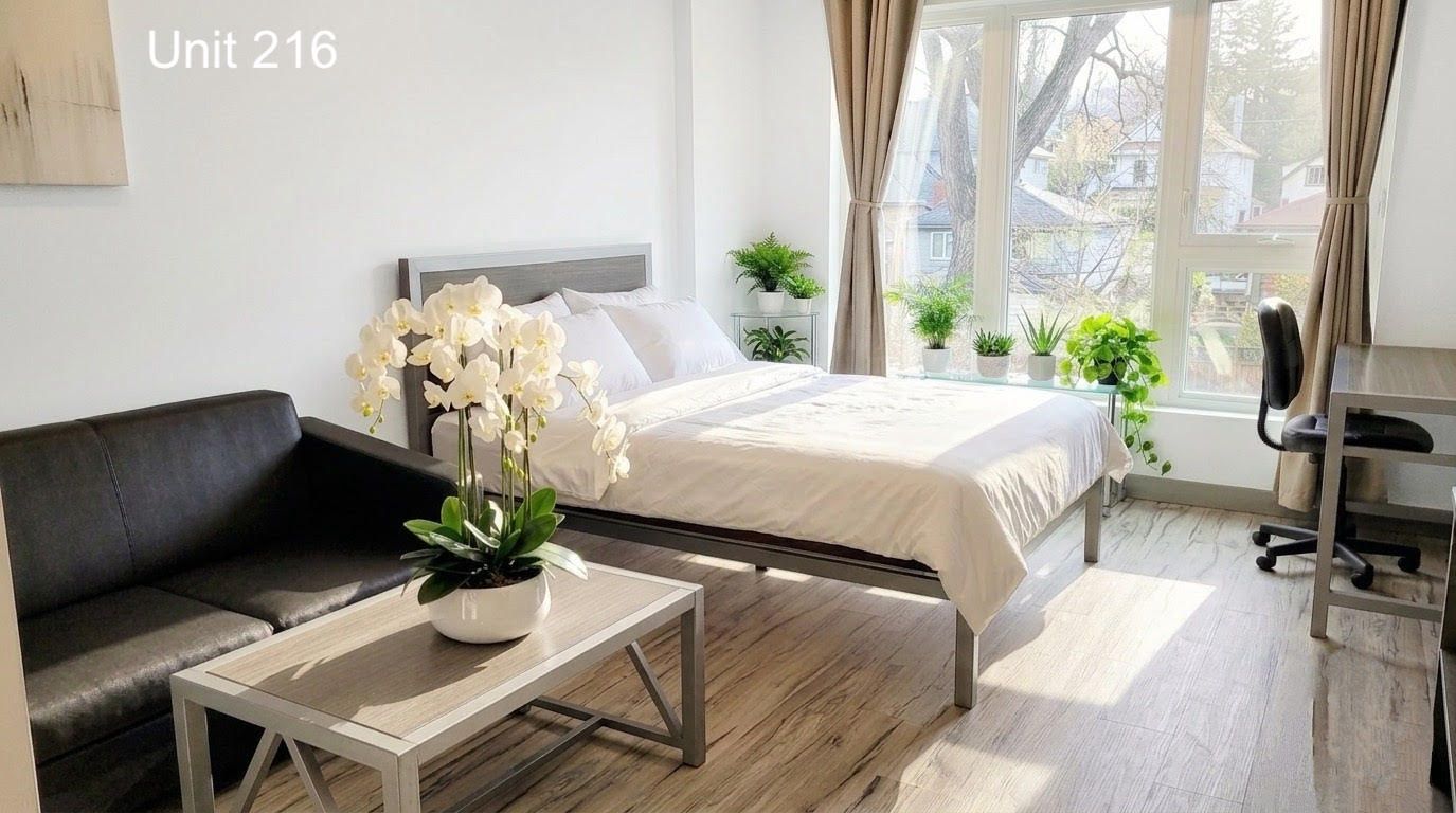 ***flexible lease term: preferred 8 months (may 1 to dec 31), but open to 6-month or 1-year lease***fully furnished south-facing unit with a private kitchen and bathroom, features an extra-large south-facing window, filling the space with natural sunlight throughout the day. Enjoy a modern white kitchen with stainless steel appliances that combine style and functionality. Relax with serene views of lush green space and a nearby trail right outside your window, surrounded by mature trees in a peaceful, park-like setting-perfect for those seeking a quiet and nature-filled environment.