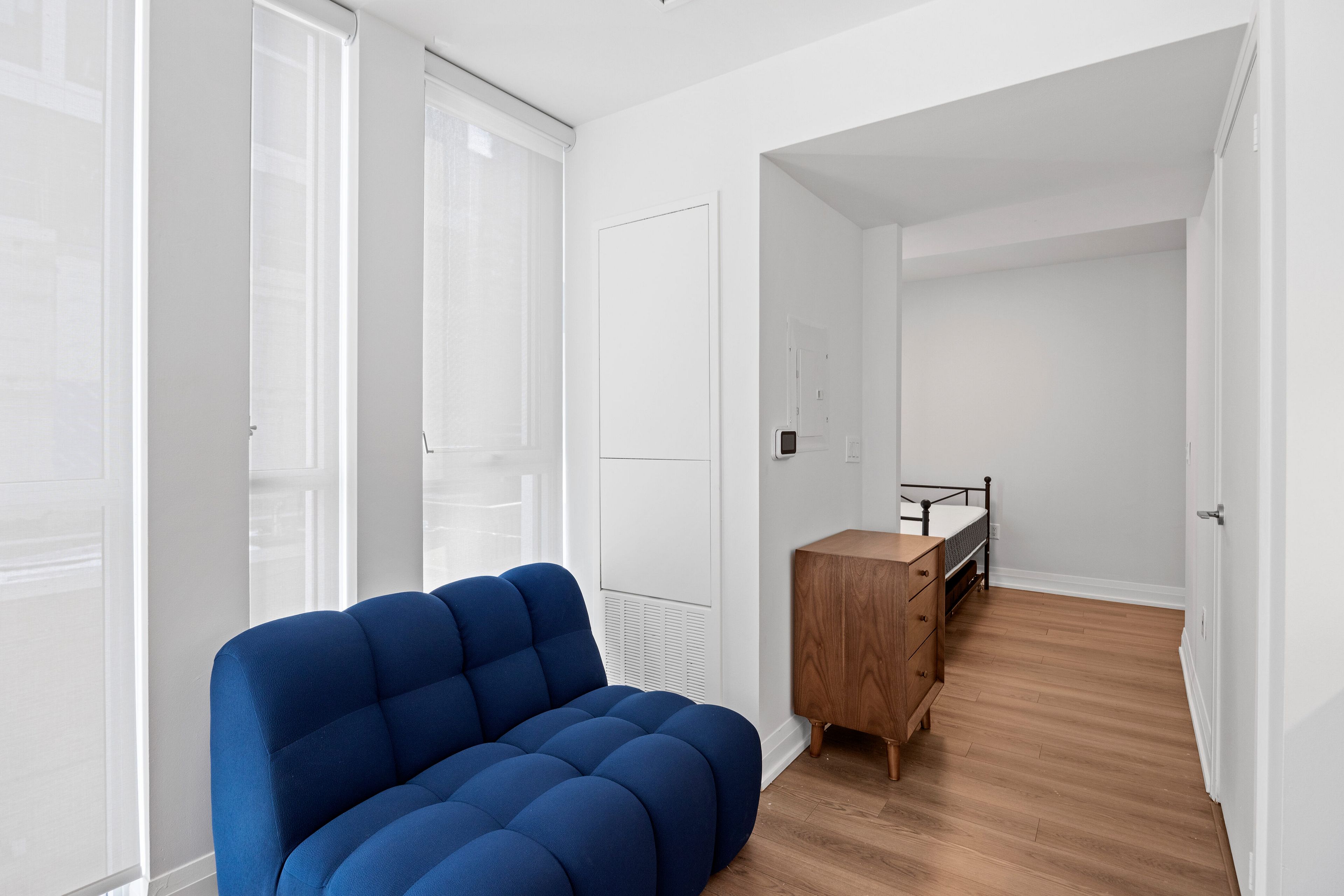 • Separate sleeping area with essential furniture included for convenience.