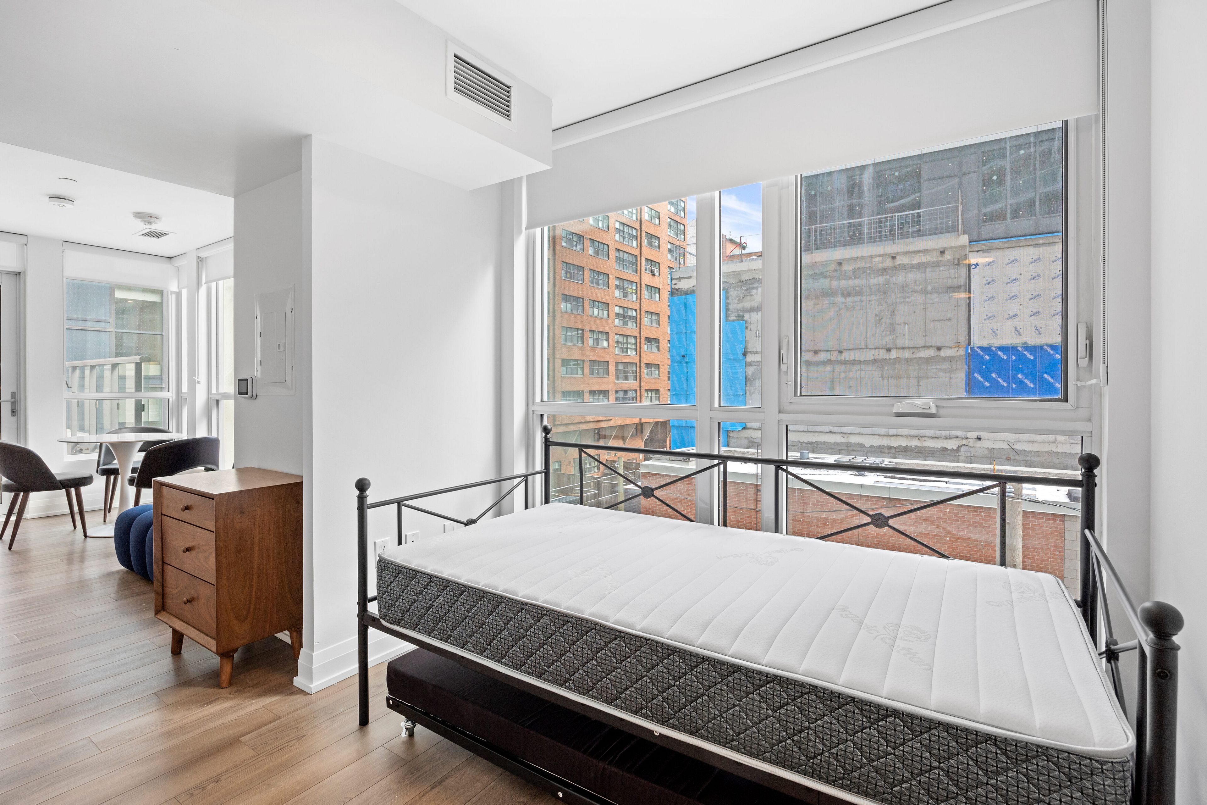 Bright and efficiently designed furnished bachelor unit at max condos. Unit comes with a separate area for bed. Furniture to include bed, mattress, 1 comfy chair, table + 3 chairs & 1 small dresser-ideal for simple, stylish living. Skip the furniture shopping - everything you need is ready and waiting. Located in a modern building with top amenities including a gym, and 24-hr concierge. Conveniently located close to tmu, eaton centre, dundas subway station, grocery stores, cafes, and more. Perfect for students or professionals who want to live in the heart of downtown with everything at your doorstep. A perfect option for students or professionals who want to live in the heart of downtown with convenience at their doorstep. The original rent is $2,127/month, but with 1 month free, the average rent works out to $1,950/month over a 12-month lease. Rent free to be applied to 2nd last month. Photos were taken previously prior to tenant occupancy.
