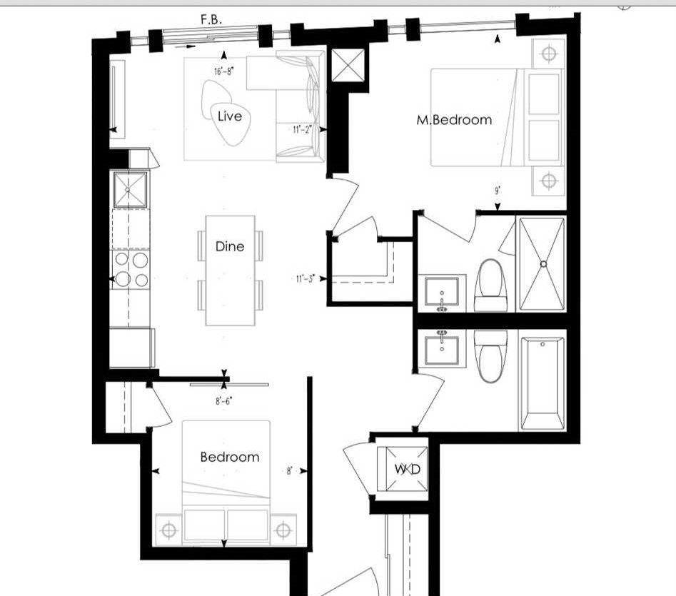 • Spacious 2 bed, 2 bath unit near major universities and transit.