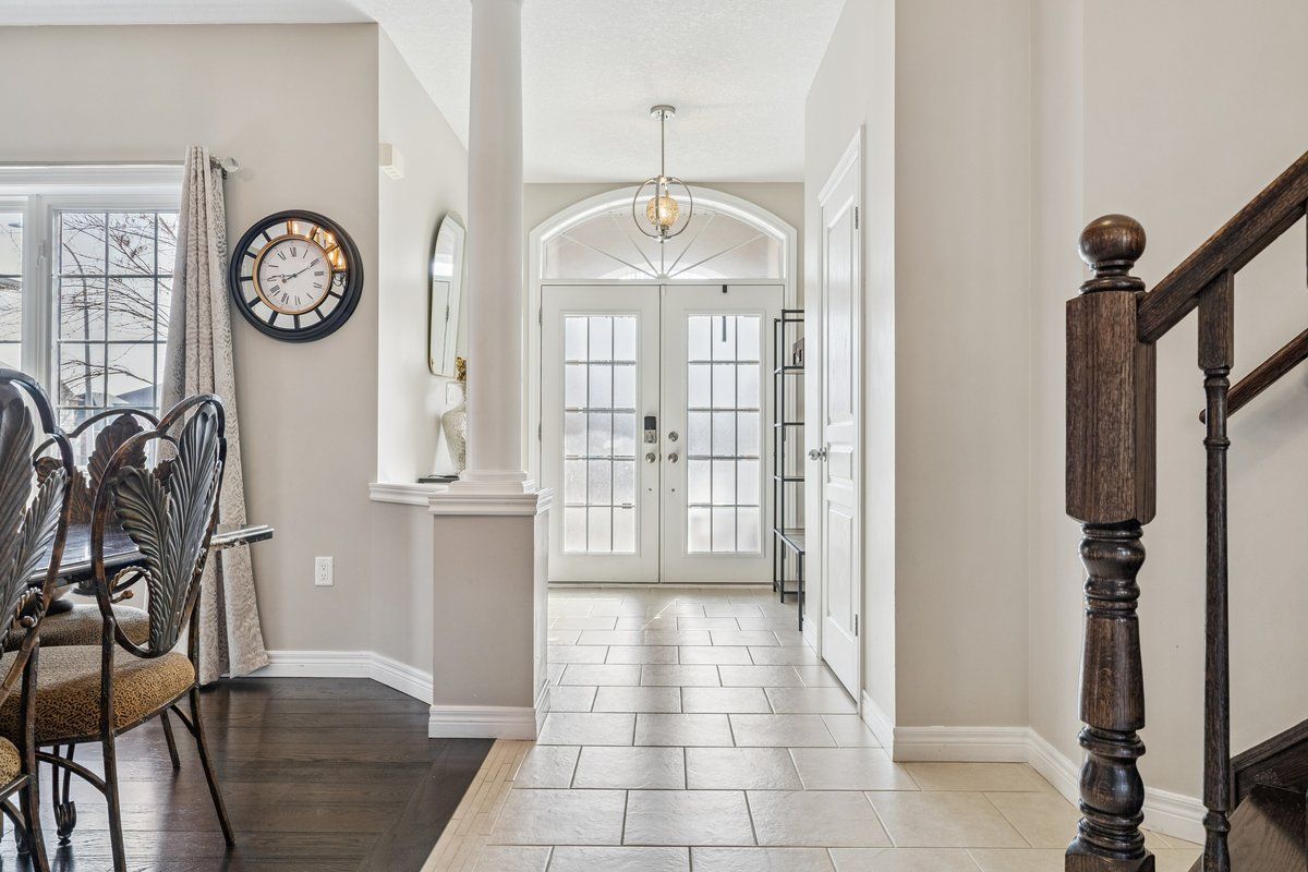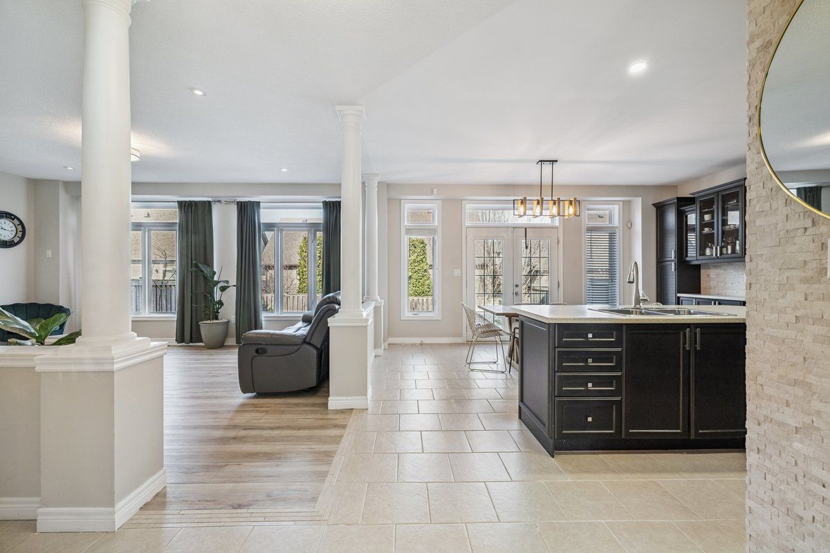 • Bright main level with decorative pillars and oversized windows for natural light.