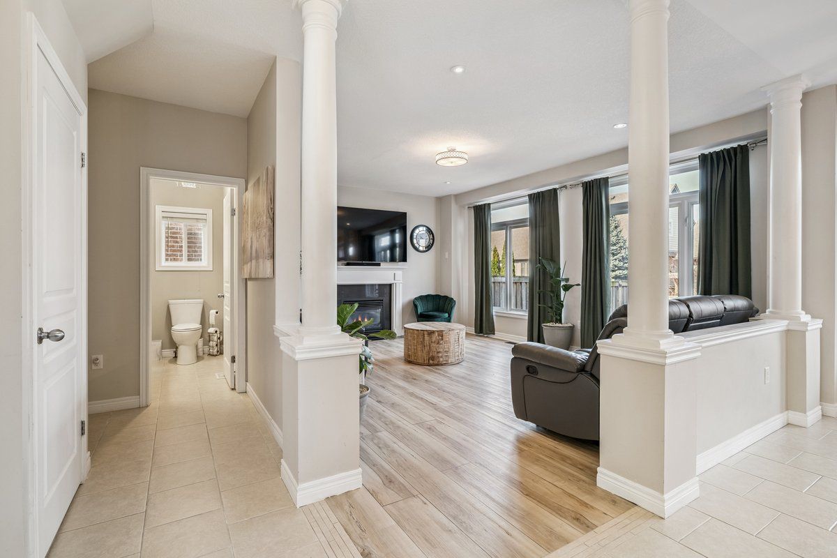 This beautifully updated four bedroom, four bath home offers over 3,600 sq ft of finished living space. A bright, spacious main level welcomes you with decorative pillars, upgraded lighting, abundant custom kitchen cabinetry, and a stunning wall of oversized windows. Enjoy new vinyl flooring on the main level and brand new laminate upstairs, making the home completely carpet-free. The main floor features a formal dining room, sun-filled eat-in kitchen with breakfast bar island, new stainless steel appliances, and a cozy living room with a gas fireplace. Walk out to a private, fully fenced yard with a stamped concrete patio. A two-piece bath and main floor laundry, complete with new appliances and garage access, finish this level. Upstairs offers a spacious primary suite with a walk-in closet and 5-piece ensuite, plus two additional bedrooms and a full bath. The fourth bedroom has been converted into a walk-in closet but is ideal as an office or nursery and can easily be reverted back to a bedroom. The finished lower level includes a rec room with an electric fireplace, a games/den space, a two-piece bath, and ample storage. Located in a sought-after grimsby neighbourhood close to schools, parks, shopping and quick highway access. This home will check all boxes!