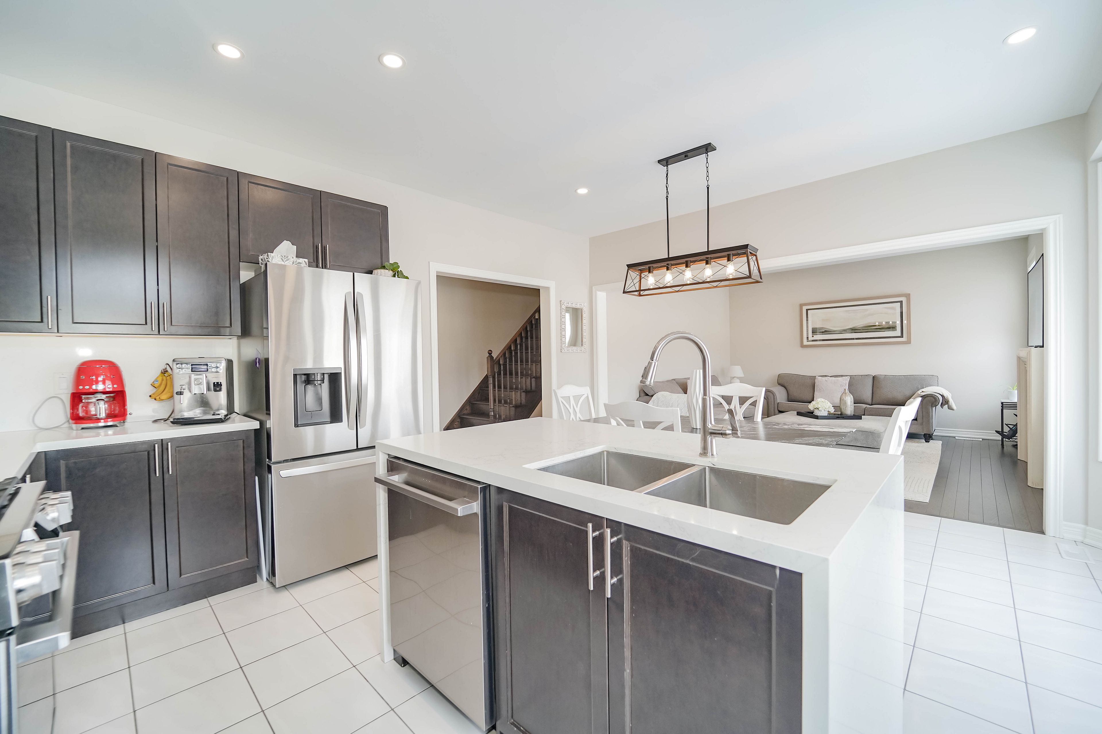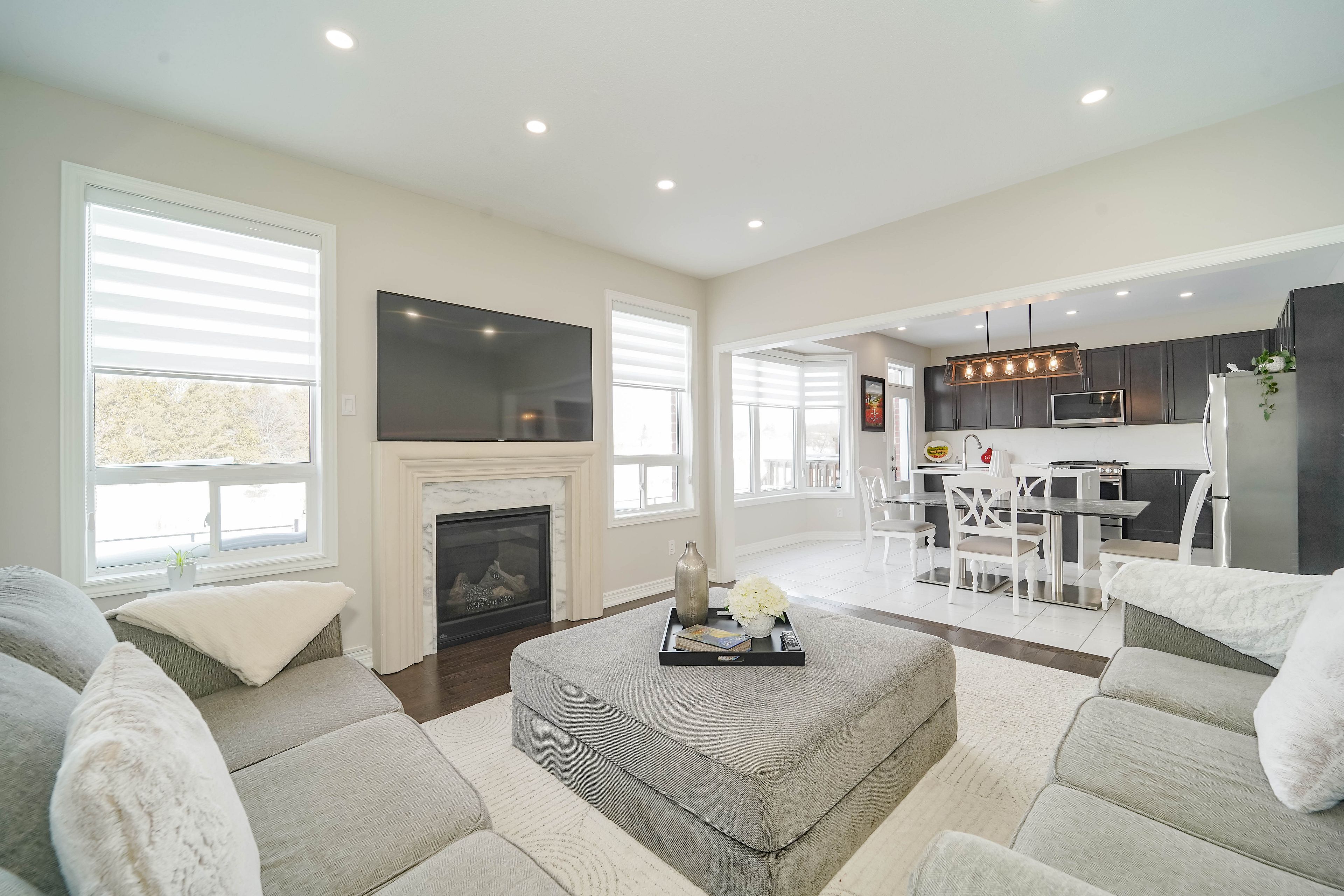 Tucked away on a quiet court in tottenham, this beautifully renovated two-storey home offers 4spacious bedrooms and a walk-out basement with excellent potential for rental income. The private, fully fenced backyard backs onto open meadows, creating a peaceful and scenic setting. The home features all new appliances, smooth ceilings, upgraded lighting with pot lights, a gas fireplace, and elegant hardwood and ceramic tile flooring. The open-concept kitchen is designed for both style and function, complete with a center island, waterfall-edge quartz countertops, matching quartz backsplash, and a walk-out to the balcony-perfect for entertaining. All bathrooms have been upgraded with new quartz vanities. Additional highlights include new garage door openers, central vacuum, freshly painted and a well-thought-out layout ideal for families or investors alike. Conveniently located just steps to pierce park and close to all local amenities.