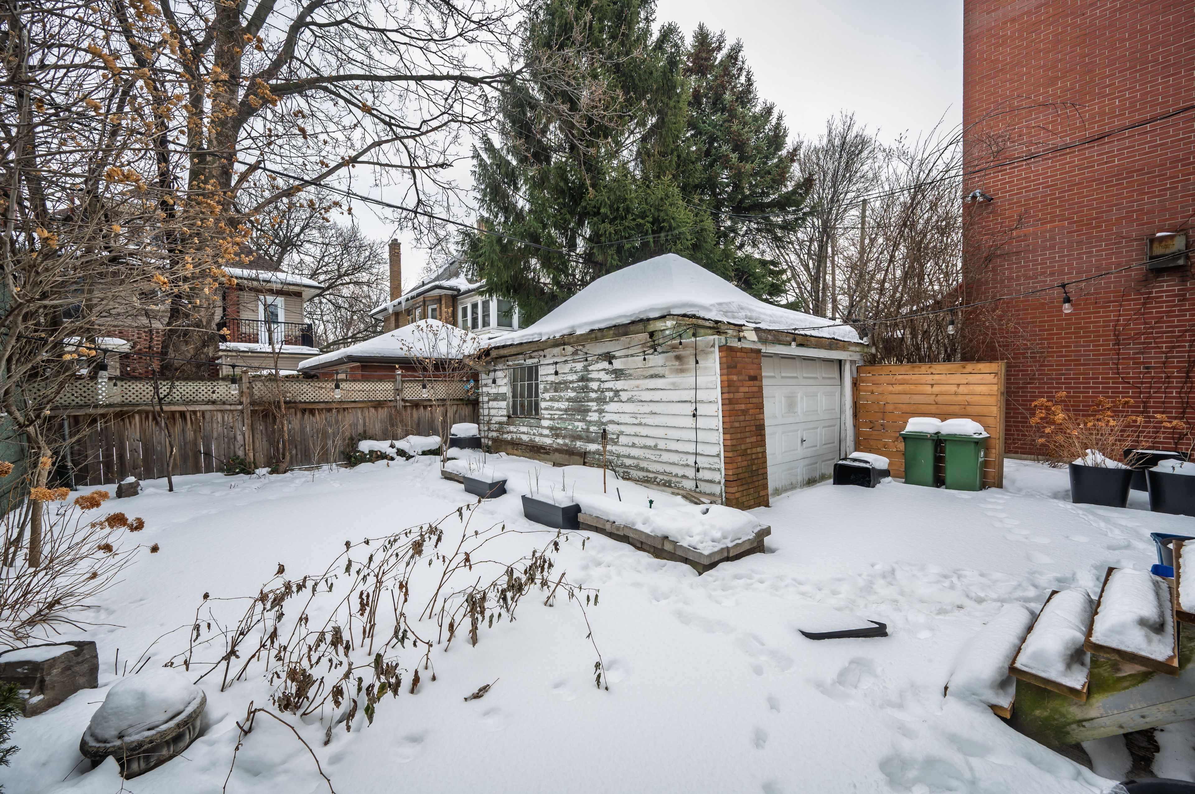 • Private backyard and oversized driveway with detached garage for convenience.