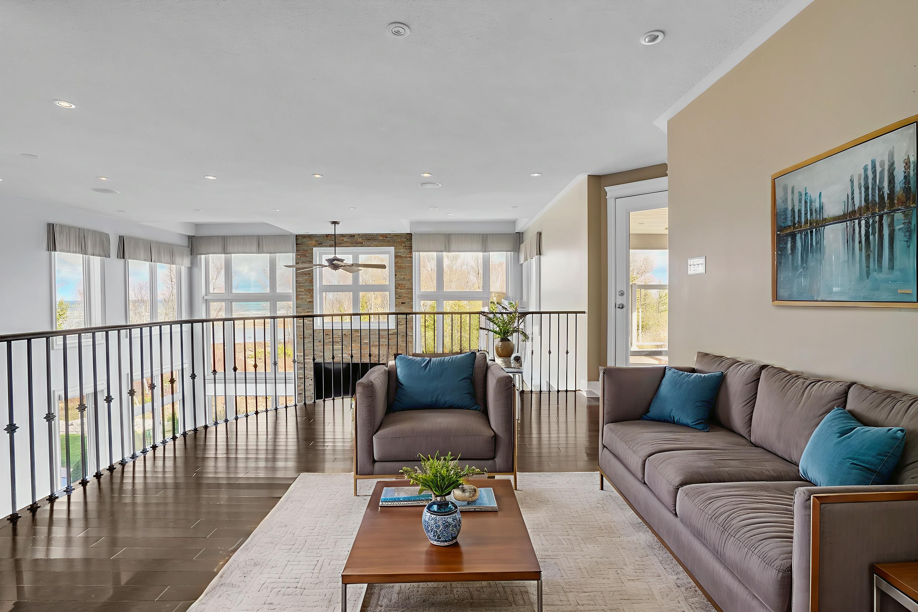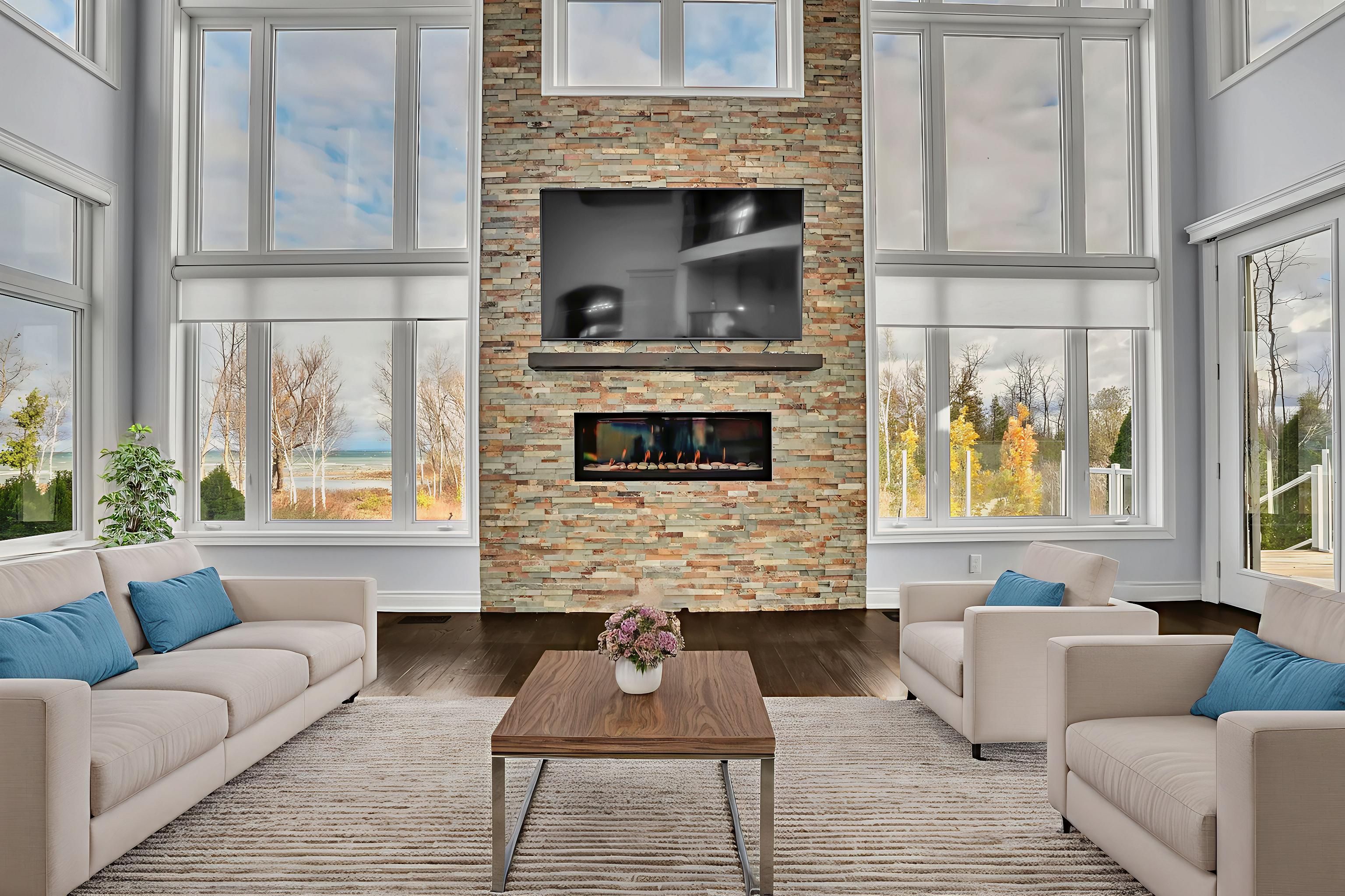 Waterfront views over looking on peaceful shores of georgian bay featuring unparalleled water & sunset view, this corner lot detached designed w/ 4 large bedrooms & 3 baths has nearly 3000sqft of living space above ground alone. Located in a private family-friendly community on a quiet cul-de-sac providing exclusive access to community rec-center including outdoor pool, trails and the beach, while featuring lawn & snow maintenance & much more taken care for you. Mins to blue mountain, collingwood, wasaga beach, provincial parks, restaurants, shopping & major hwys. 18 ft ceilings in the freshly painted great room surround the gourmet chefs kitchen upgraded w/ high-end b/i ss appliances, granite counters, centre island, breakfast bar, & b/i pantry. Great room has stunning 180 degrees views of the water w/ 18ft floor-to-ceiling windows, grand center fireplace, w/o to entertainment deck providing the perfect indoor/outdoor living experience. *$$$ spent on upgrades! Pot lights, hardwood floors, & surround sound system thru-out* desirable main-level primary bedroom w/ 5-pc luxury ensuite & w/i shower w/ access to rear deck. Open-concept upper level finished w/ huge loft sitting room o/l great room & open views of the water w/o to upper balcony. Two additional spacious bedrooms w/ w/i closet privileges & shared 4-pc semi ensuite. Unfinished basement awaiting your vision. Addition main floor bedroom space could also be used as formal dining room, sitting lounge or office.