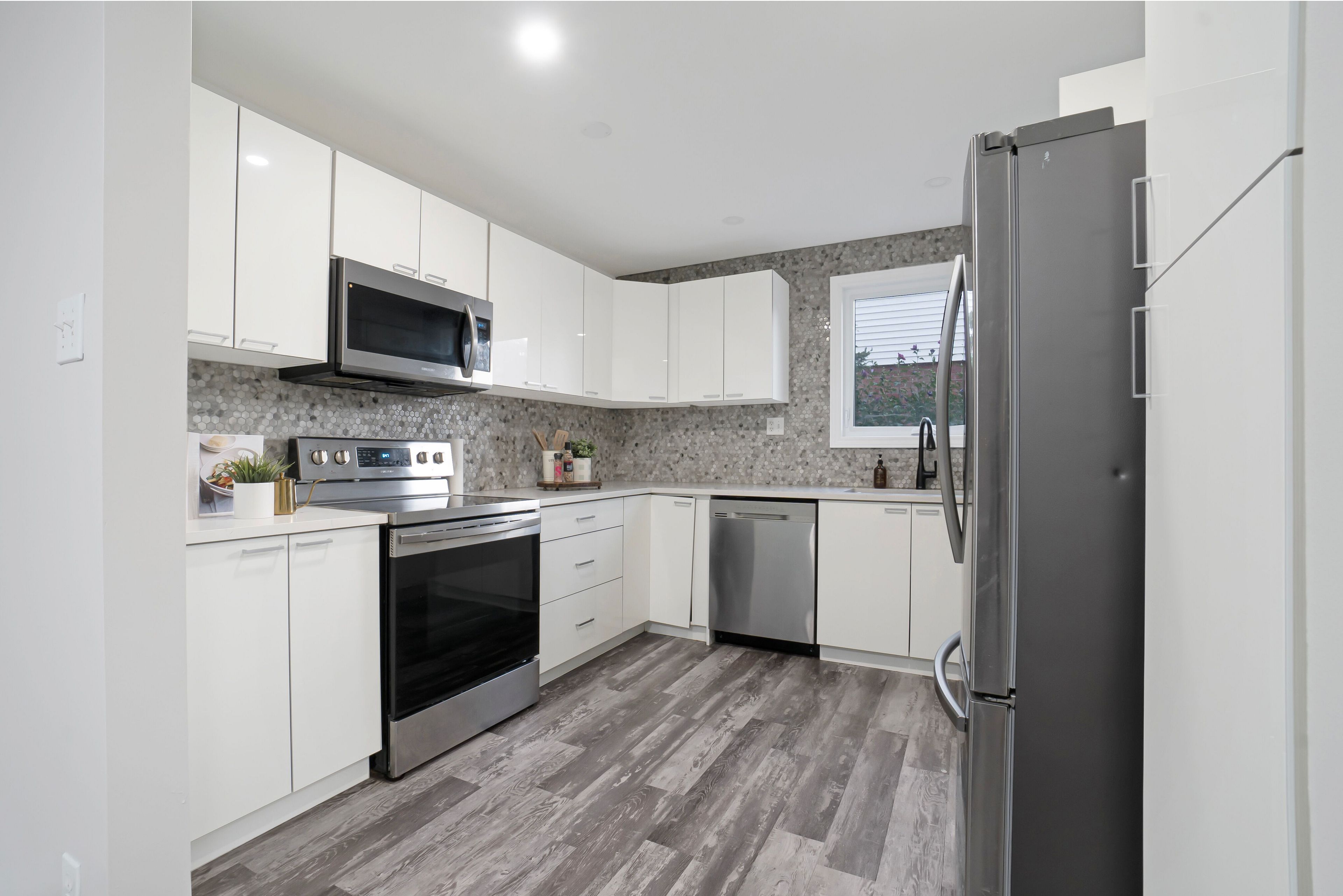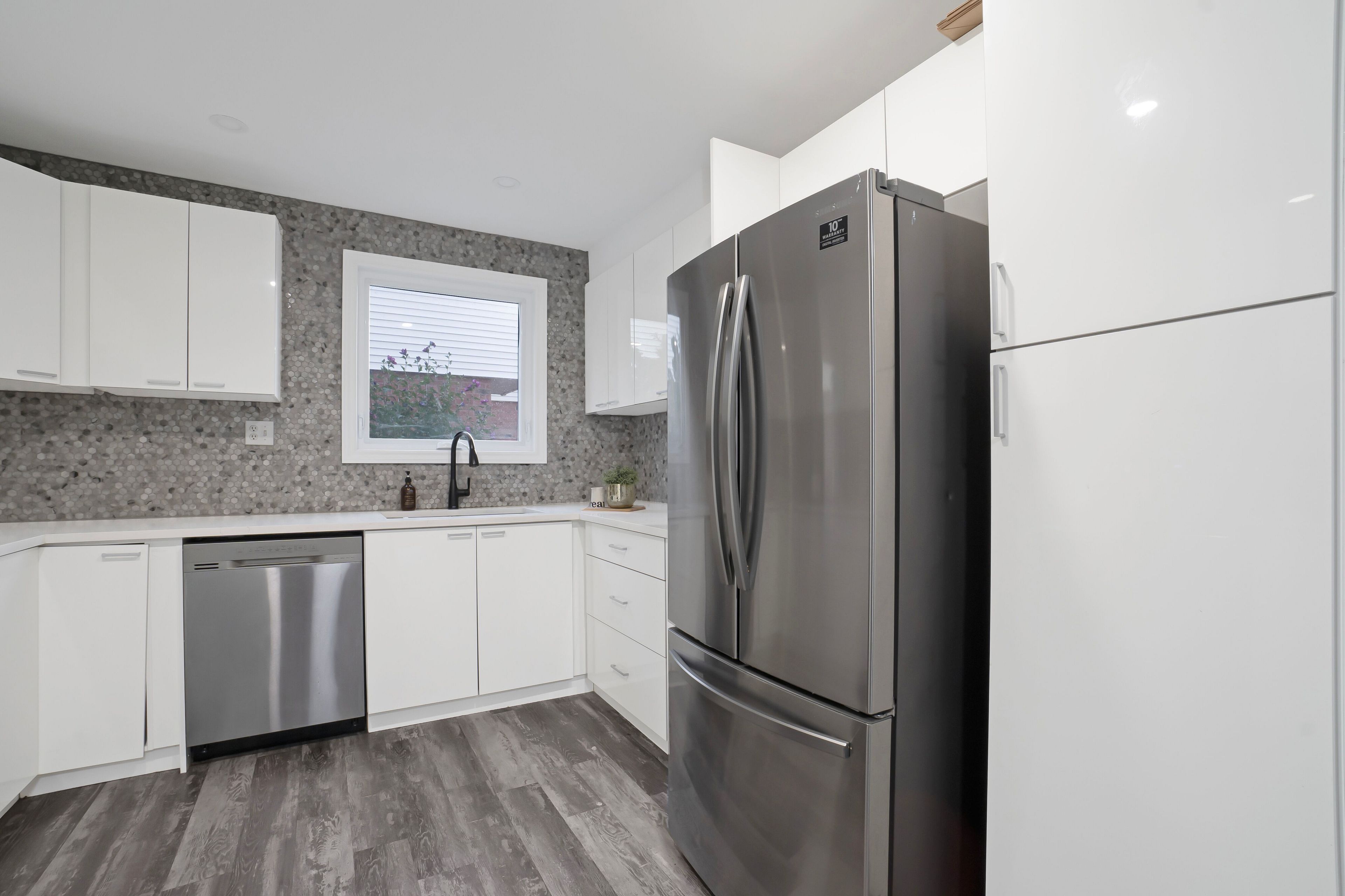 Updated townhome condo - end unit with no rear neighbors. Welcome to 770 fanshawe park road east, unit #60, located in the desirable london north area - a wonderful, family-friendly neighborhood within the stoney creek / a. B. Lucas school district. This updated end-unit townhome condo offers privacy, comfort, and convenience, nestled in a quiet, tucked-away complex. Featuring 3 bedrooms, 3 bathrooms, and an attached garage, this home boasts many favorable features. The primary bedroom includes a 4-piece ensuite, adding to the home's appeal. As soon as you step inside, you'll love the bright and spacious foyer, which opens into the open-concept main floor layout. The beautifully renovated kitchen includes quartz countertops, an undermount sink, tile backsplash, and high-quality appliances. The formal dining room and large living room overlook oversized patio doors, flooding the space with natural light. Upstairs, you'll find a generously sized primary bedroom with ensuite, two additional well-sized bedrooms, and a full main bathroom. The partially finished basement features stylish laminate flooring and a wet bar - perfect for entertaining. Enjoy the private backyard with convenient rear access. The complex includes an outdoor pool, two parking spaces, and ample visitor parking.