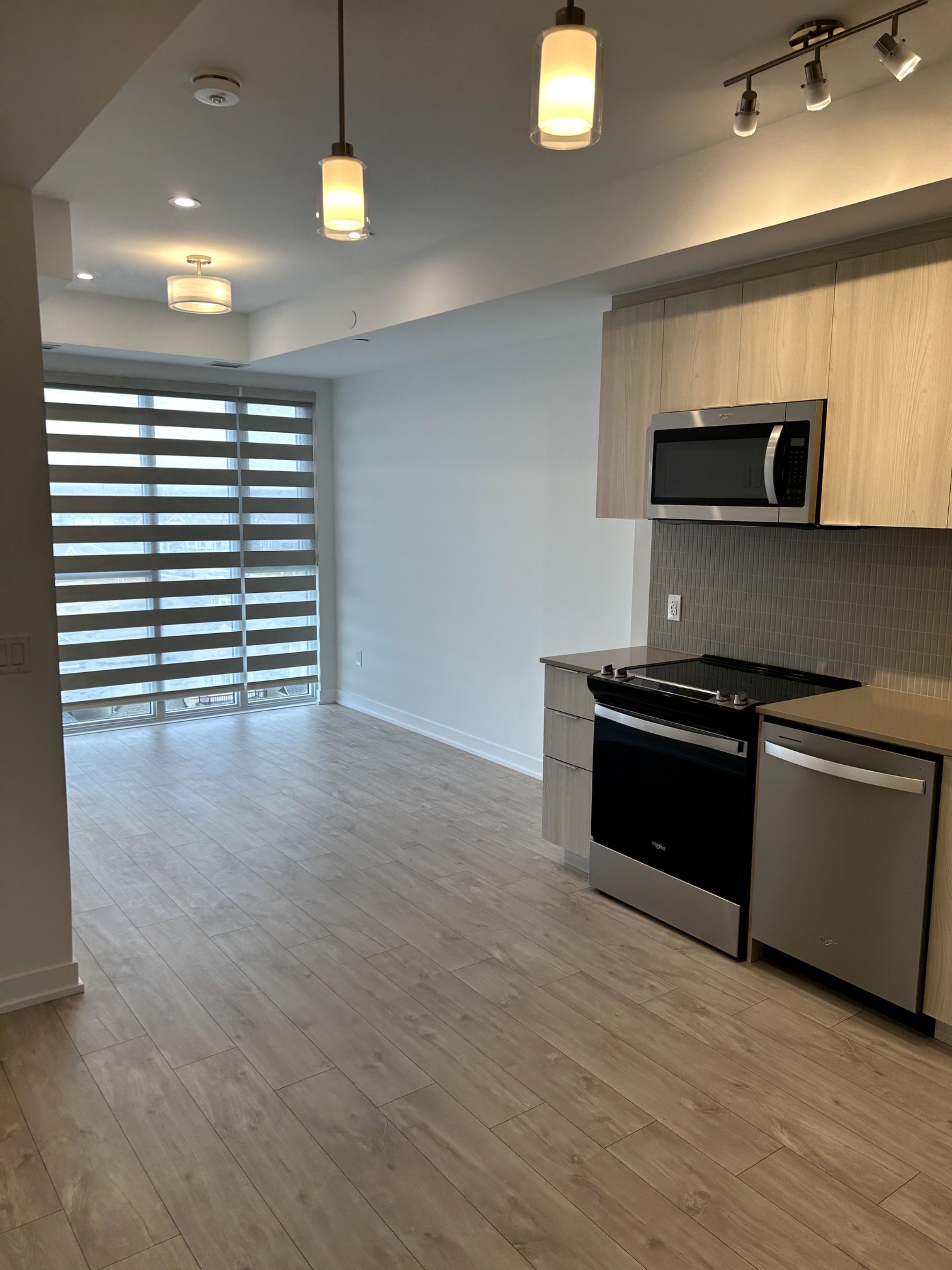 Welcome to mile & creek, a brand-new community in the heart of milton complete with an ev charger! Internet also included! This stunning 1-bedroom unit boasts a spacious open-concept layout, flooded with natural light from floor-to-ceiling windows. The contemporary kitchen features stainless steel appliances, sleek soft-close cabinetry. Tonnes of upgrades, including newly installed blinds and pendant lighting, make this place move-in ready and effortlessly stylish! Step onto your private balcony to enjoy breathtaking east-facing views with stunning sunrises. The upgraded spa-like bathroom includes storage and a full-sized washer and dryer are conveniently located in the laundry room. Residents at mile & creek enjoy access to top-tier amenities, including concierge services, a fitness center with a yoga studio, a modern co-working lounge, entertainment and social lounges, a dedicated media room, and a pet spa. The expansive rooftop terrace offers spectacular views and outdoor leisure space, while the three-storey amenity pavilion serves as a vibrant hub for relaxation, work, and socializing. Conveniently located near parks, trails, shopping, dining, and major highways, this condo seamlessly blends luxury, comfort, and convenience. Dont miss your chance to call it home! Photos are from when unit was vacant. Showings with 24 hr notice.