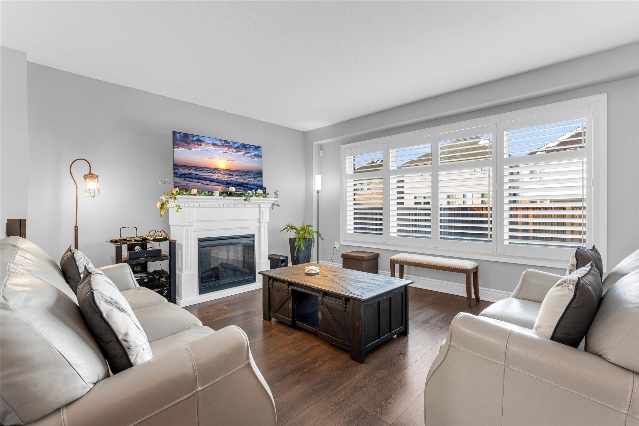 • Bright main floor with a cozy fireplace and hardwood staircase.