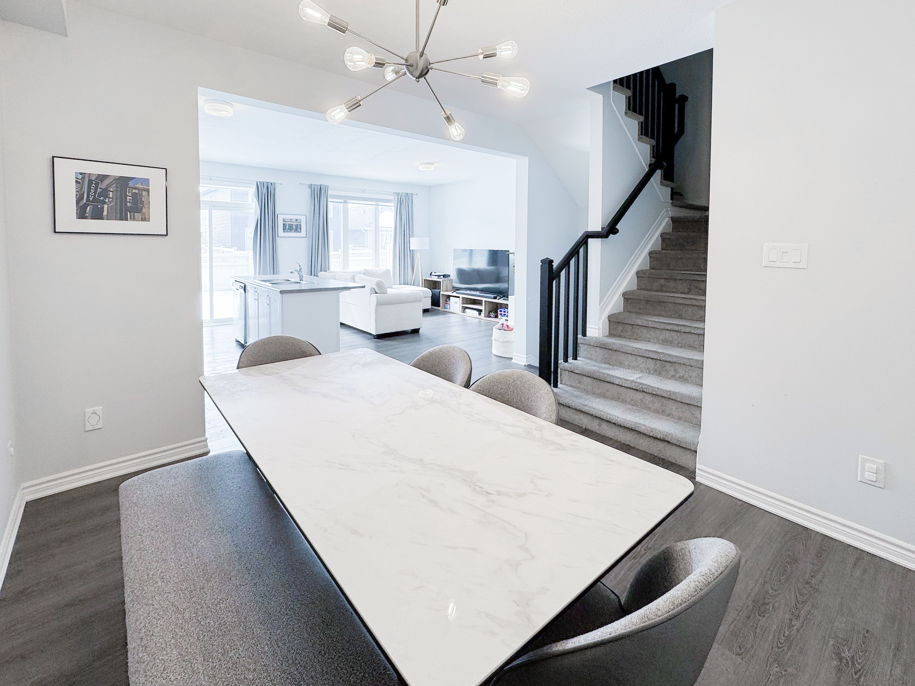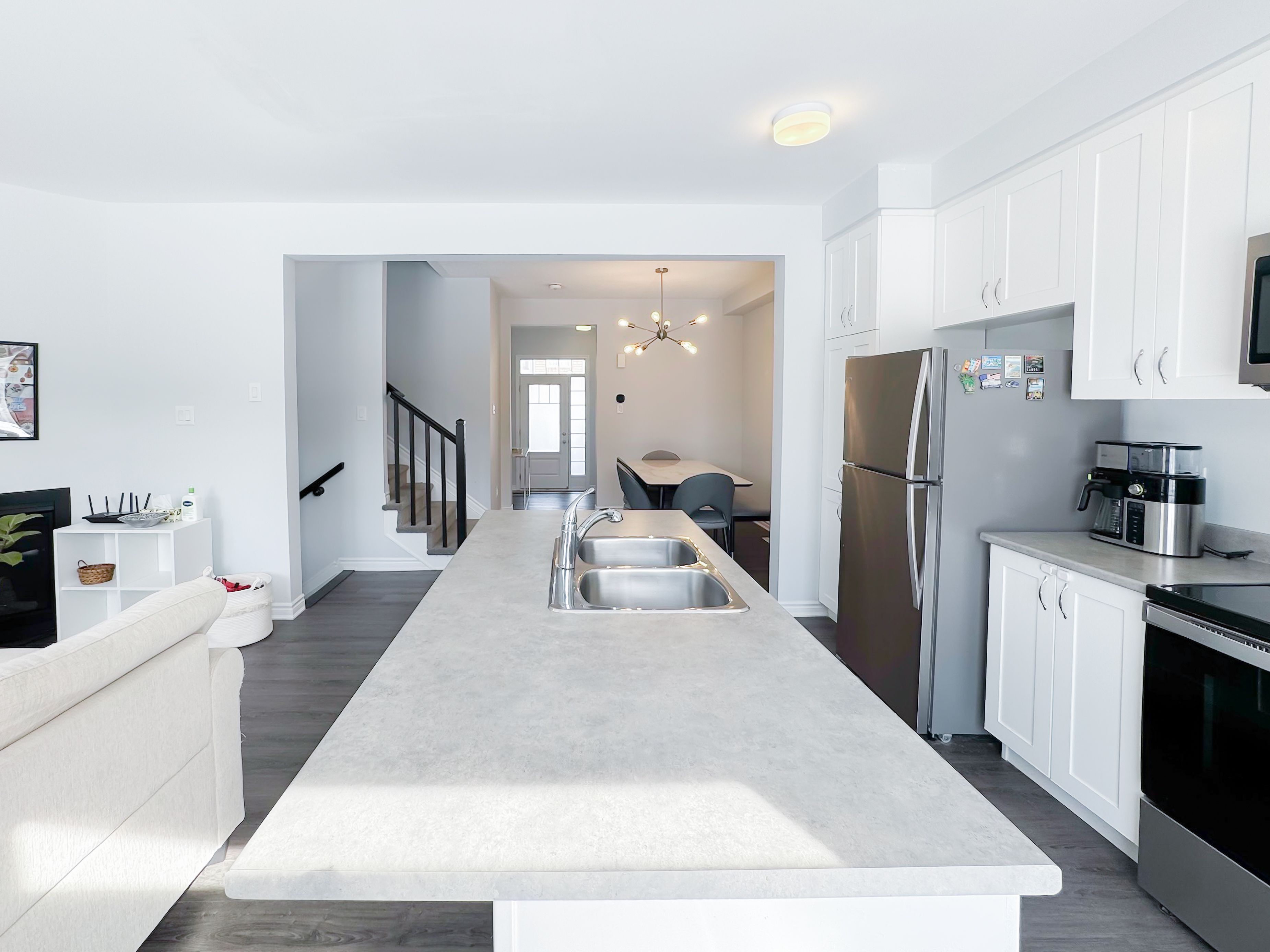 Welcome to 771 brittanic road, a beautifully upgraded freehold townhome in the heart of kanata south's sought after abbotsford monahan landing community and an ideal place to begin your homeownership journey. This bright and inviting home features a modern kitchen with stainless steel appliances, ample upgraded cabinetry, and an open layout that flows seamlessly into the living and dining areas, all filled with an abundance of natural light from large windows. Thoughtful finishes and well maintained spaces create a move in ready feel, while the comfortable bedroom sizes offer flexibility for a growing family, guest room, or home office. Located just minutes from shopping at riocan centre kanata, groceries at loblaws and walmart, recreation at walter baker park, and convenient access to highway 417, this home offers the perfect blend of style, comfort, and everyday convenience in one of ottawa's most desirable communities.