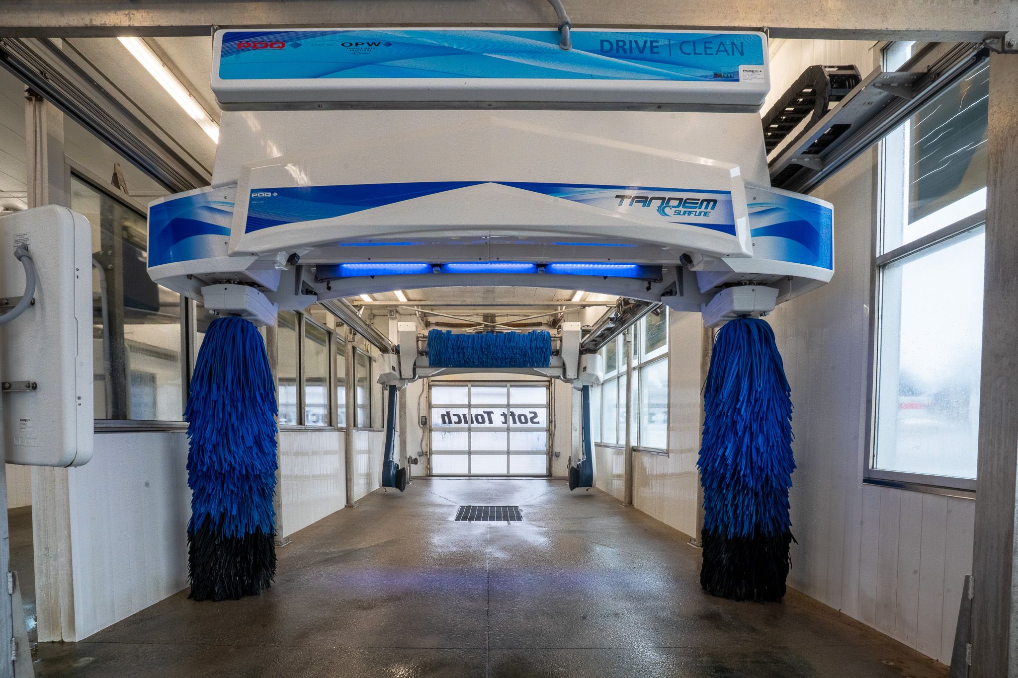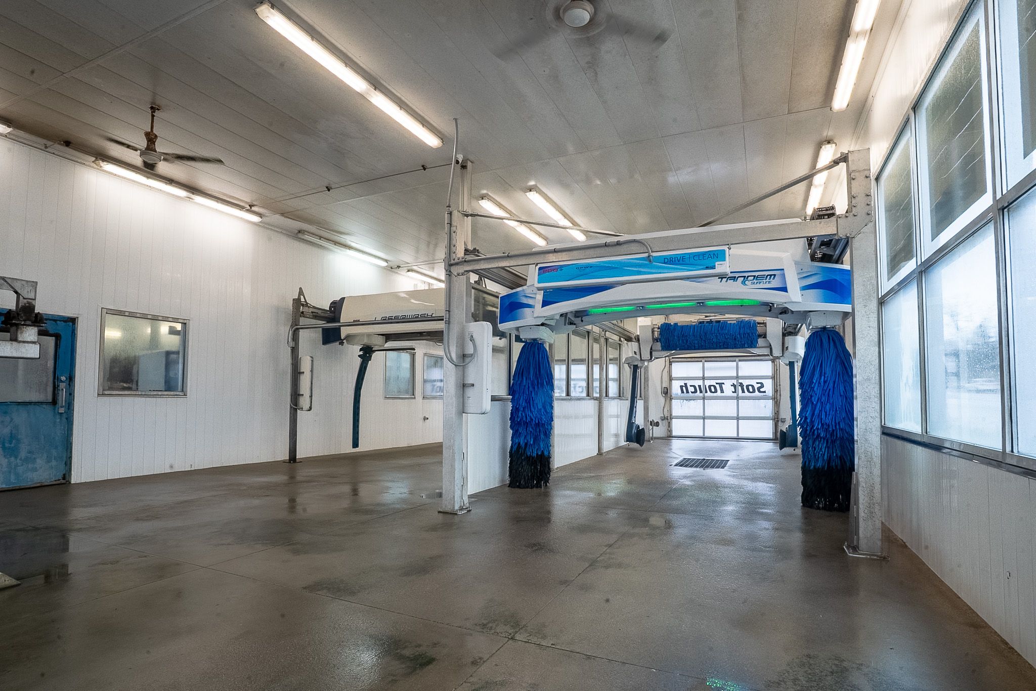 • Dual tunnel laser wash with touchless and soft touch systems.