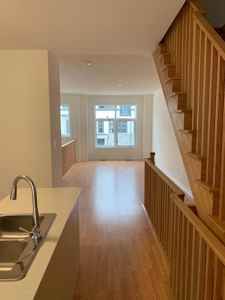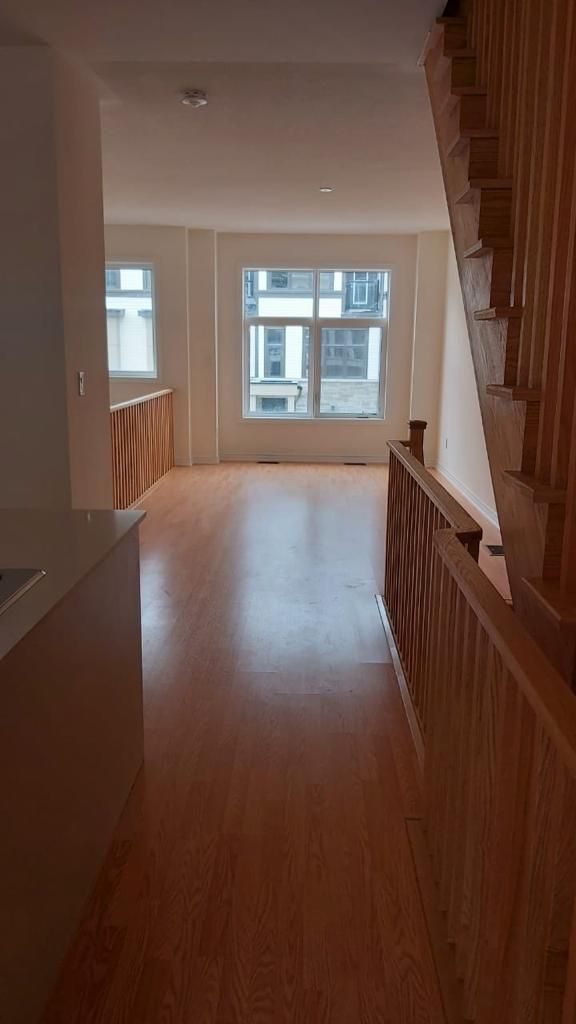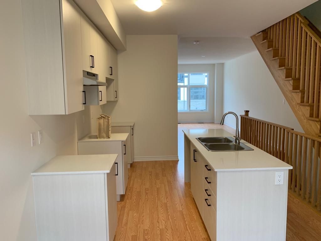 Brand new & elegantly upgraded 4-bedroom beautiful townhome porter elevation b 1610 sq ft at symphony towns, oak staircase, quartz kitchen, deck & balcony, functional & spacious lay out. This property offers 9' ceilings on main and 8' on upper floor and beautiful backyard spaces. The main level includes convenient access to the garage, a private bedroom with an ensuite bathroom, and a walkout to the patio perfect for guests or multi-generational living. The second level boasts a generous open-concept layout with a large great room, modern kitchen, dining area, and access to a beautiful walk-out balcony ideal for entertaining or relaxing. On the third level, you'll find the primary bedroom with a private 3-piece ensuite, a second bedroom with a large closet, and a third bedroom featuring a walk-in closet and its own walkout balcony. Located in a high-demand area of donevan, this home is close to new schools, parks, a shopping mall, places of worship, and a golf course. Enjoy easy access to public transit, the oshawa go station, and highway 401 all just minutes away!