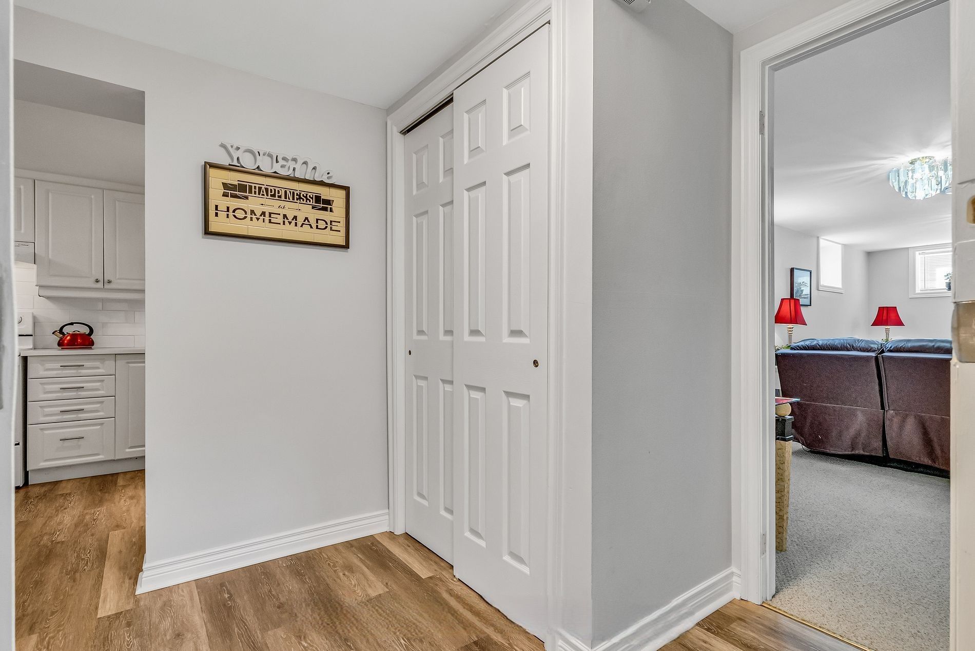 • Clean, modern interior featuring neutral tones and updated lighting.