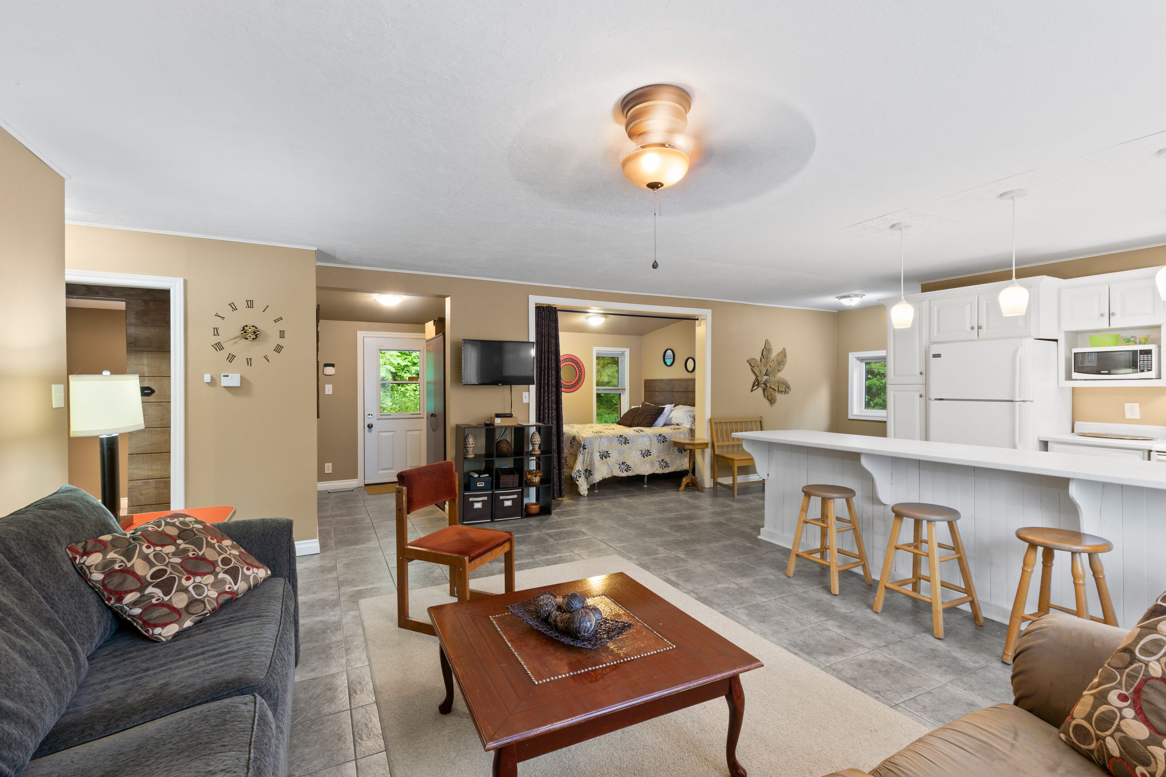 Unique residential & commercial opportunity in desirable port franks! Welcome to this beautifully maintained and updated bungalow nestled in the charming lakeside community of port franks. Situated on a quiet treed lot, this property offers incredible potential for homeowners, investors, business owners or a combination to suit any buyer. The spacious main home features a bright and airy open-concept layout boasting a large kitchen loaded with storage, stainless steel appliances and wrap around island with two- tier breakfast bar; 2 bedrooms and 2 full bathrooms including primary suite with walk in closet and spa-like ensuite; living room with laminate flooring; dinette with direct access to the backyard; main floor laundry; and office space with built-in shelving. Enjoy your morning coffee and the sounds of nature in the private treed backyard or on the generous front deck. A large detached garage/workshop has 200amp service, 2-piece bathroom, and sink with counter and shelving providing ample space for hobbies, storage, parking or entrepreneurial use. At the rear of the property, you'll find a two-storey dwelling with two self-contained, and fully furnished apartment units with shared laundry hook-up, including main floor one bedroom unit and upper unit with two bedrooms plus den, kitchen with dishwasher hook-up, along with private deck - ideal for rental income or visits with extended family. Whether you're looking for a peaceful home base, an income-generating property, or a unique business opportunity, this one-of-a-kind property offers endless possibilities in a sought-after location near beaches, trails, and amenities. Dwellings are all well insulated, 2 operate. Septic (apartment & shop share one). Updates include: furnace and a/c 12 yrs, metal roof 10yrs, shop metal roof 6 yrs, windows and exterior doors 13 yrs, kitchen 13 yrs, main bath 12 yrs, ensuite 7yrs, extension on rear of home 13 yrs, soffit and fascia 13 yrs, gazebo 3yrs (all ages are approximate).