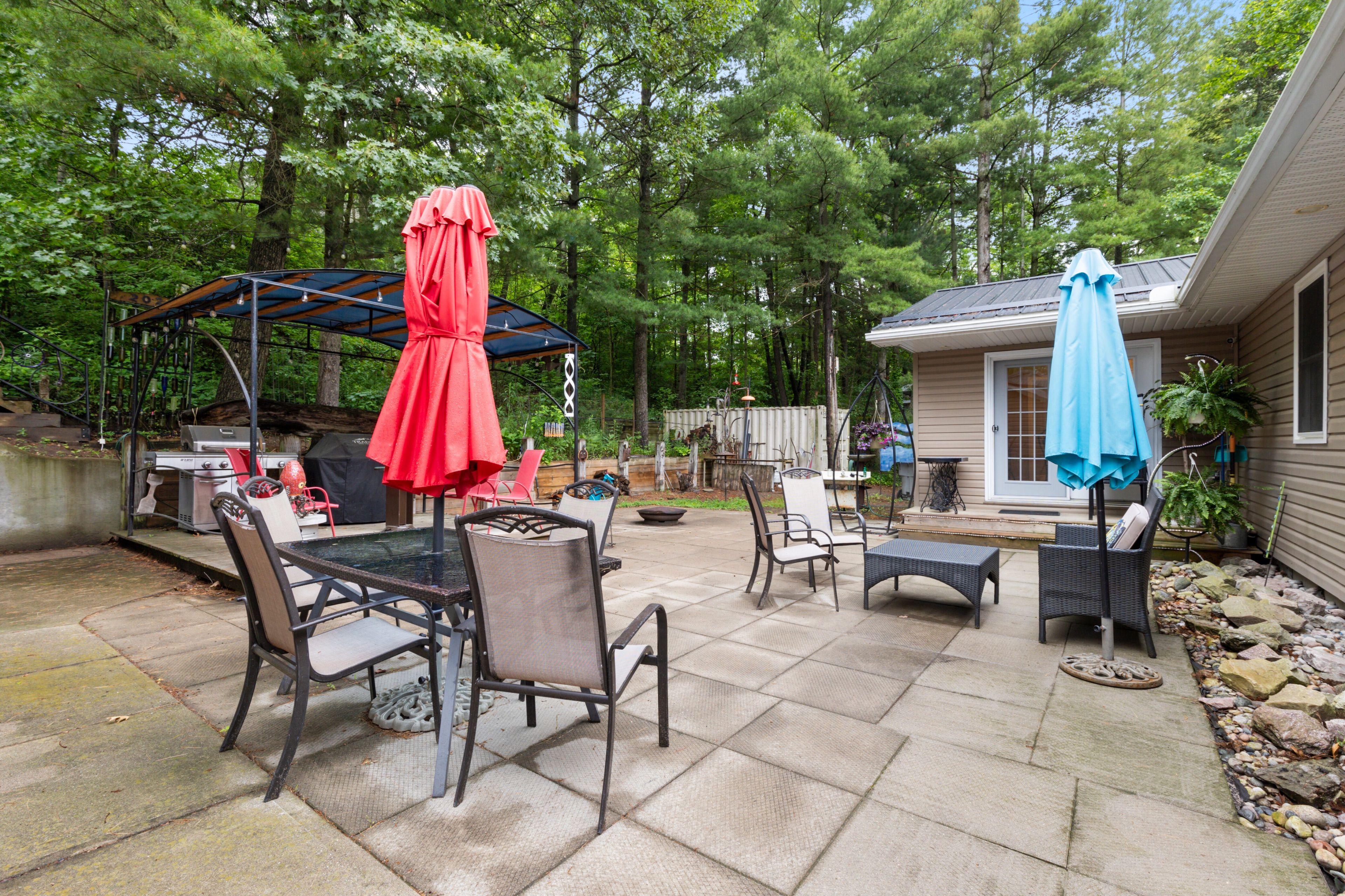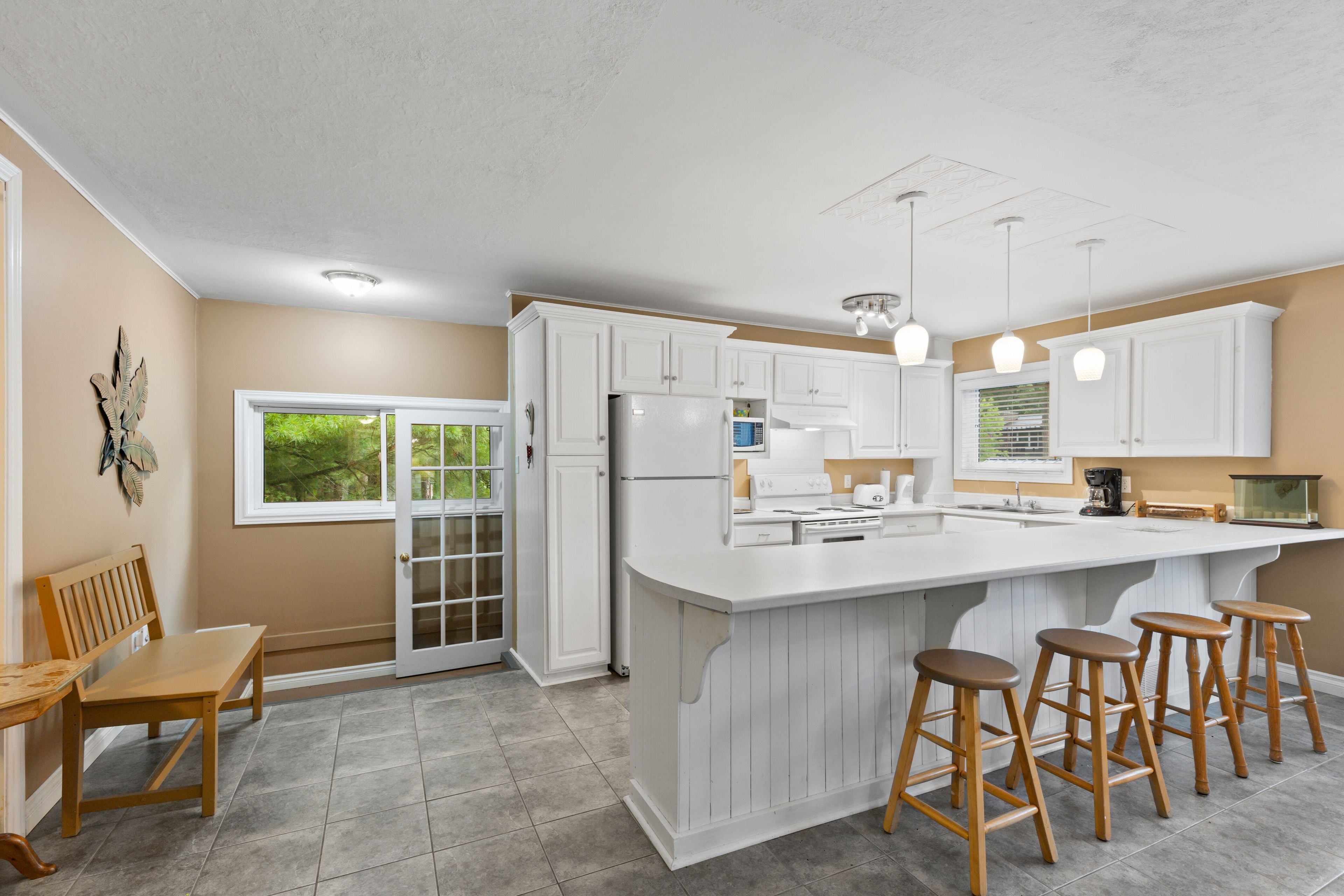 Unique residential & commercial opportunity in desirable port franks! Welcome to this beautifully maintained and updated bungalow nestled in the charming lakeside community of port franks. Situated on a quiet treed lot, this property offers incredible potential for homeowners, investors, business owners or a combination to suit any buyer. The spacious main home features a bright and airy open-concept layout boasting a large kitchen loaded with storage, stainless steel appliances and wrap around island with two- tier breakfast bar; 2 bedrooms and 2 full bathrooms including primary suite with walk in closet and spa-like ensuite; living room with laminate flooring; dinette with direct access to the backyard; main floor laundry; and office space with built-in shelving. Enjoy your morning coffee and the sounds of nature in the private treed backyard or on the generous front deck. A large detached garage/workshop has 200amp service, 2-piece bathroom, and sink with counter and shelving providing ample space for hobbies, storage, parking or entrepreneurial use. At the rear of the property, you'll find a two-storey dwelling with two self-contained, and fully furnished apartment units with shared laundry hook-up, including main floor one bedroom unit and upper unit with two bedrooms plus den, kitchen with dishwasher hook-up, along with private deck - ideal for rental income or visits with extended family. Whether you're looking for a peaceful home base, an income-generating property, or a unique business opportunity, this one-of-a-kind property offers endless possibilities in a sought-after location near beaches, trails, and amenities. Dwellings are all well insulated, 2 operate. Septic (apartment & shop share one). Updates include: furnace and a/c 12 yrs, metal roof 10 yrs, shop metal roof 6 yrs, windows and exterior doors 13 yrs, kitchen 13 yrs, main bath 12 yrs, ensuite 7yrs, extension on rear of home 13 yrs, soffit and fascia 13 yrs, gazebo 3yrs (all ages are approximate)