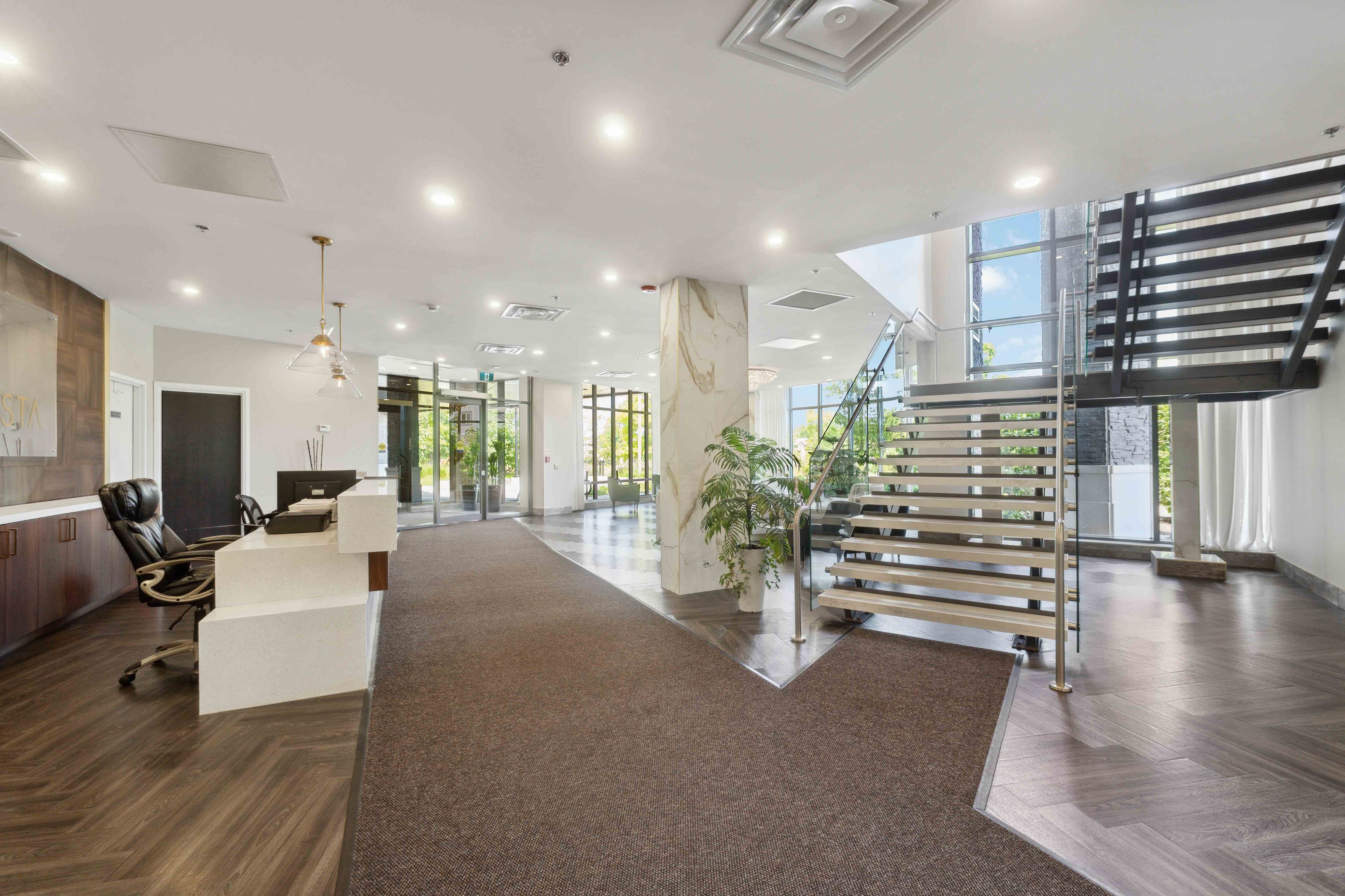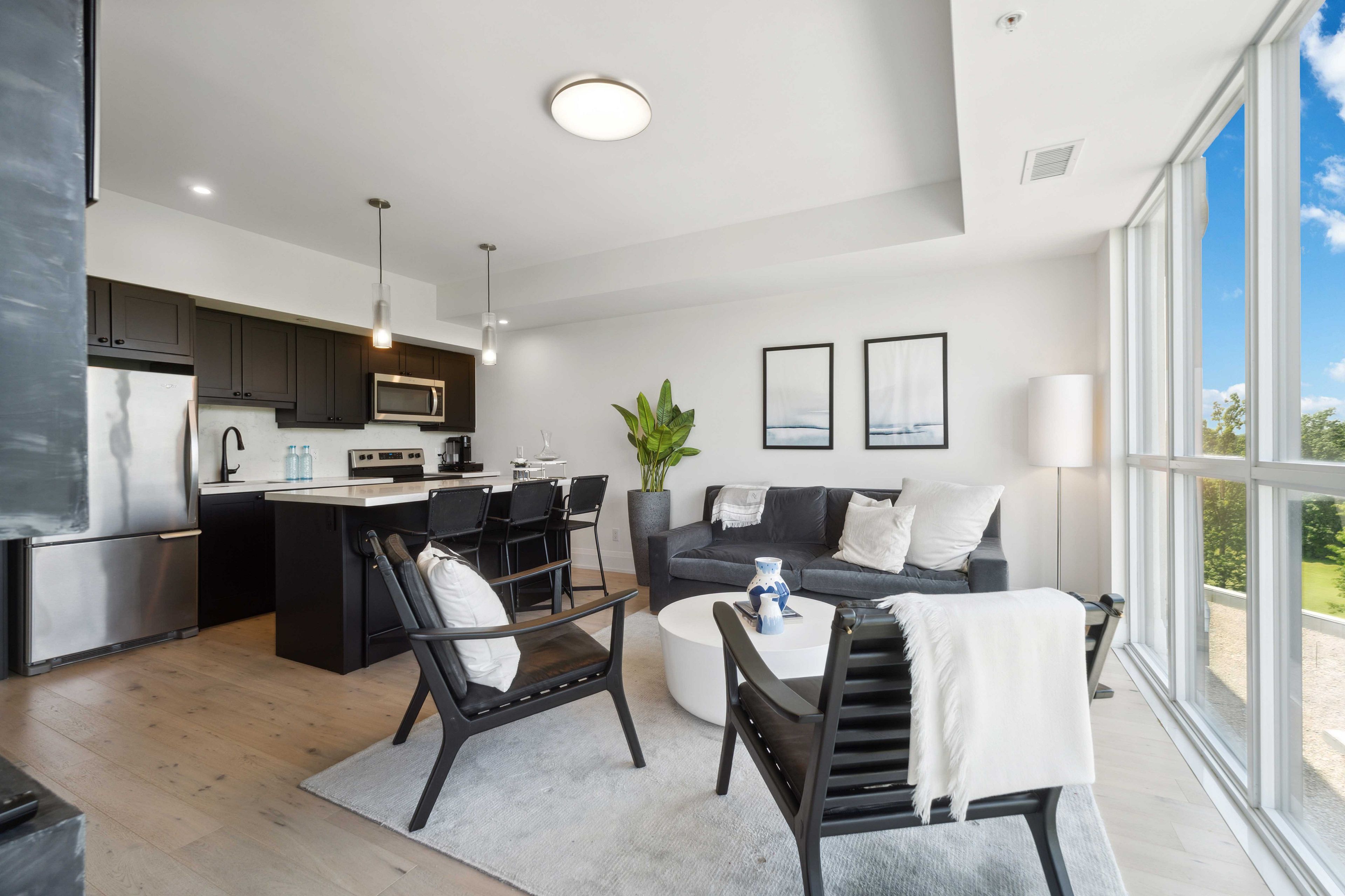 • Modern corner unit with floor-to-ceiling windows for natural light.