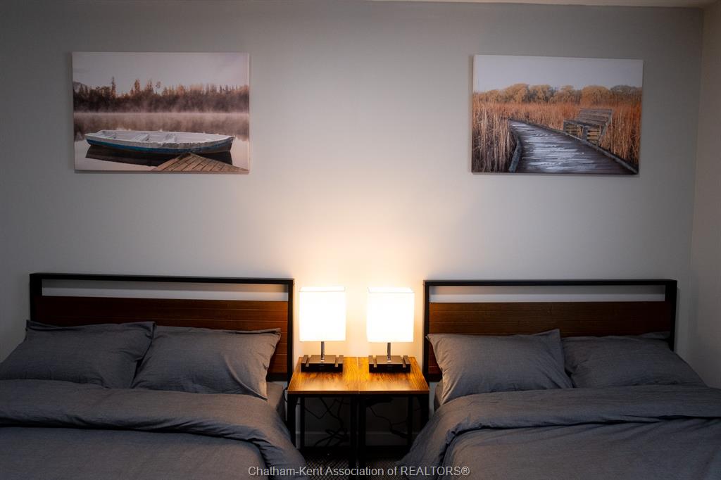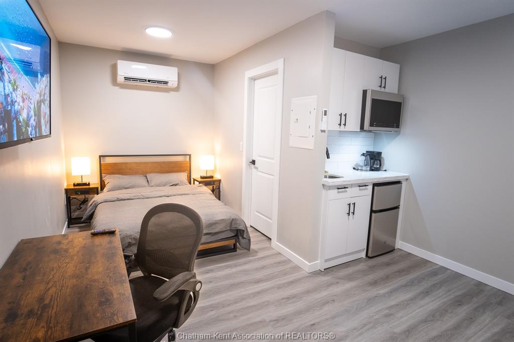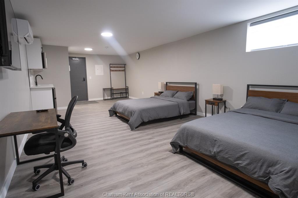 Exceptional opportunity to own ck motel a fully renovated 19-unit income property located at 7715 queens line in chatham-kent. This turnkey, staffless airbnb-style motel is ideal for investors seeking strong cash flow through short-term, mid-term, and workforce housing rentals. Extensively updated in 2024, the property features new electrical service with a sub panel in each unit, new windows, new doors, complete plumbing replacement from the road to each unit, and a fully reconfigured layout. All 19 units offer private kitchenettes, luxury vinyl plank flooring, smart tvs, and modern furnishings. On-site laundry adds convenience for extended stays and fully paved parking with 19 parking spots. Situated on a high-traffic corridor with excellent visibility and frontage, with additional upside potential for signage income (subject to municipal approval). Bonus value-add: the rear parcel offers potential for future self-storage development up to 13,000 sq ft, creating additional income streams and long-term growth.