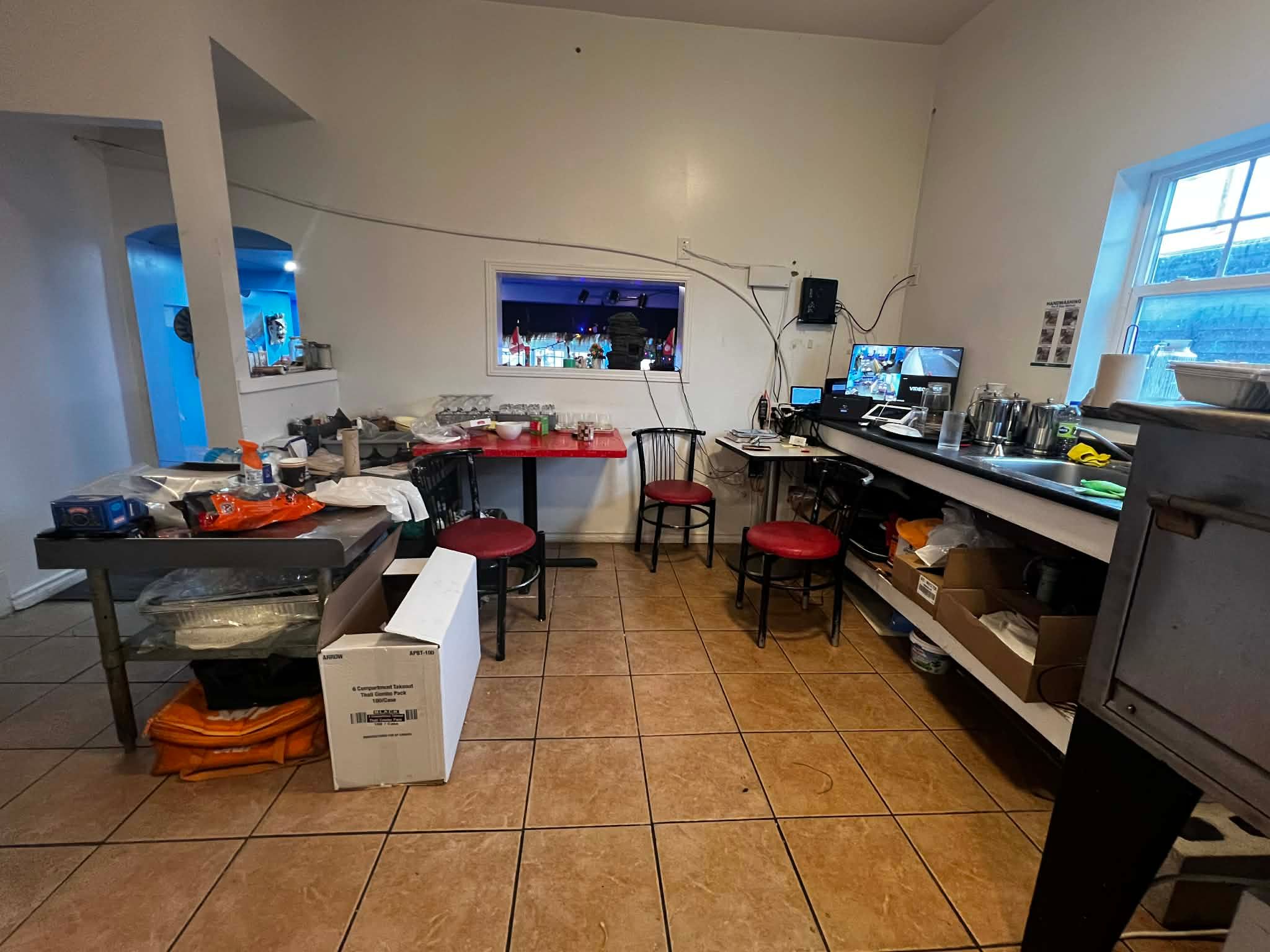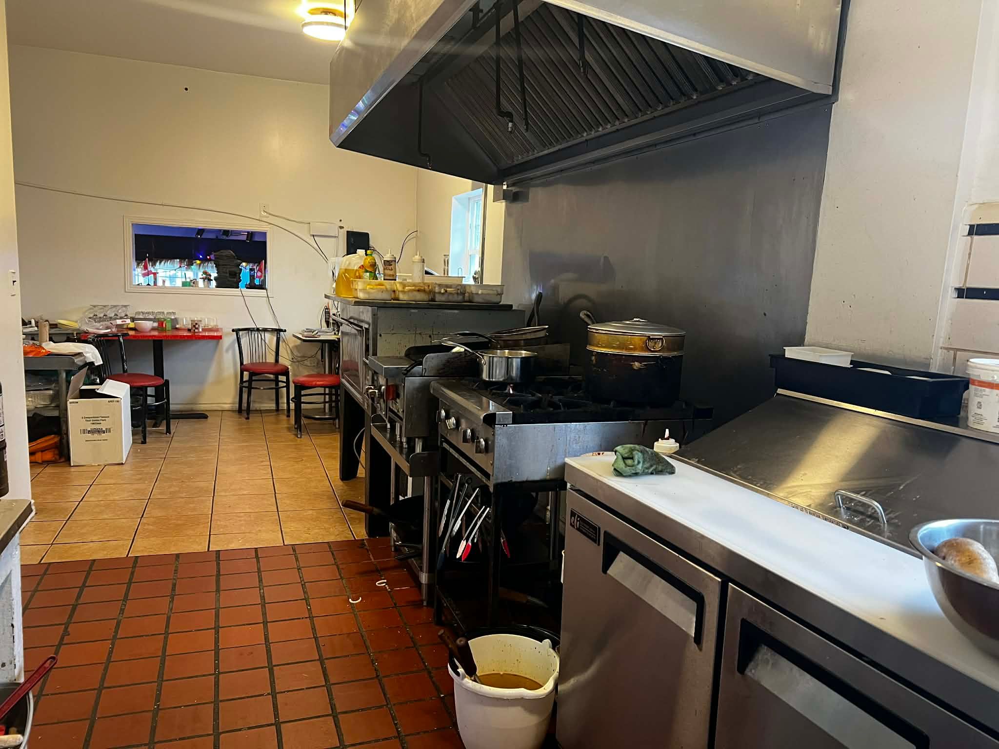 • Commercial kitchen equipped for a restaurant with various culinary options.