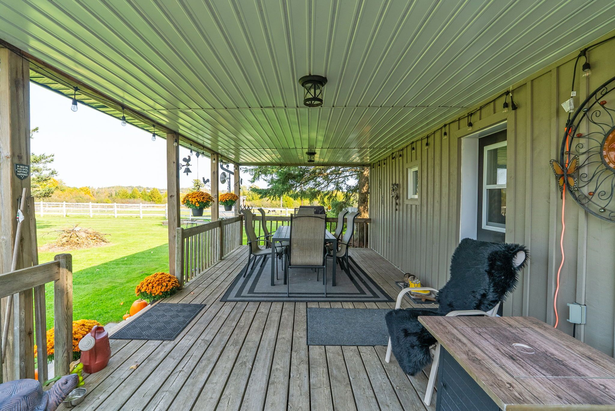 Escape to the countryside without leaving convenience behind!** discover this enchanting 30+ acre hobby farm nestled just 10 minutes from brooklin in the much sought after durham region. With easy access to the 407, 412, highway 7, highway 12, and the 401, this property combines rural charm with unbeatable convenience. This 3-bedroom, 3-bathroom residence is designed for comfort and warmth, featuring a main-floor primary bedroom with ensuite, perfect for easy access and privacy. Relax on the inviting covered back porch overlooking a beautifully landscaped yard, or enjoy mornings on the front porch. The separate entrance leads to a finished basement with endless possibilities. *equestrian-ready amenities* the property includes horse paddocks, a round pen, a sand ring, 4-stalls and a tack room, all ready for your equestrian needs. *convenient and versatile outbuildings* beyond the barn, you'll find a40x60 outbuilding for projects or storage.*stunning scenic views*-the mature maple tree-lined driveway and the open picturesque surroundings offer peace and privacy. A true haven for those looking to connect with nature. Ample parking ensures convenience for everyone. Farm taxes