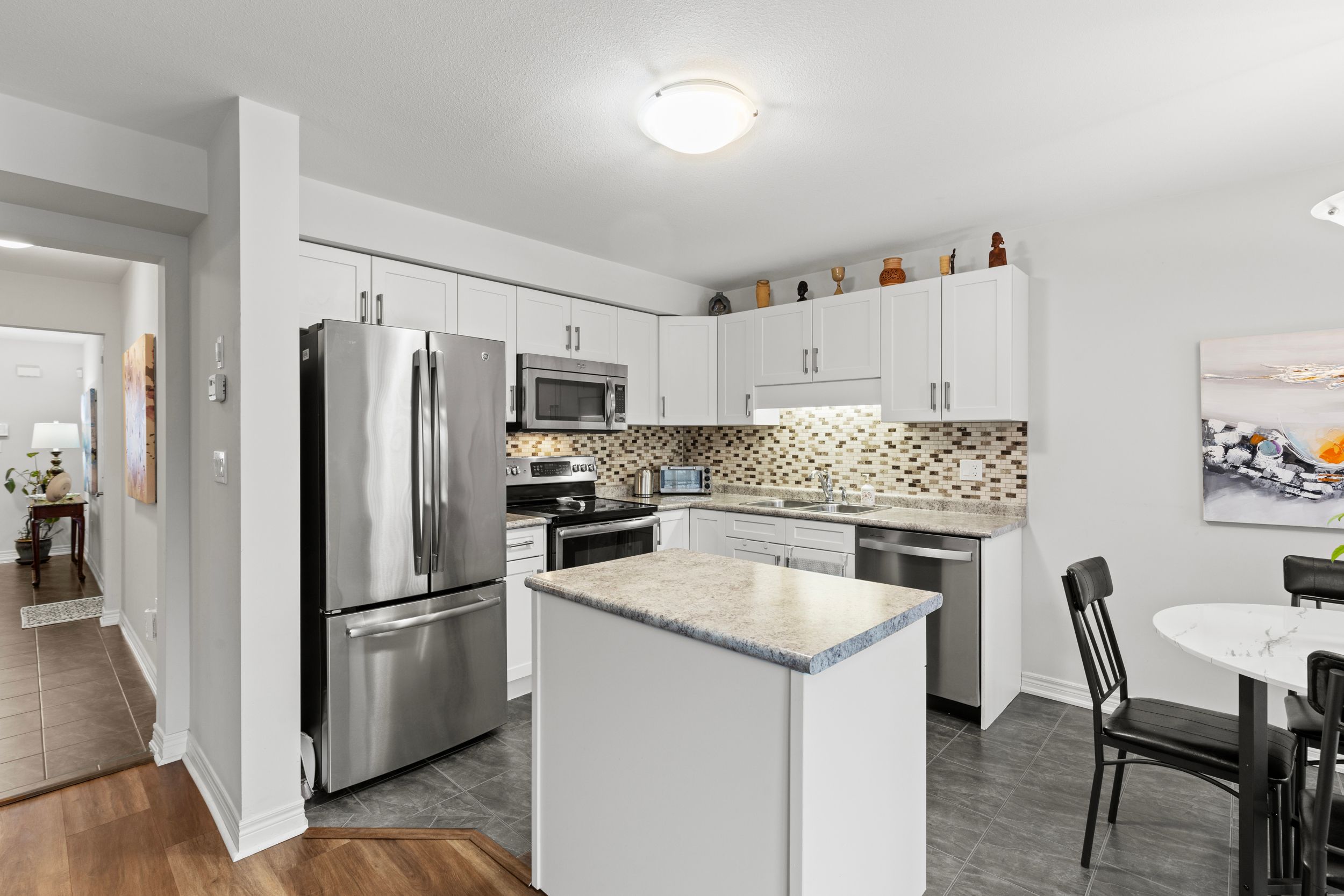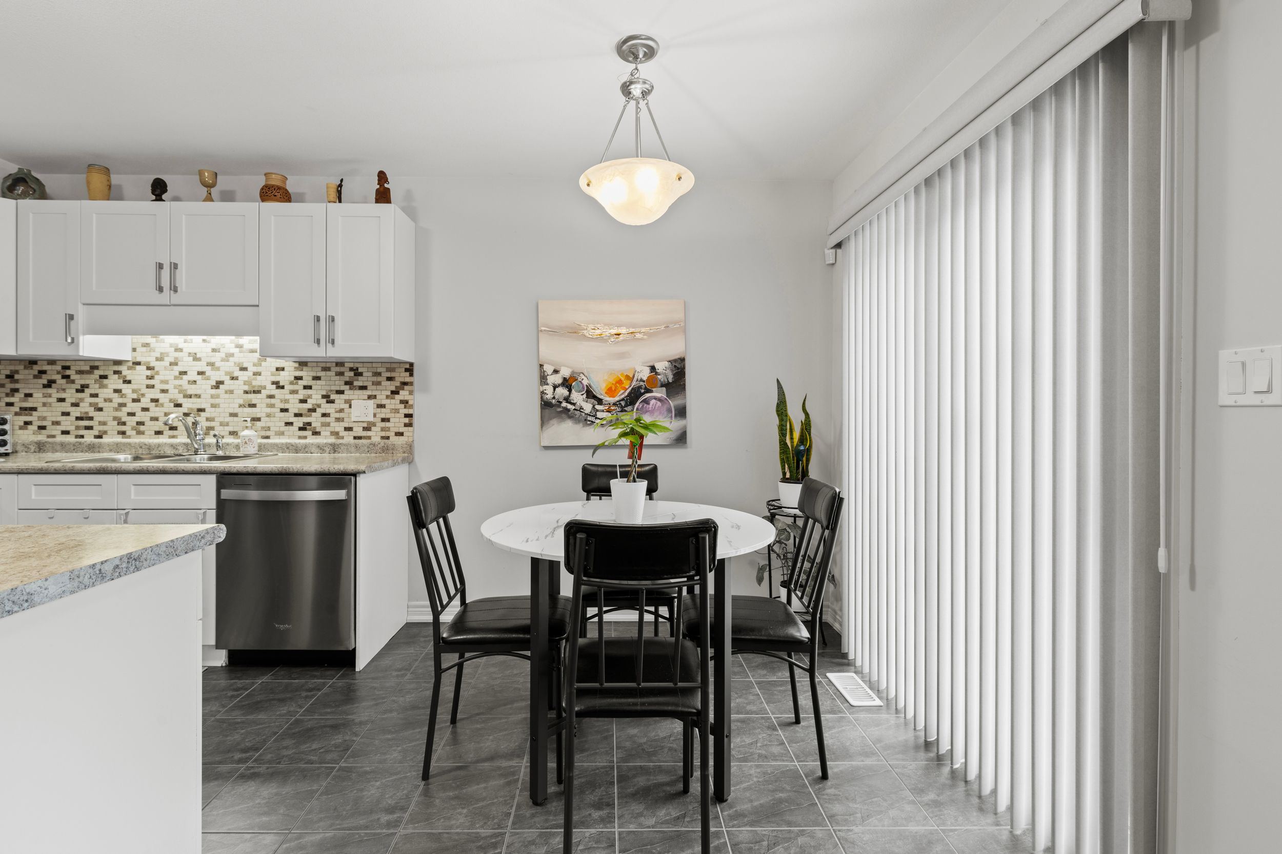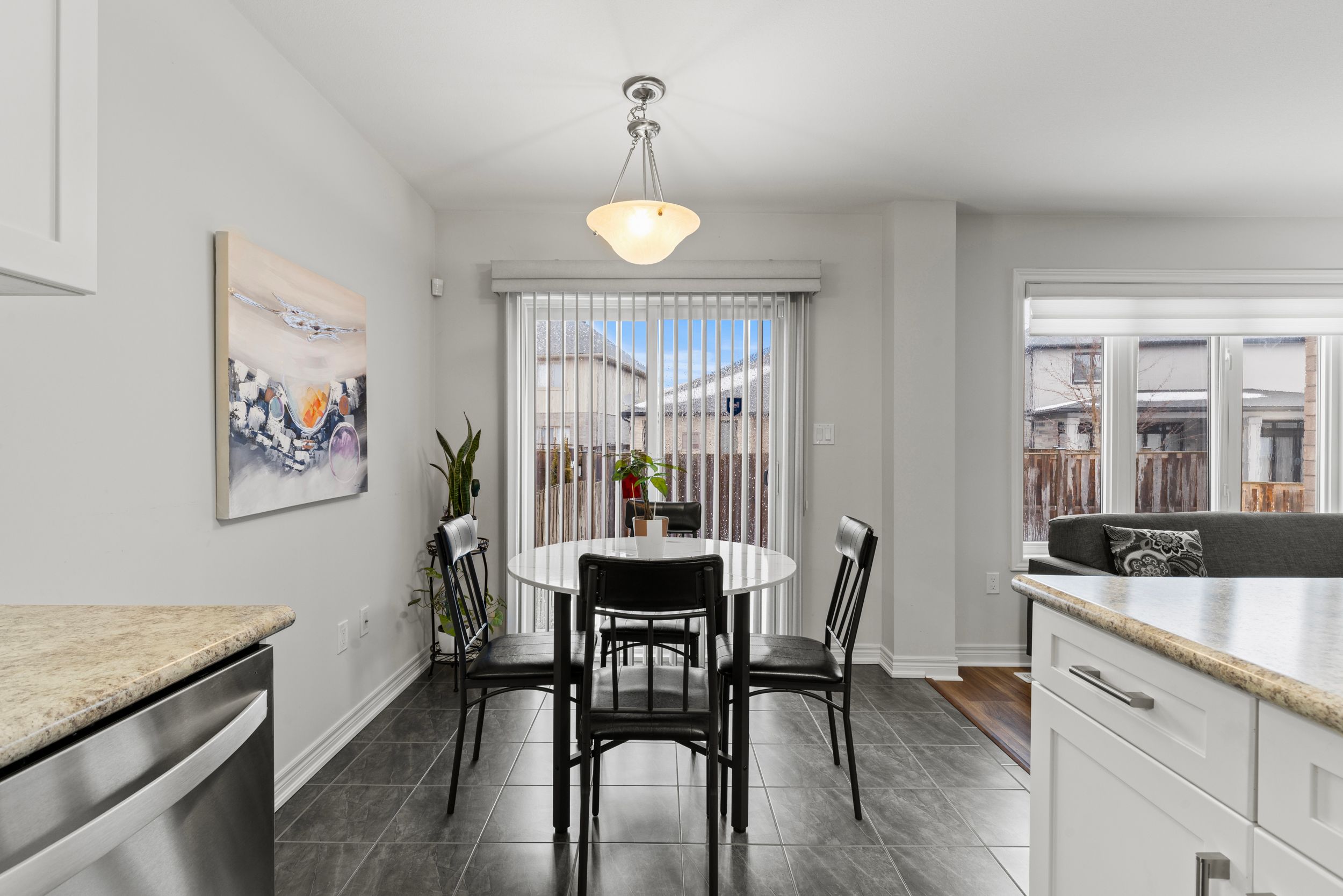 • Kitchen includes patio doors for easy backyard access and natural light.