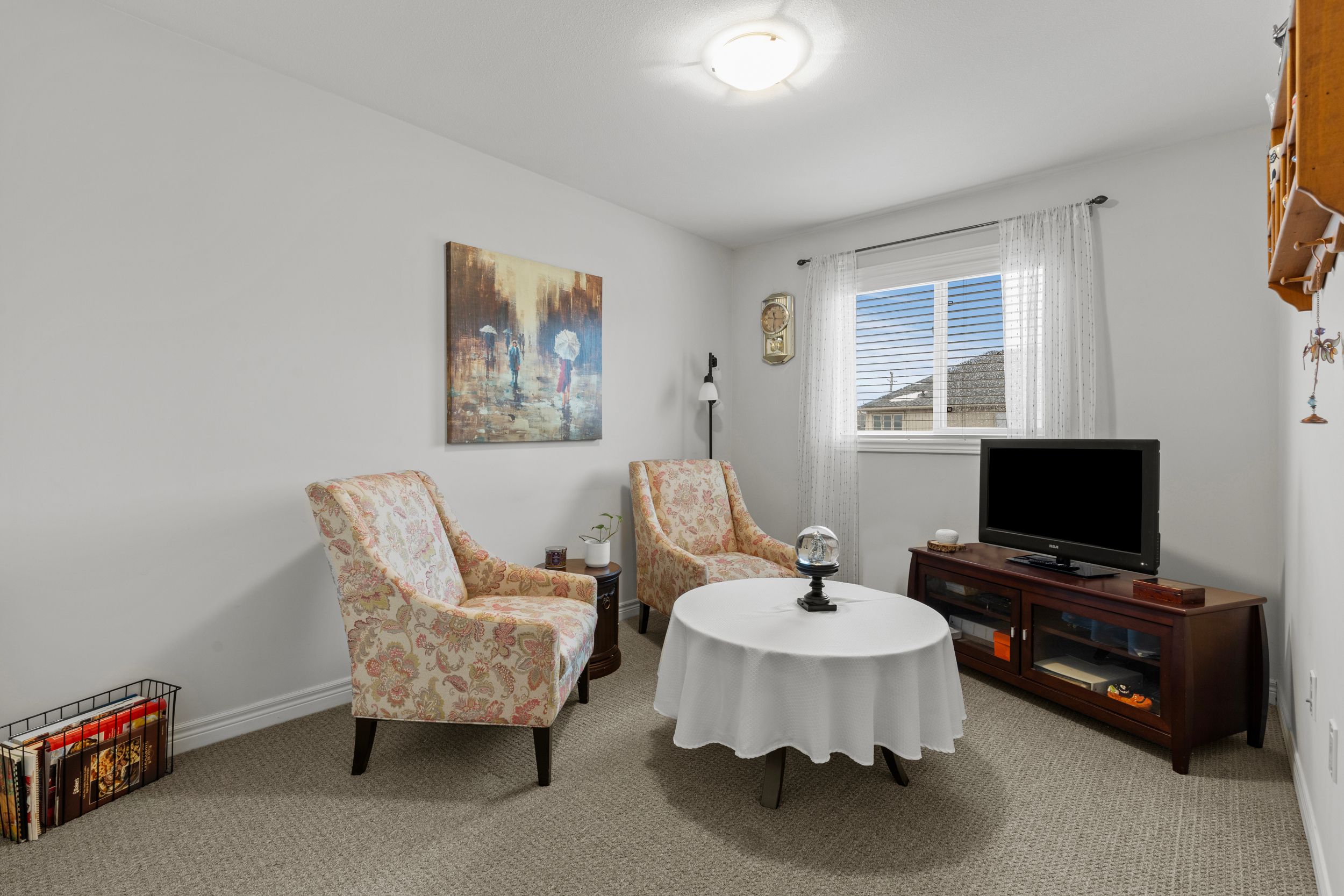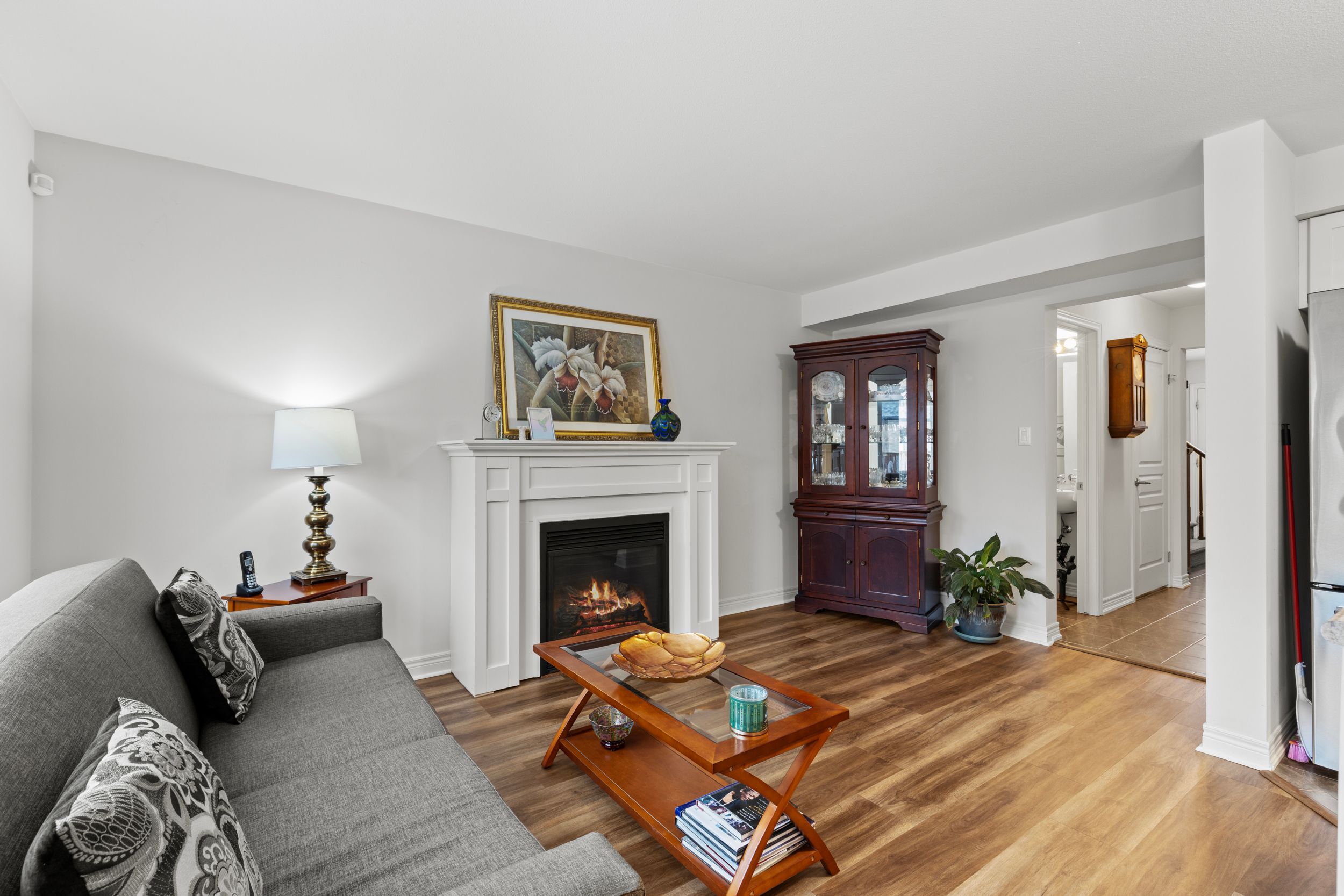 • Bright living room features a cozy gas fireplace for relaxing evenings.