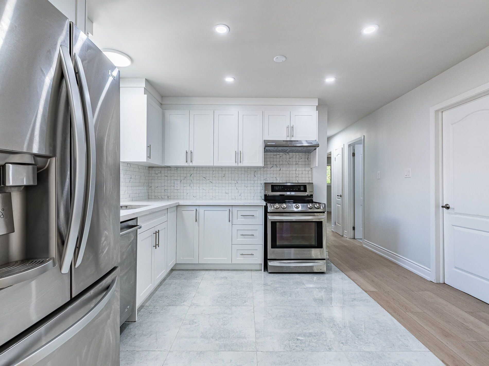 Welcome to this impeccably updated semi-detached raised bungalow, thoughtfully redesigned to offer modern comfort and exceptional versatility. The main level features three generous bedrooms, fully renovated bathrooms, in suite laundry, upgraded flooring, and a stunning new kitchen complete with quartz countertops, contemporary backsplash, and stylish pot lighting. Freshly painted throughout, the home is truly move-in ready. The lower level also showcases a separate entrance, updated finishes, providing an ideal opportunity for extended family living or potential rental income. Outside, a spacious, fully fenced backyard offers the perfect setting for relaxation, entertaining, or family activities. This turn-key property is an outstanding choice for homeowners and investors alike. Ideally situated just steps from schools, parks, recreation facilities, shopping, and public transit-and only minutes from major highways and the international airport-this property offers an exceptional blend of luxury, convenience, and investment potential. Recent exterior upgrades include a newly constructed driveway and a brand-new garage door, enhancing both curb appeal and functionality. Don't miss this opportunity to own a truly outstanding home in a highly desirable location!