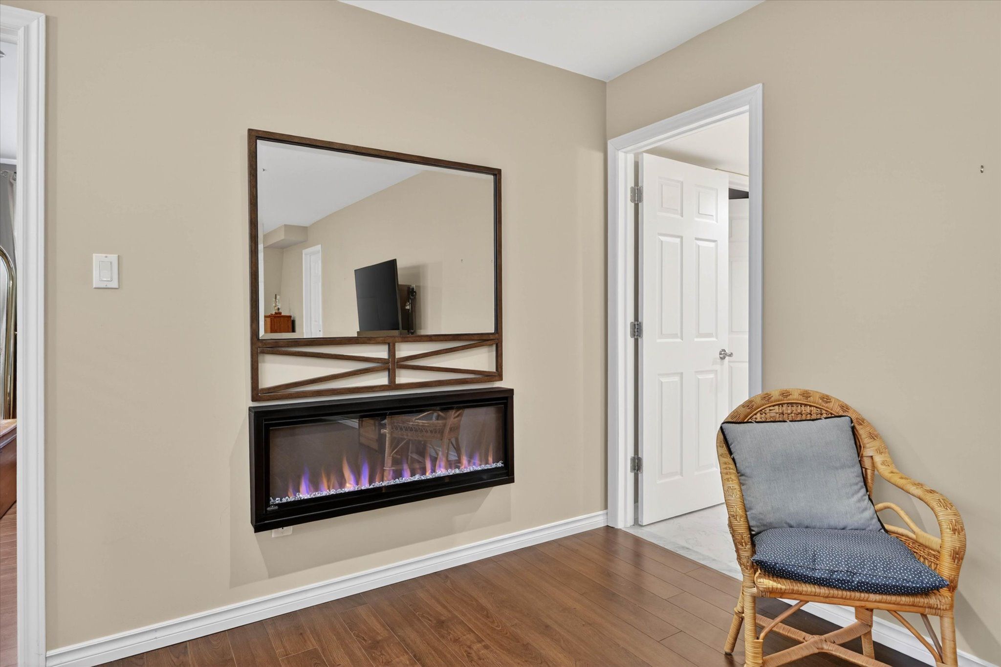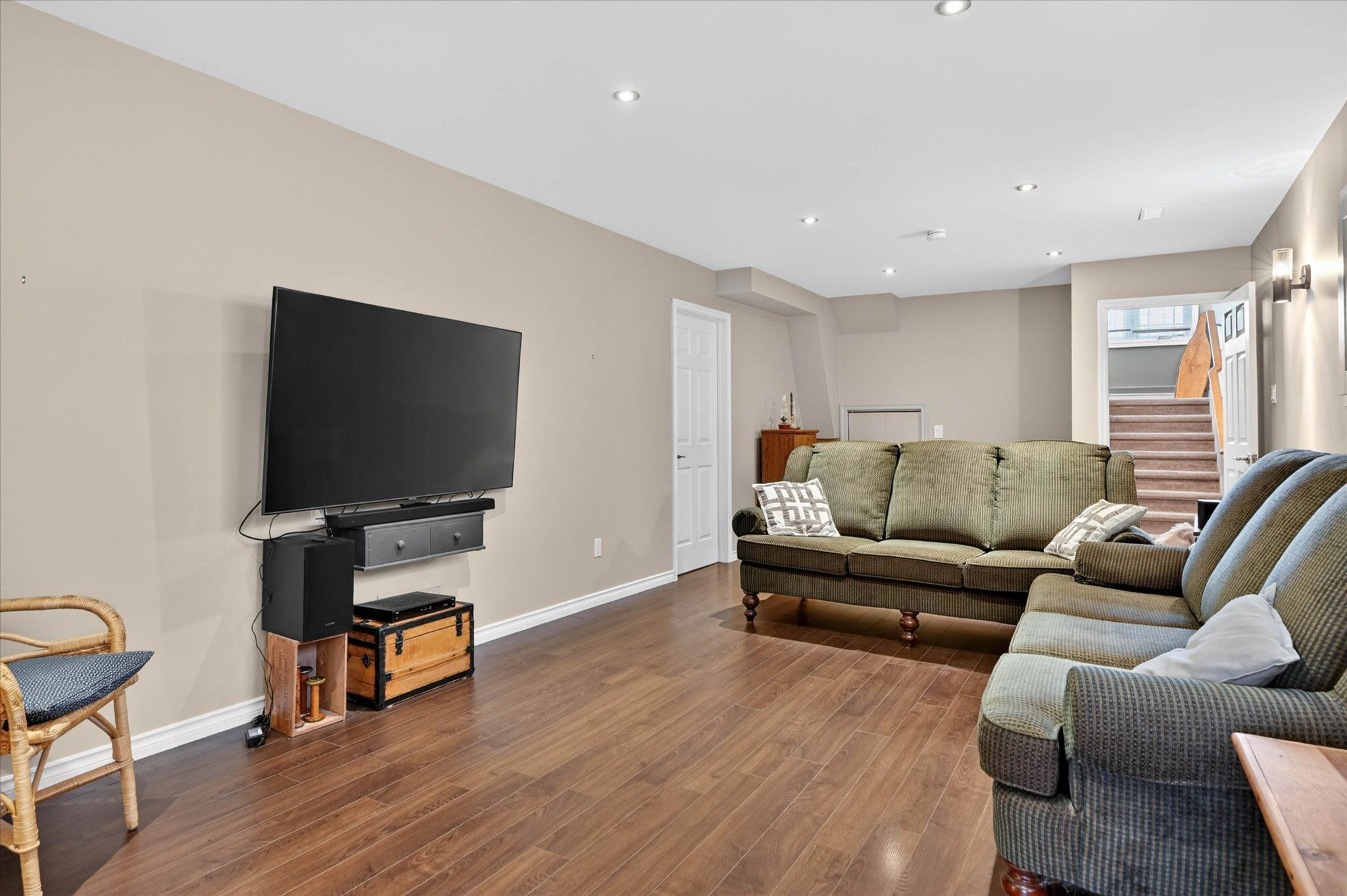 • Finished recreation room featuring LED pot lights and electric fireplace.
