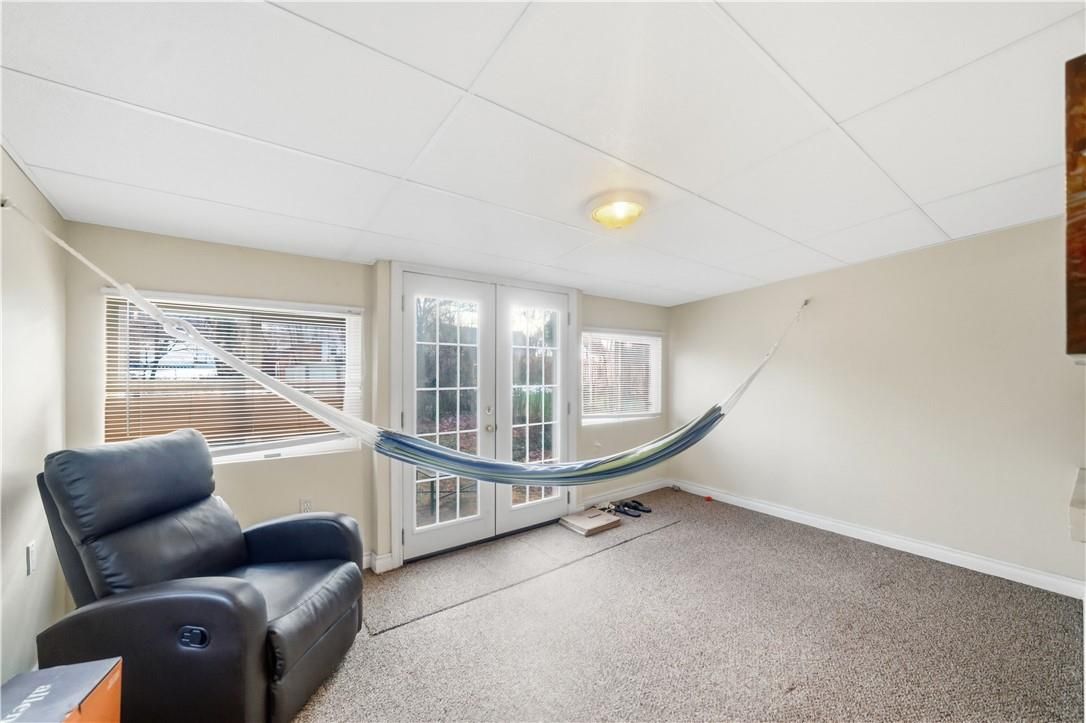 • Finished basement includes rec room, den, and workshop space.