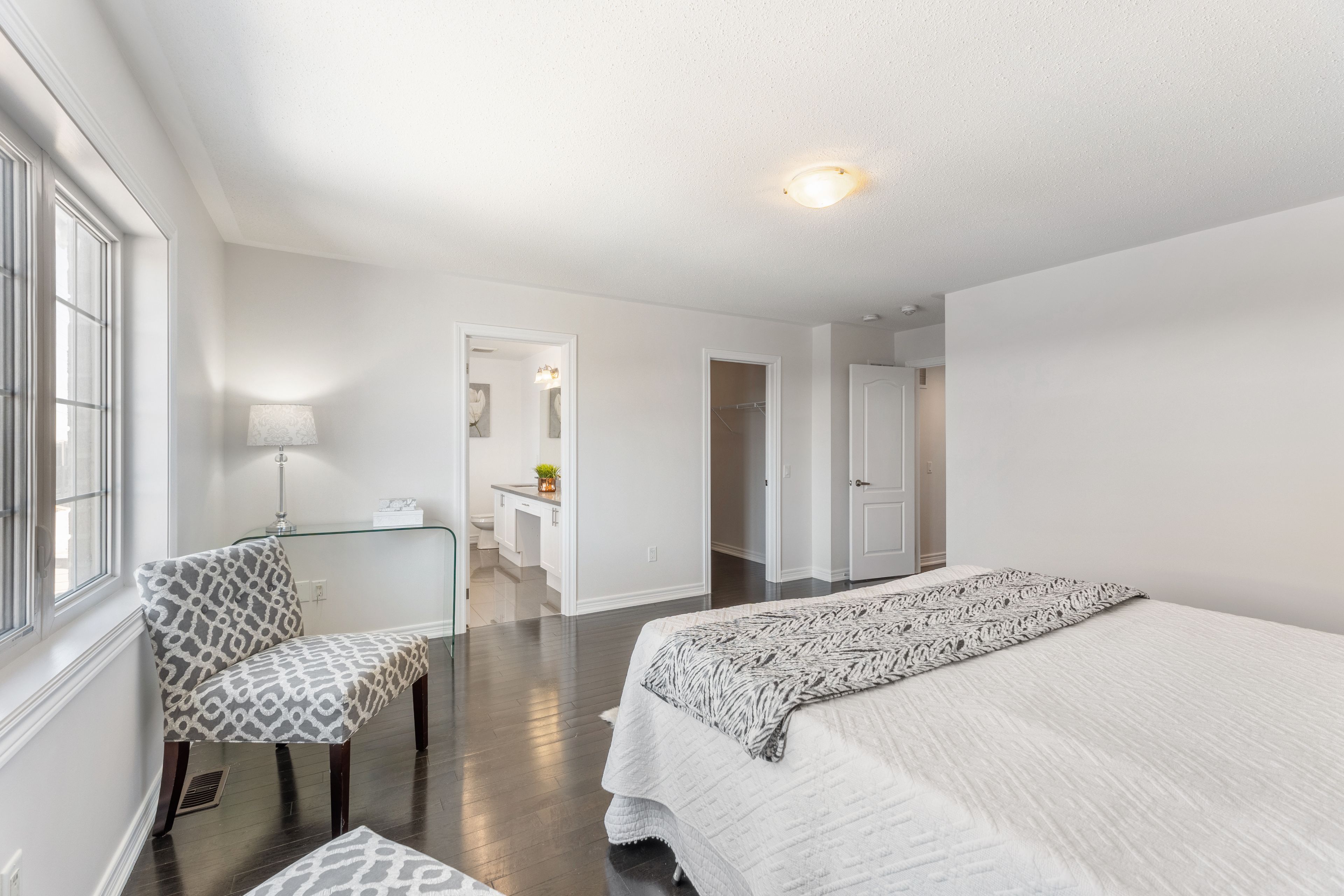 • Grand primary bedroom includes large windows, a walk-in closet, and a spa-like ensuite.