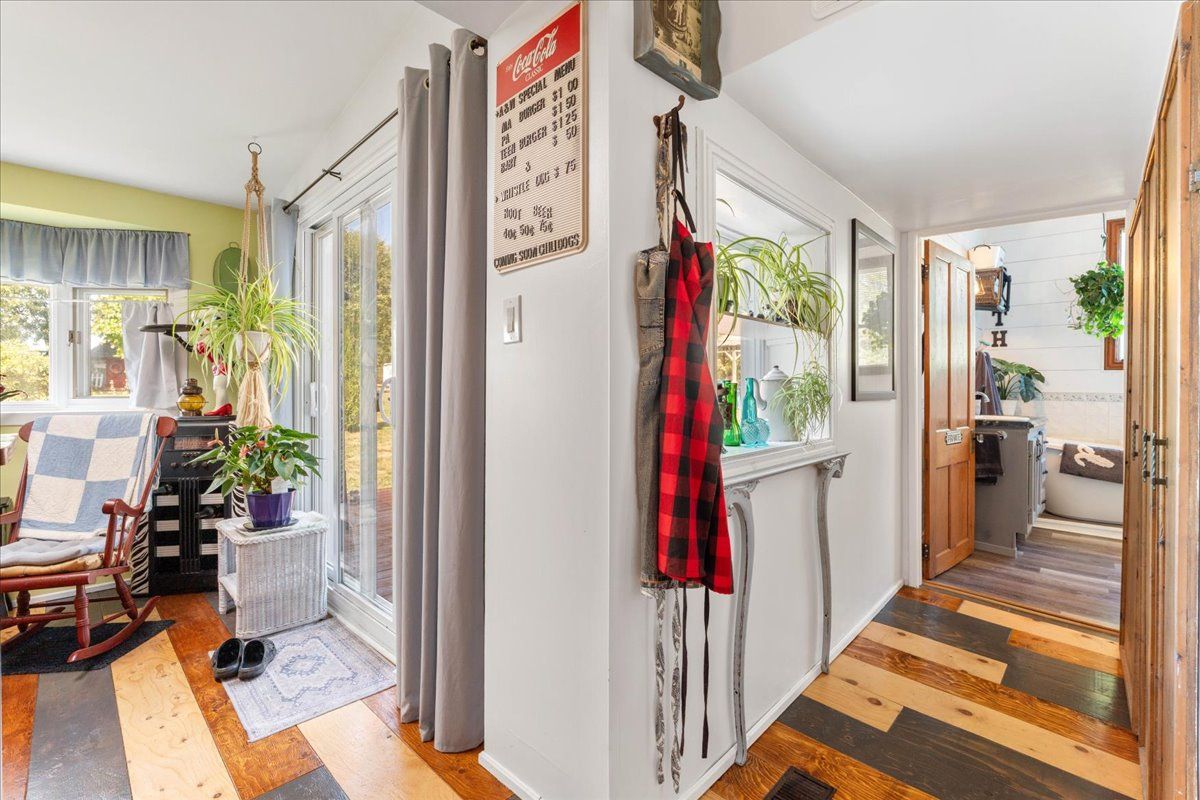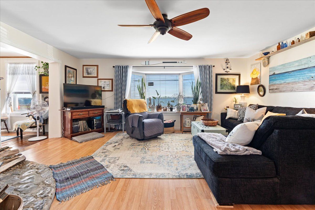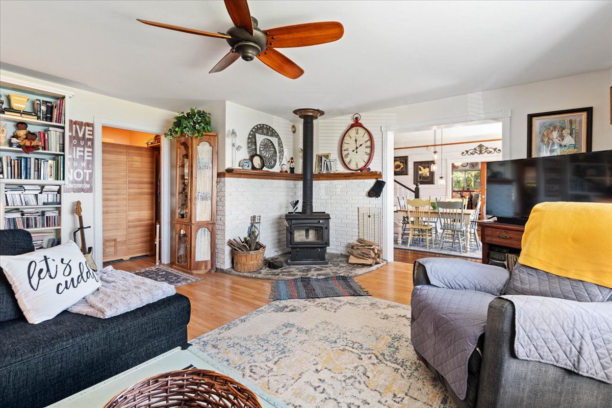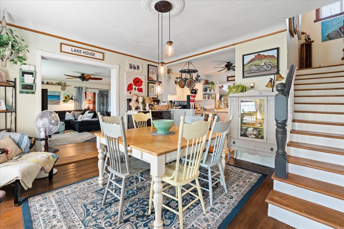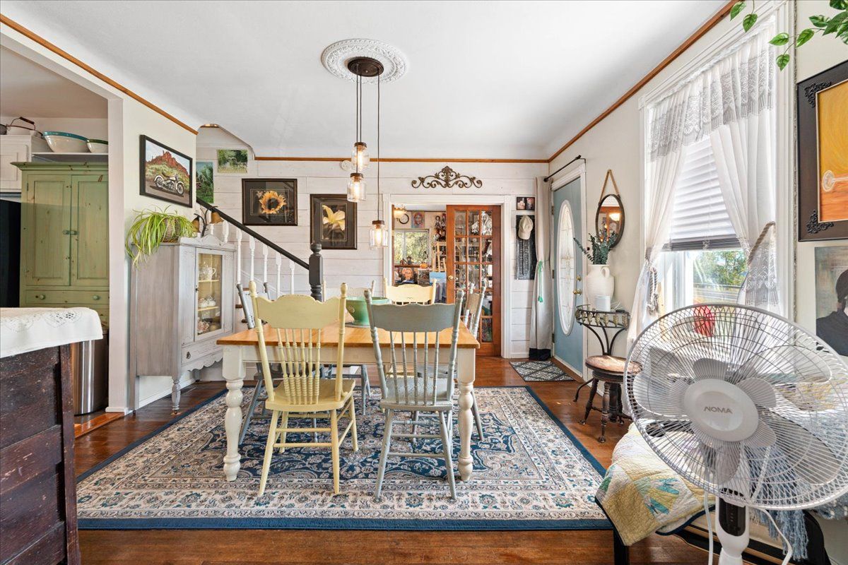 • Spacious, character-filled living space with warm wooden floors.