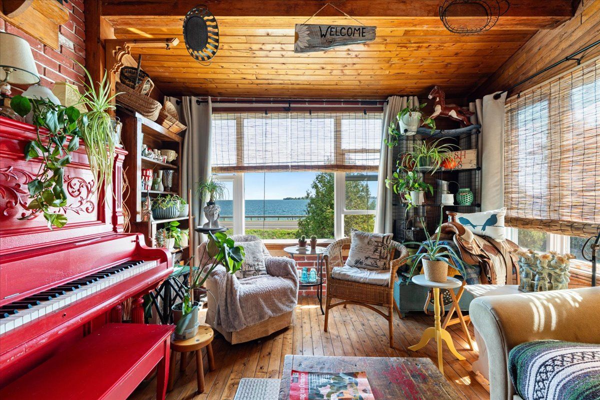 Imagine waking up to breathtaking views across adolphus reach and spending your days immersed in the peaceful beauty of rural ontario. This charming 1. 5 storey century home offers over an acre of lush, private land perfectly situated within easy driving distance to the vibrant communities of napanee, kingston, and picton. Whether you're seeking a weekend retreat or a full-time sanctuary, this property invites you to experience the true essence of country living, complete with your own grape vines and fruit trees. This lovingly maintained home boasts approximately 1,500 square feet of character-filled living space. Artistic touches abound, from warm wooden floors to unique architectural details and inviting nooks. Large, sun-drenched windows frame captivating water and garden views throughout, flooding every room with natural light and inspiration. One level living is possible here with main floor primary bedroom, full bathroom, laundry and living areas. Upon entering, a cozy family room with windows that showcase lake views leads you into an additional living area featuring a wood-burning stove. The dining room and the bright kitchen are spacious and inviting. An adjoining breakfast nook opens onto the back deck for seamless indoor-outdoor flow. A main floor, 4 piece bathroom has a free-standing soaker tub and glass shower. Upstairs are 2 more bedrooms, both with incredible water views and they share another full bathroom. Outdoors there is an array of deck spaces, gardens, gazebo, garden shed and another outbuilding to house your crafts or to store your hobbies. Waterfront can be accessed across the road where there are steps to the waterfront. This home is just 15 minutes to napanee and 30 minutes to kingston and a short ferry ride to picton.