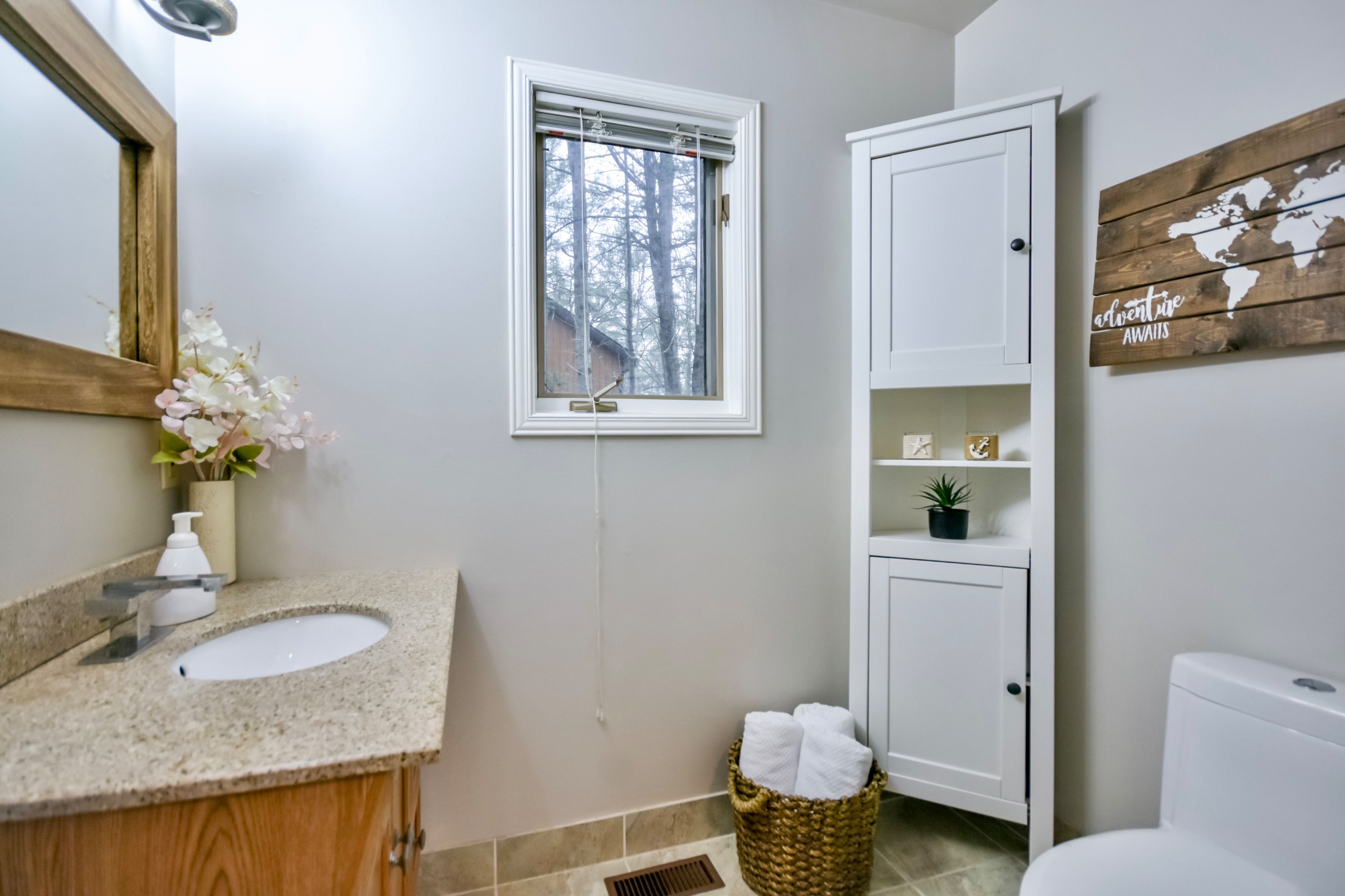 • Cozy wood-burning fireplace adds warmth and ambiance.
