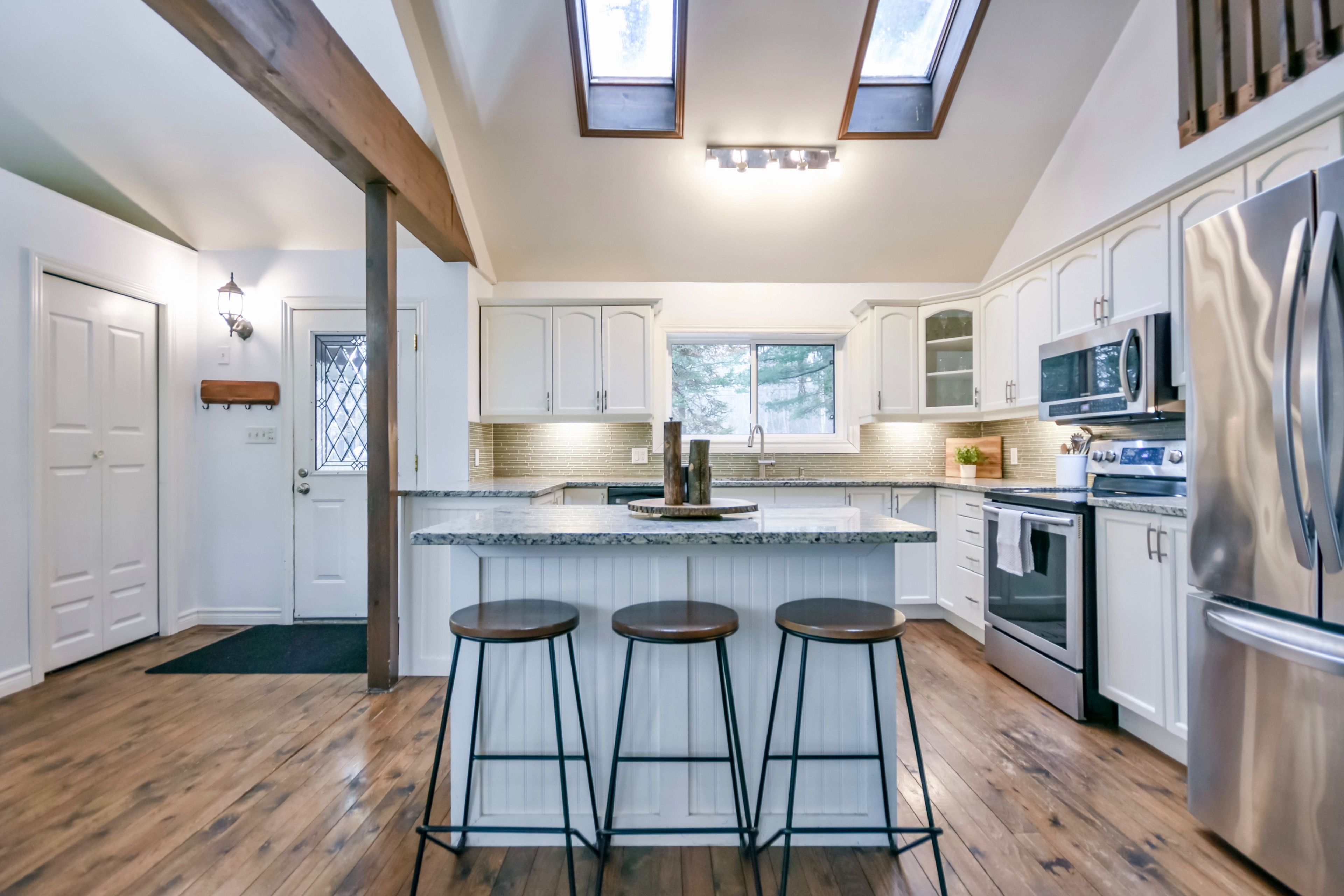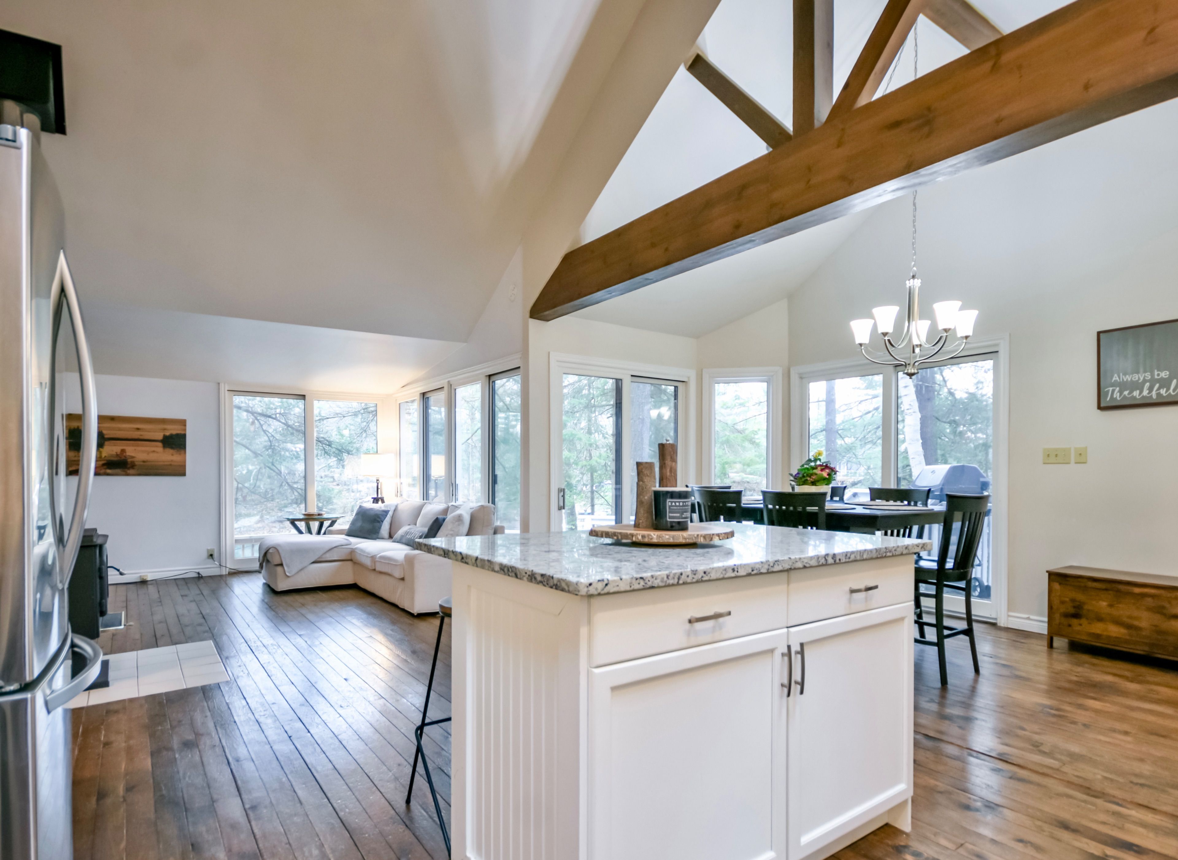 • Bright open-concept layout with large windows and hardwood floors.