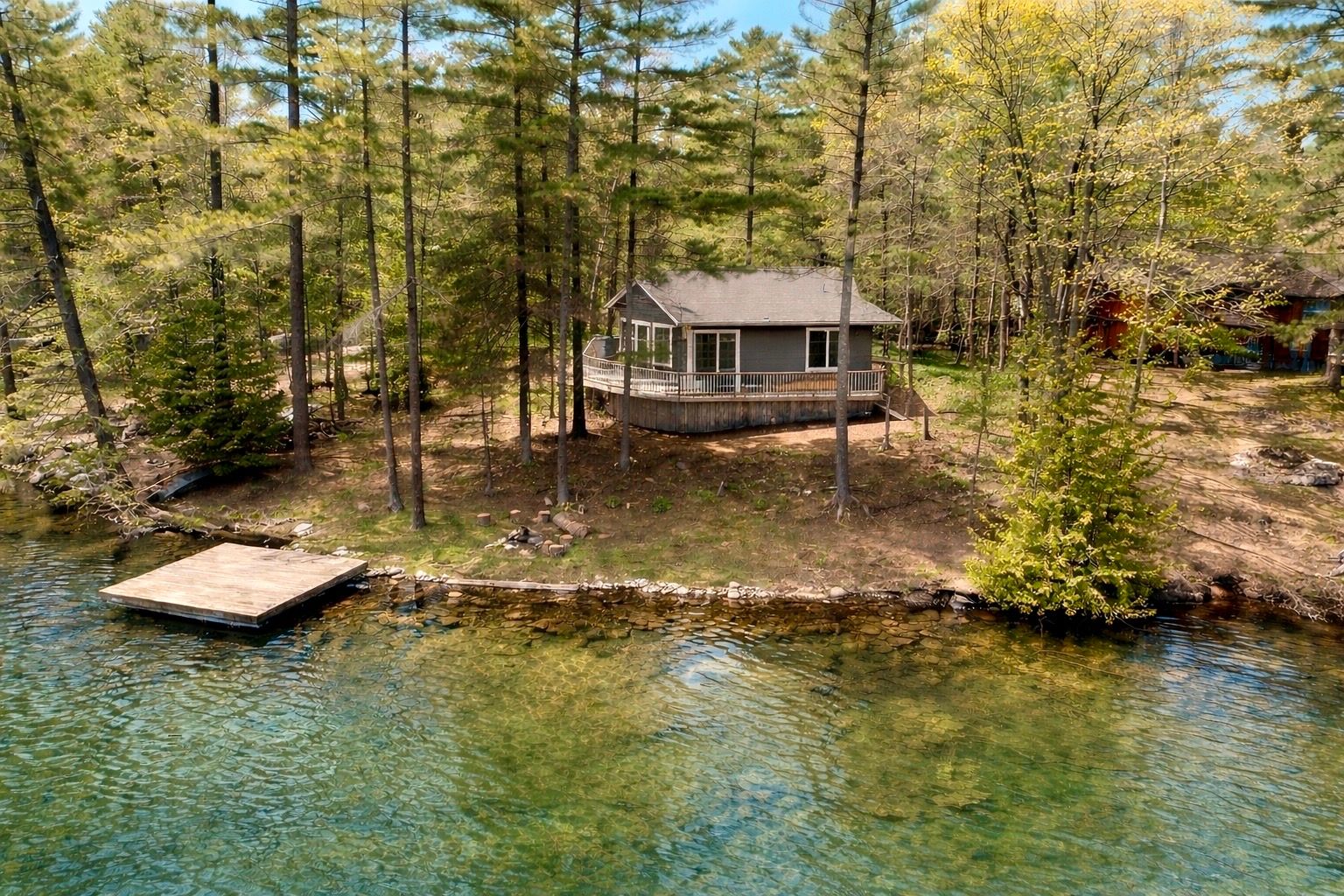 • Private dock offers direct access for swimming and fishing.