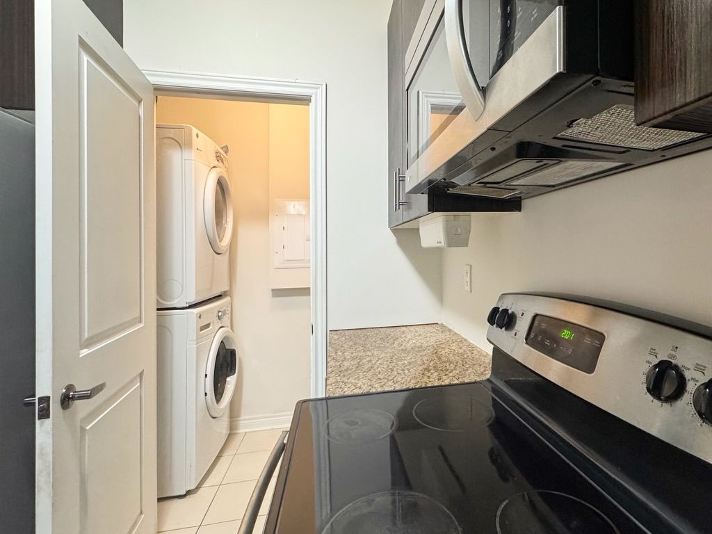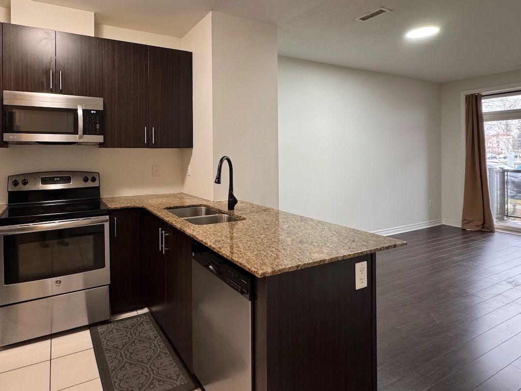 Welcome to greenlife midtown markham-an eco-friendly building featuring advanced sustainable technology! This energy-efficient suite offers self-contained heating and cooling, 9-foot ceilings, a versatile den that can function as a second bedroom, a spacious kitchen with granite countertops, a breakfast bar, and energy star-rated stainless steel appliances. The practical layout includes a large accessible bathroom, an east-facing balcony, and comes with one underground parking spot and a locker. Building amenities include a fitness room, meeting room, visitor parking, and an ev charging station. Ideally located with transit at your doorstep, and close to the milliken mills community centre, parks, york university markham campus, ymca, pan am centre, unionville go station, highway 407, shopping, dining, and more.