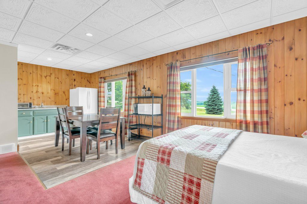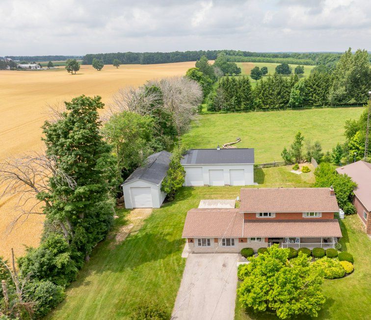 Country living at its best! This spacious home loved by one family for over 35 years, sits on just shy of an acre of beautifully landscaped land with serene views of open countryside featuring two shops! Offering over 2,700 sq ft of living space, including a 400 sq ft above-grade bachelor style in law suite, ideal for multigenerational living. The main two story home features a large wood kitchen with stainless steel appliances, ample storage, and quartz countertops. In addition to a separate dining room, and a bright living room with an electric fireplace. Main floor laundry, a 4-piece bath, and a dedicated office/flex space provide everyday convenience. The homes second floor features 4 generous bedrooms, and a full 4-pc bath. The fully finished basement offers additional living space and abundant storage. Additionally - the property features a 20kw generator for an added peace of mind to the homeowner. Outside, you'll find two impressive shops: a 20x60 ft gravel-floor shop with 14ft door - perfect for rv or equipment storage - and a 32x47 ft three-bay shop with one, 12ft and two, 10ft doors boasting over 2,700 sq ft of combined shop space for hobbies, business, or storage needs. The backyard is private and landscaped with no rear neighbours. A perfect combination of function, space, and flexibility in a peaceful rural setting. Just minutes to town amenities with a quick drive into guelph. A must-see!