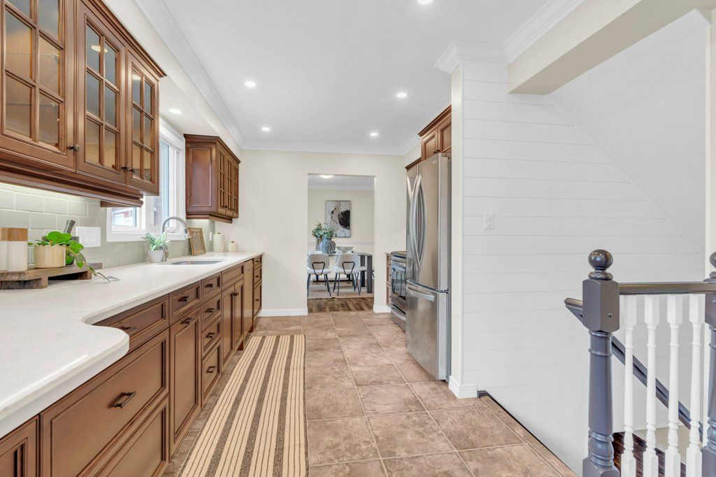 • Large kitchen featuring stainless steel appliances and quartz countertops.