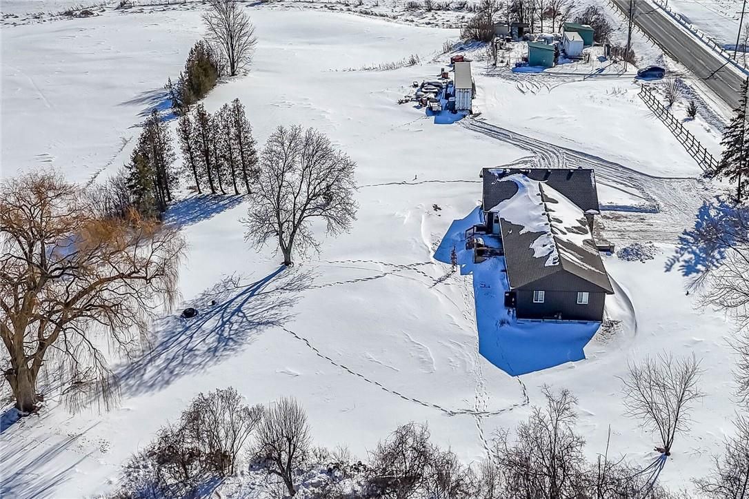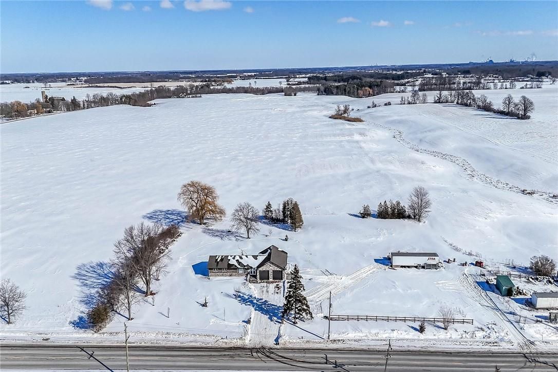 Discover this private "country retreat" surrounded by calming farm fields highlighted w/beautifully renovated bungalow, owned by prof. Brick/stone mason, where skillful workmanship is evidenced by stunning stone/brick façade covering the original dwelling & large 2020 addition incs 28'x36' attached garage offering scissor truss, hoist worthy, ceiling & 2 insulated 10'x10' ru garage doors w/hi-end side openers. The sprawling "estate" style home is positioned handsomely on 1. 95ac manicured lot offering desired location less than 5-10 min commute to pt dover, pt ryerse & simcoe in-route to popular destination villages & towns dotting lake erie golden south coast. Impressive paver stone double driveway, passing thru stone entry pillars, extends to stylish stone walkway leading to front door accessing grand foyer introducing over 1,500sf of chicly appointed interior highlighted w/stunning open concept living room, gorgeous new custom kitchen sporting in-vogue white cabinetry, granite countertops, ss appliances & dining area enjoying patio door wo to 16'x12' entertainment deck incs rear garage entry. The opulent edifice has been completely gutted back to studs in 2020 - then insulated, drywalled & complimented w/luxury vinyl flooring, pot lighted ceilings & completed w/freshly painted neutral décor. Main level design continues past modern 4pc bath enhanced w/quartz vanity, tiled tub & shower surround - on to n-wing primary bedroom, sizeable guest bedroom & spacious laundry room (formerly bedroom). Large multi-purpose room, ftrs drywalled perimeter walls, highlights 1,500sf open & airy lower level incs versatile finished room (under addition), 2 utility rooms & huge storage room. Extras - 200 amp hydro, n/gas furnace w/hepa fresh air system, ac, roof-2020, 173ft drilled well-2023, peroxide uv purification, 45ft van storage trailer & septic system. Approved drawings & permits for 1480sf residential addition available. Blending executive life-style with rural tranquility.