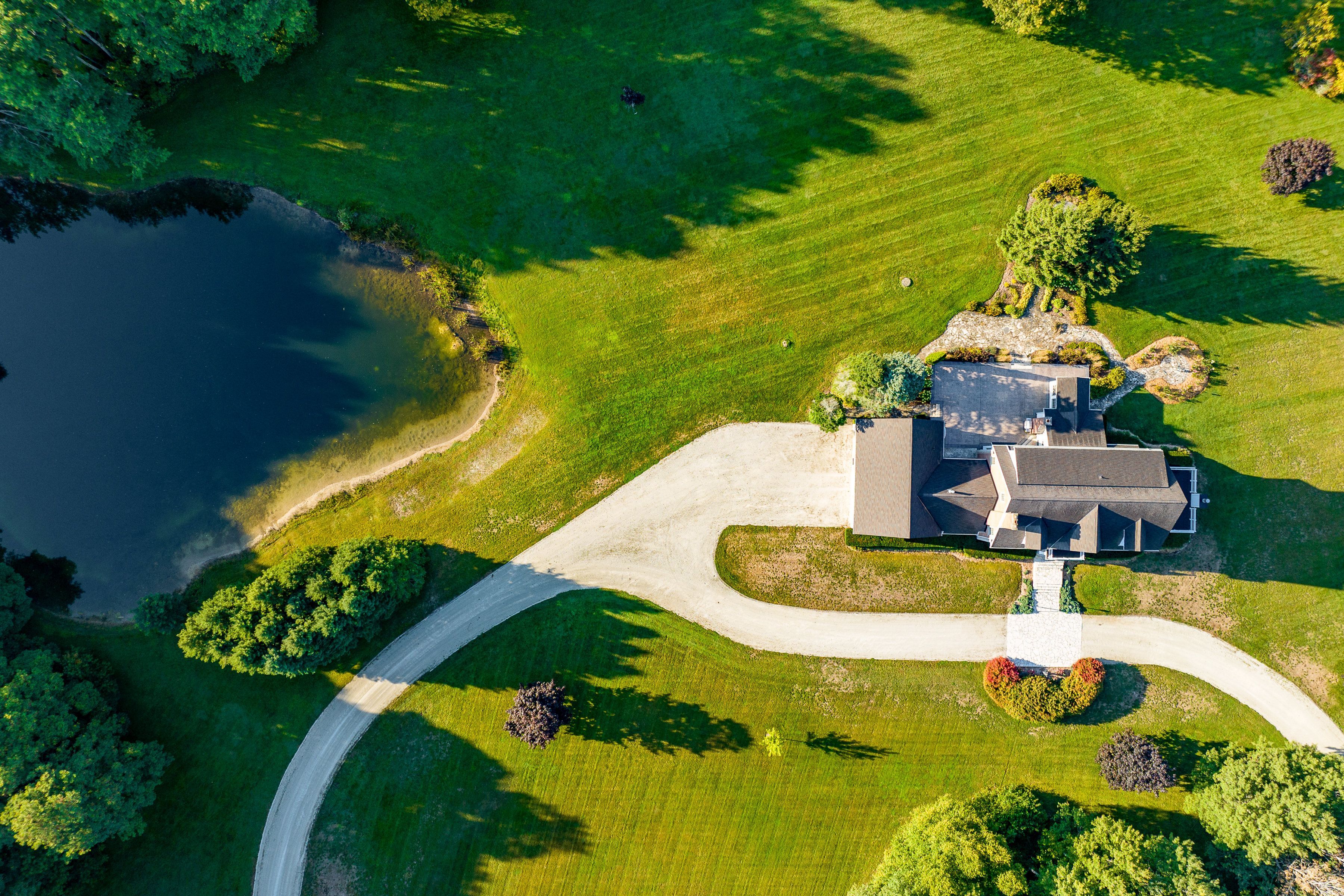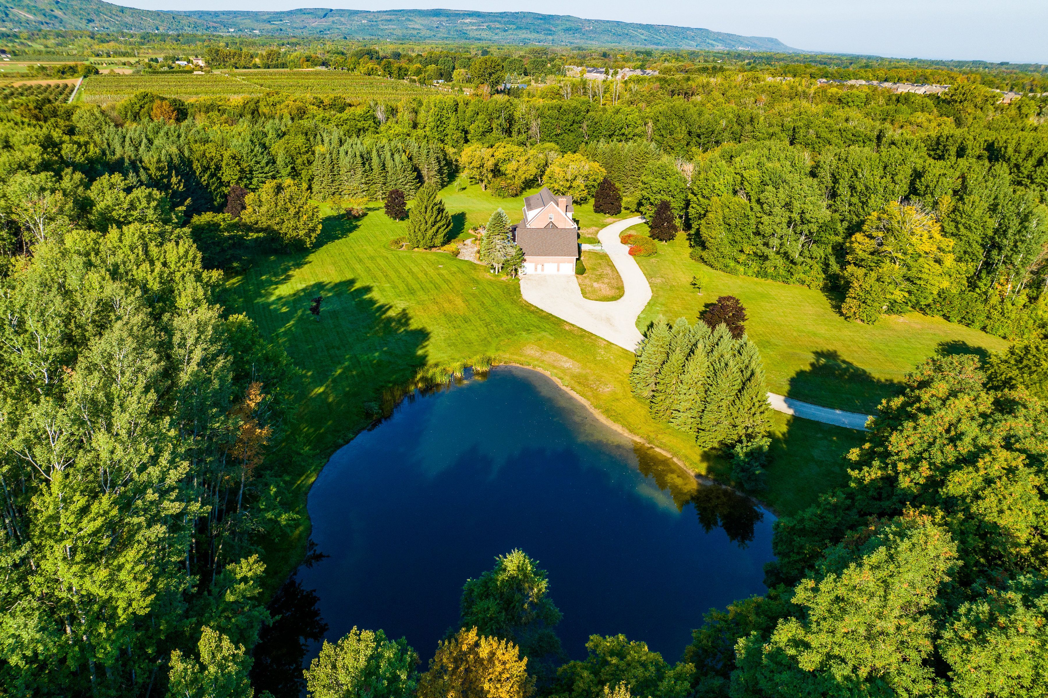 • Private 58-acre property with landscaped grounds, ponds, and apple orchards.