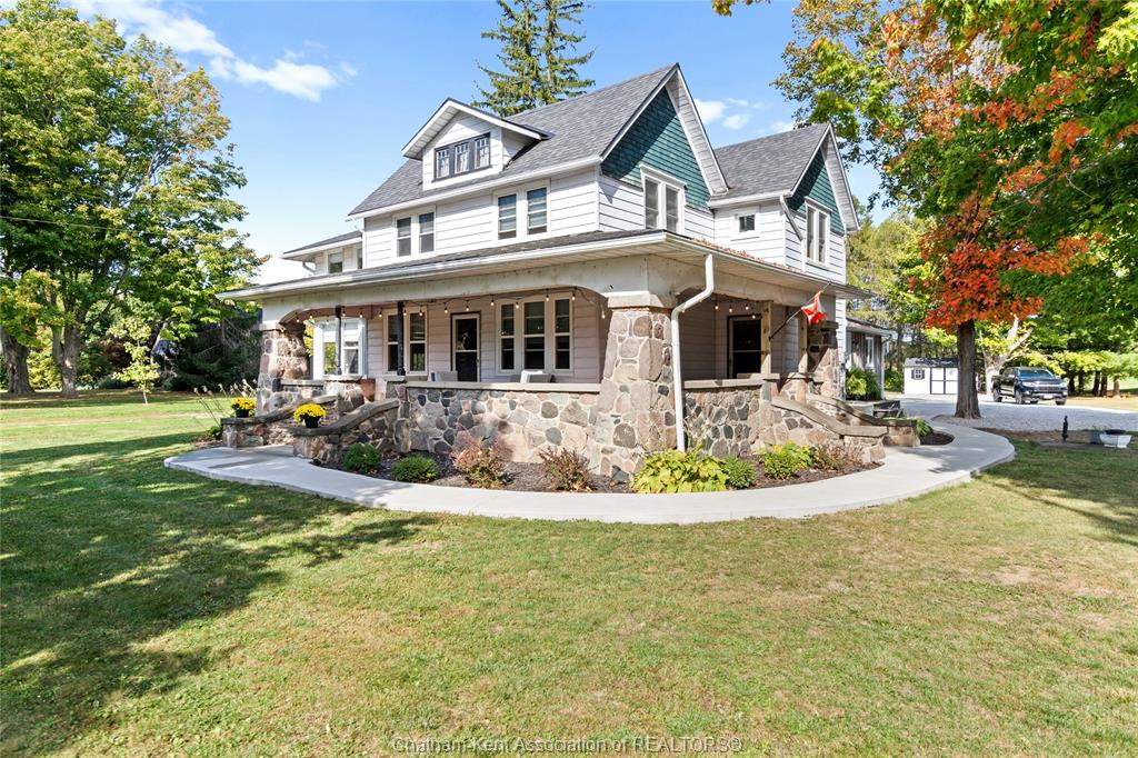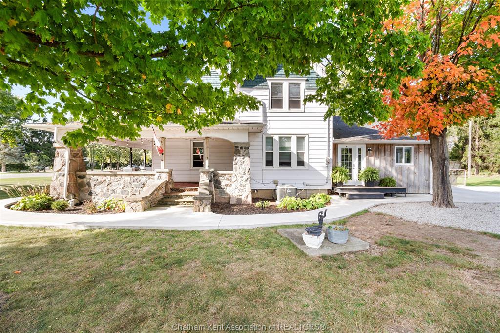 Step into a piece of history with this beautiful century home, perfectly set on a half-acre country lot backing onto deer run golf course. Bursting with character, charm, and timeless craftsmanship, this property offers the perfect blend of rural tranquility and everyday convenience. Inside, you’ll find the warmth of refinished hardwood floors, original wood trim, and generous principal rooms that reflect the grace of a bygone era. With four spacious bedrooms upstairs and multiple living areas on the main floor, there’s room for family and guests alike. Sun-filled spaces like the den and sunroom ( which could be used as a main floor bedroom) invite you to slow down, while the wood-burning fireplace makes for cozy evenings. A working kitchen with separate breakfast room, formal dining room, and main-floor laundry add comfort and practicality to this classic layout. The thoughtful addition of a mudroom and home office expands the home’s functionality, offering the perfect spot for work-from-home days or everyday organization. Outdoors, this retreat shines even brighter. Mature trees create a park-like setting, complete with a covered stone front porch, circular driveway, and space to entertain on the deck with a pool and hot tub for summer relaxation. With municipal water, natural gas, and modern updates complementing its century-old charm, this home balances history with today’s comforts. Whether you’re drawn to the rich character of an older home, the privacy of a country lot, or the rare bonus of golf course views, this property is truly one of a kind.