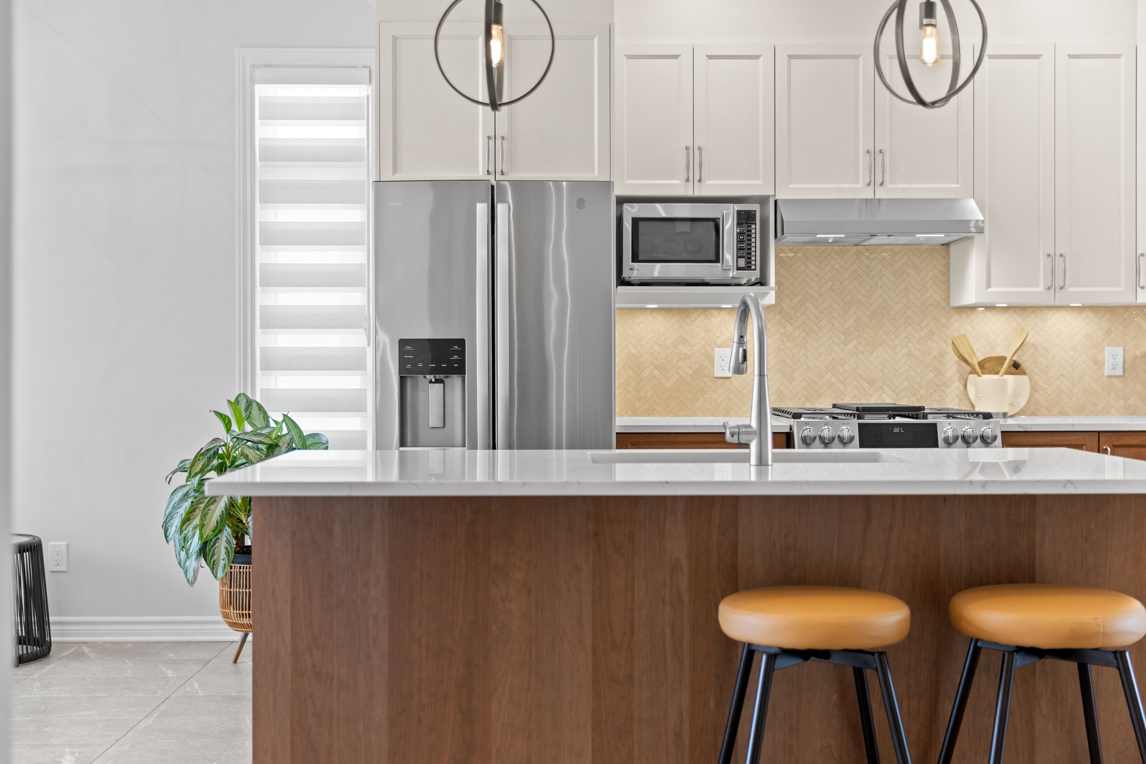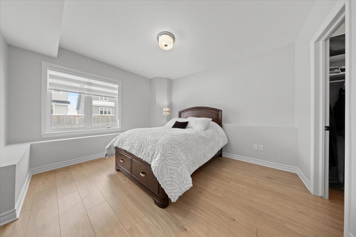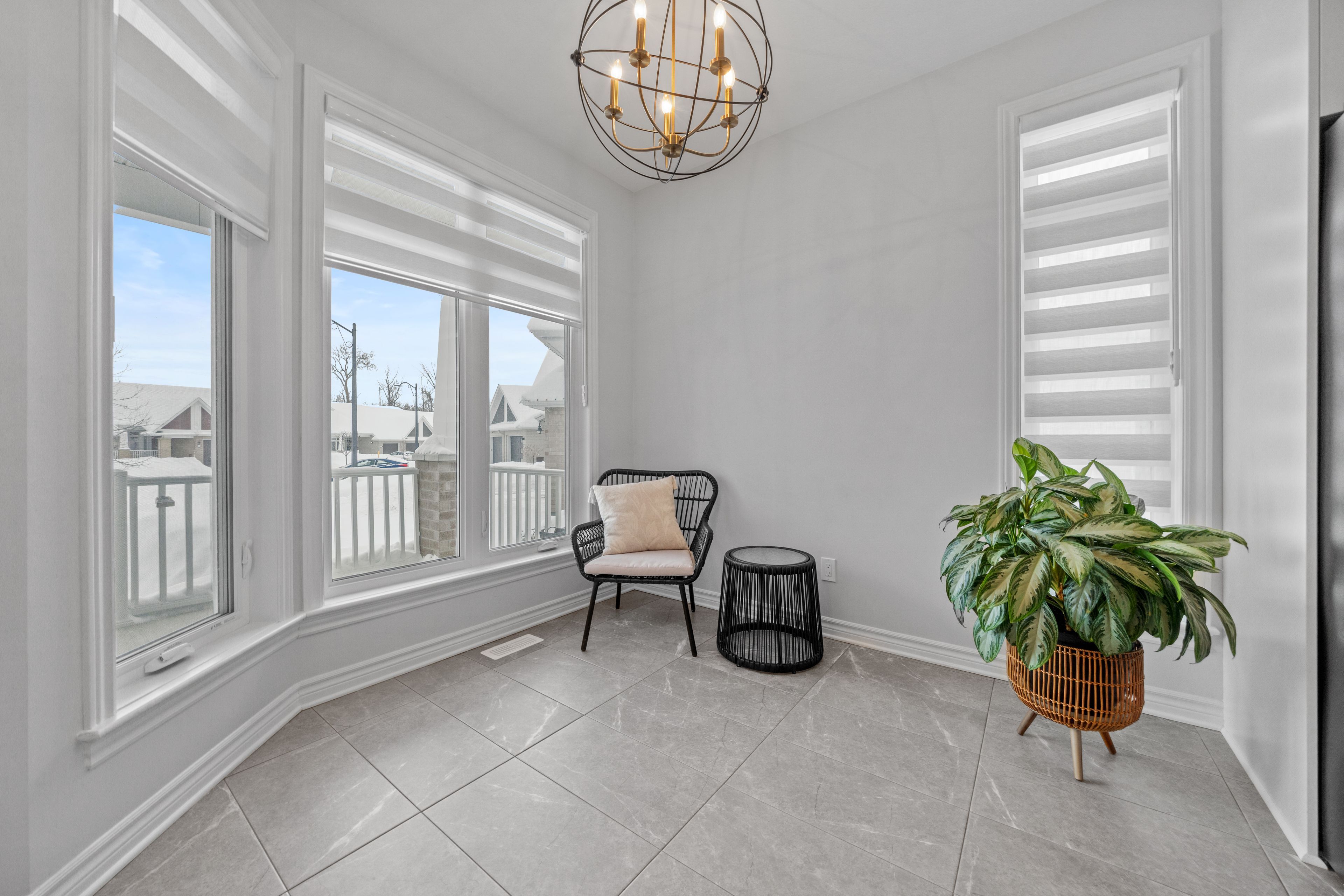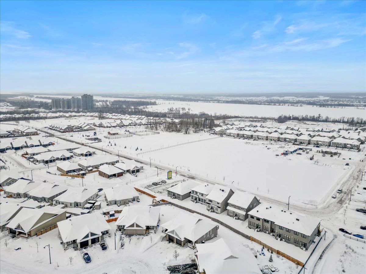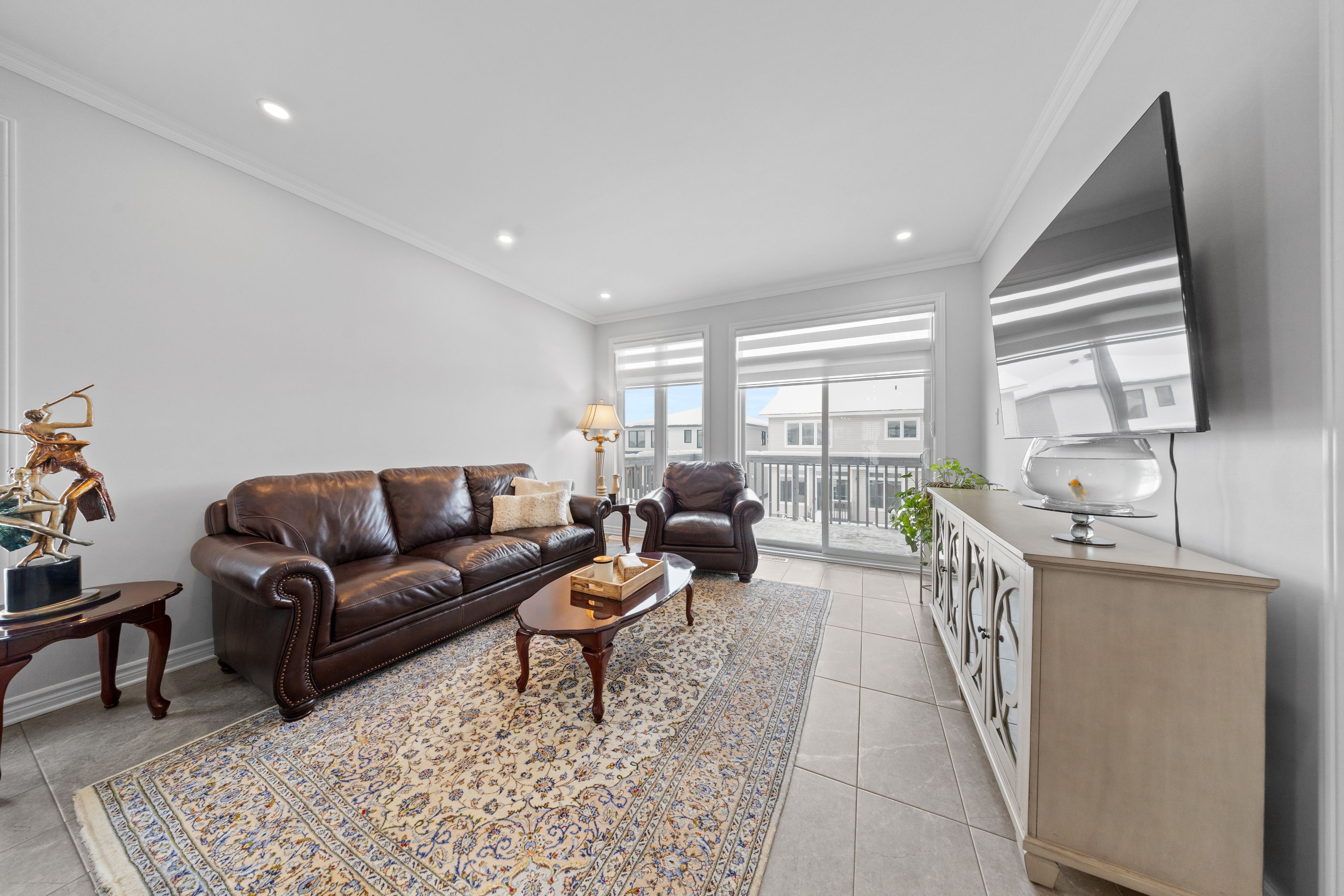 Welcome to cardinal creek village in orléans, a sought-after community by tamarack homes known for its scenic walking trails, rolling landscapes, and nearby water views. Located on a quiet court, this extensively upgraded semi-detached walkout bungalow offers exceptional design, functionality, and true move-in-ready living. Interlock walkway and extended driveway lead to a welcoming front veranda. The main level features full tile flooring throughout, including bedrooms, with flat ceilings, pot lights, crown moulding, and large windows creating a bright open-concept living and dining space. Patio doors from the living room lead to an elevated deck, ideal for enjoying evening sunsets. The upgraded kitchen offers ceiling-height cabinetry with two-tone finishes, custom fridge cabinetry, quartz countertops, extended island with breakfast bar, undermount sink, upgraded faucet, herringbone tile backsplash, gas stove, and detailed lighting. The primary bedroom includes a walk-in closet and upgraded 3-pc ensuite with quartz counters and double shower. Main level also features a 2-pc bath, walk-in pantry or optional laundry, and inside access to an oversized single-car garage. The finished walkout basement with high ceilings includes a second bedroom with walk-in closet, 5-pc bath with double sinks and quartz counters, separate laundry room, and rec room with french doors and wall-mounted fireplace. Patio doors lead to a private interlock patio. Plenty of storage. Enjoy access to community amenities including a clubhouse, tennis courts, parks, and scenic walking trails. Additional features include gas line for bbq, tankless hot water heater, air exchanger, extra kitchen outlets, dimmable pot lights, modern interior doors with matte black hardware, and oak staircase railing. A rare opportunity to own a premium, thoughtfully upgraded walkout bungalow in one of orléans' most desirable communities.