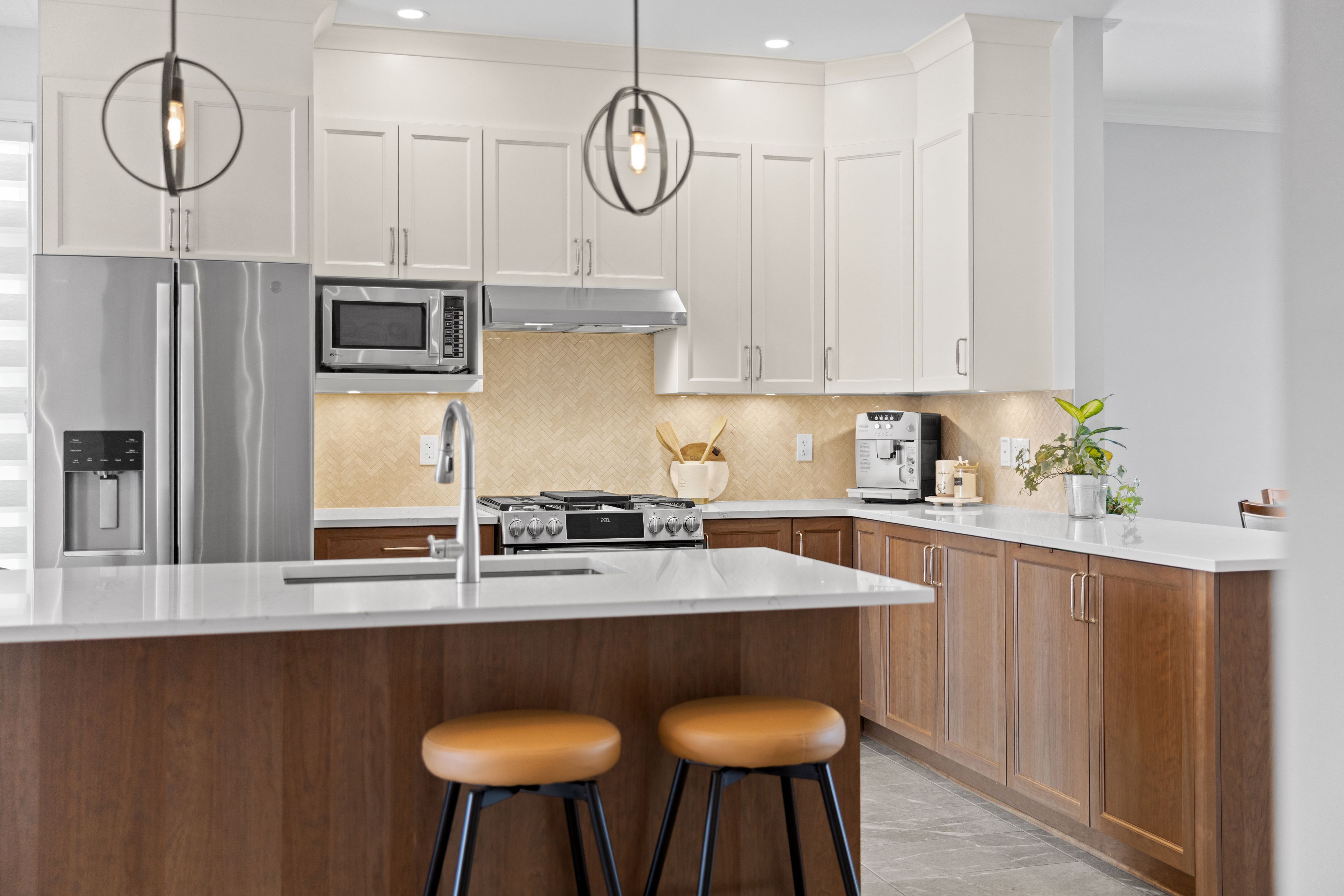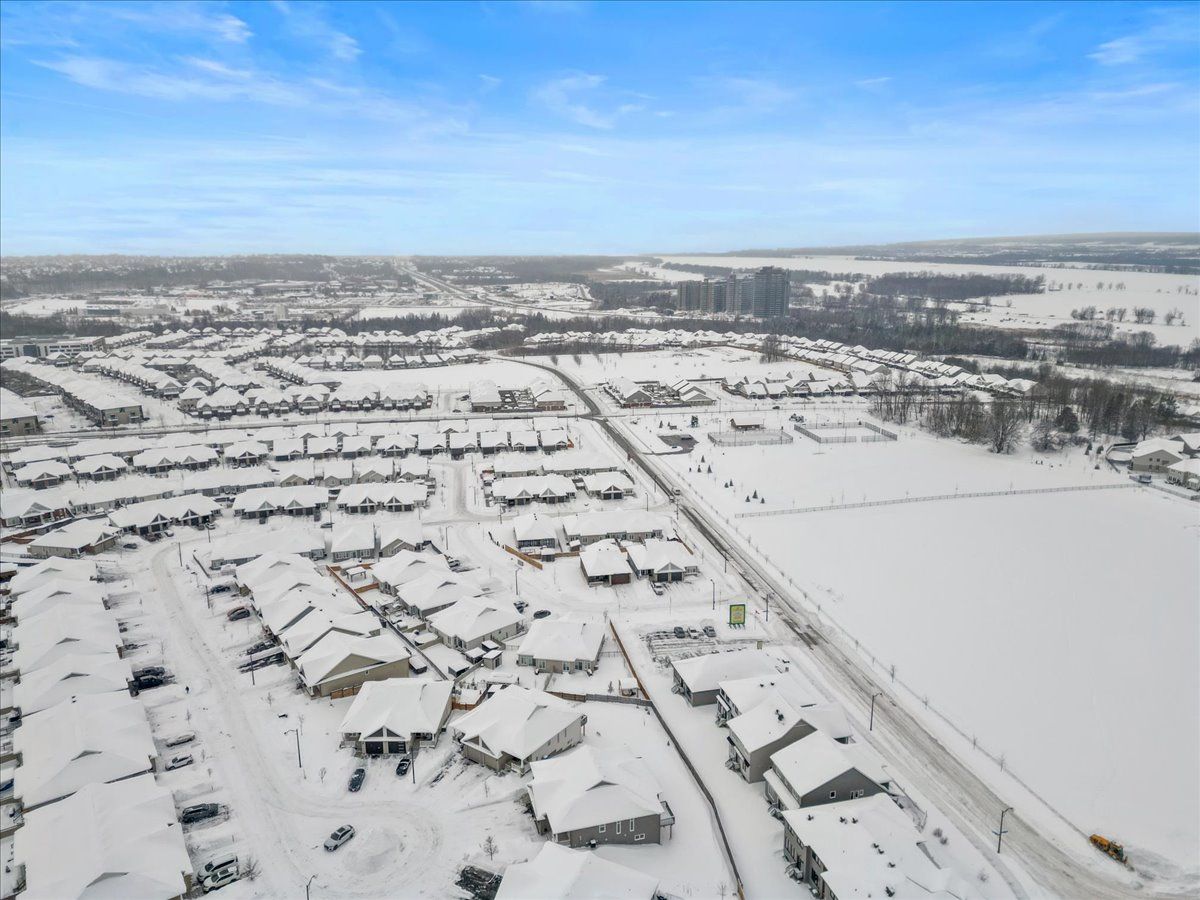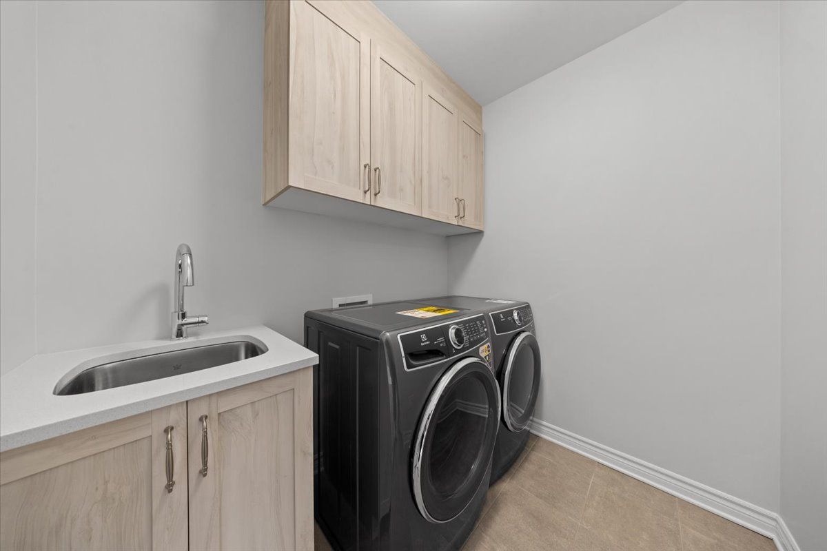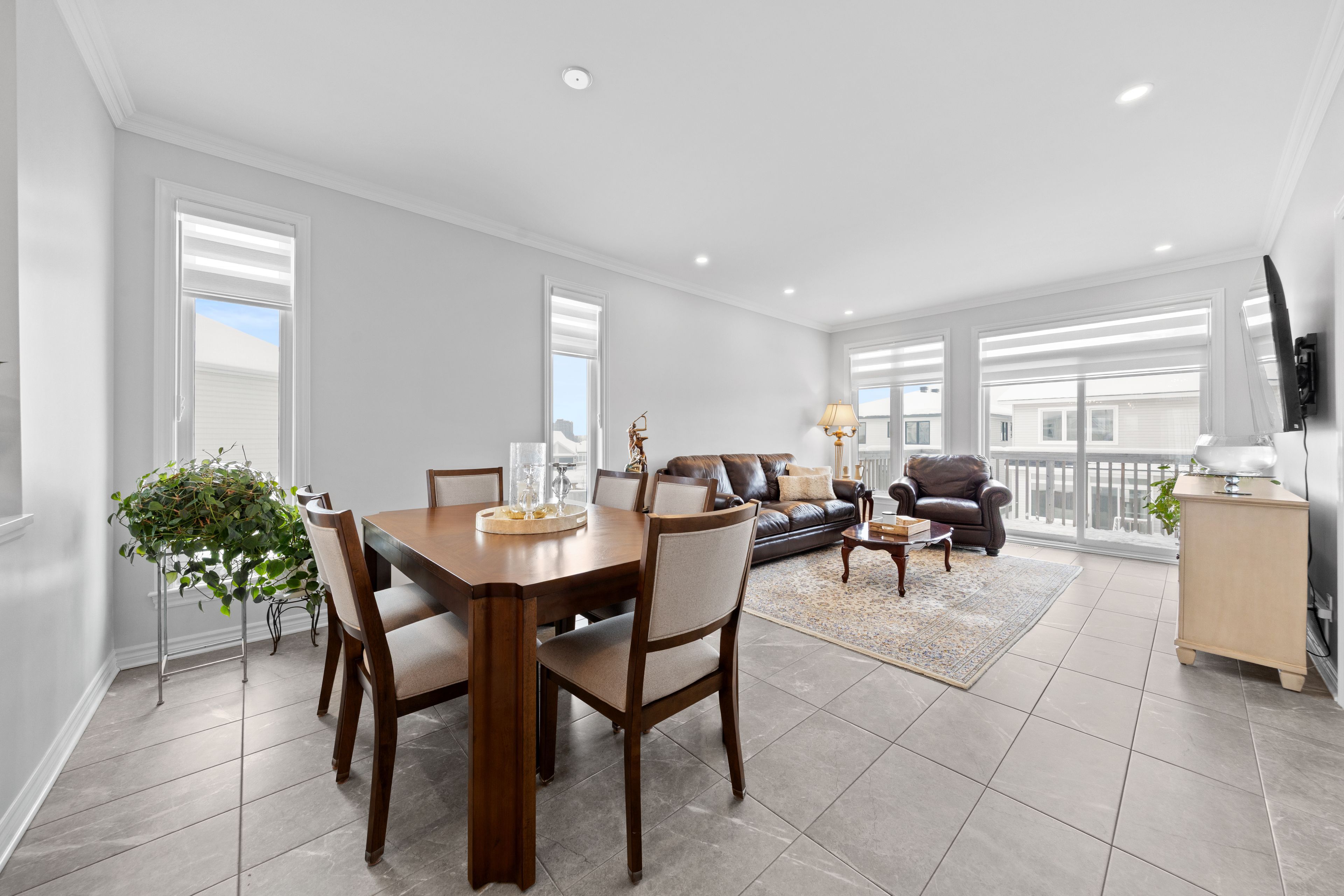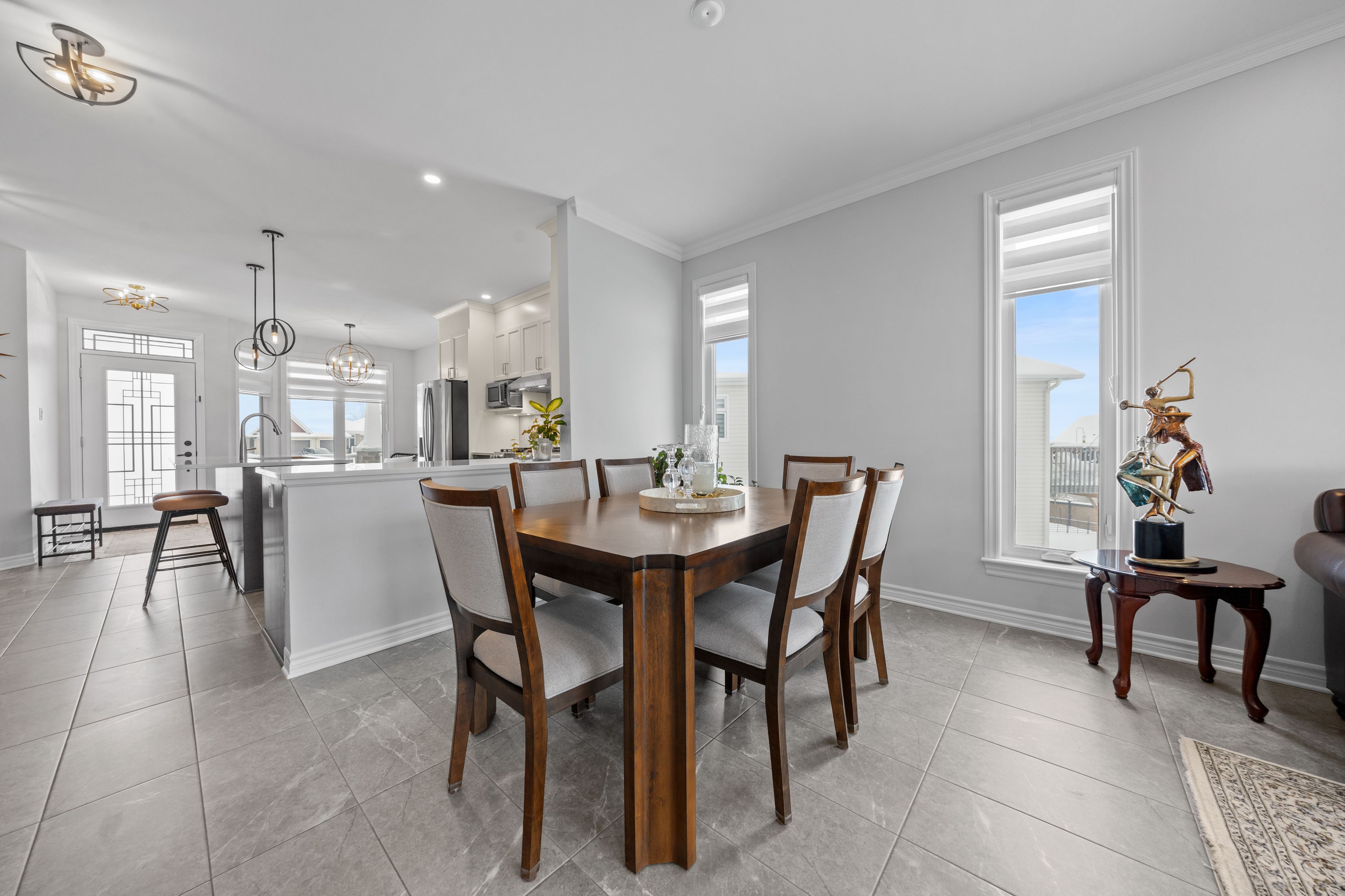 Welcome to cardinal creek village in orléans, a sought-after community by tamarack homes known for its scenic walking trails, rolling landscapes, and nearby water views. Located on a quiet court, this extensively upgraded semi-detached walkout bungalow offers exceptional design, functionality, and true move-in-ready living. Interlock walkway and extended driveway lead to a welcoming front veranda. The main level features full tile flooring throughout, including bedrooms, with flat ceilings, pot lights, crown moulding, and large windows creating a bright open-concept living and dining space. Patio doors from the living room lead to an elevated deck, ideal for enjoying evening sunsets. The upgraded kitchen offers ceiling-height cabinetry with two-tone finishes, custom fridge cabinetry, quartz countertops, extended island with breakfast bar, undermount sink, upgraded faucet, herringbone tile backsplash, gas stove, and detailed lighting. The primary bedroom includes a walk-in closet and upgraded 3-pc ensuite with quartz counters and double shower. Main level also features a 2-pc bath, walk-in pantry or optional laundry, and inside access to an oversized single-car garage. The finished walkout basement with high ceilings includes a second bedroom with walk-in closet, 5-pc bath with double sinks and quartz counters, separate laundry room, and rec room with french doors and wall-mounted fireplace. Patio doors lead to a private interlock patio. Plenty of storage. Enjoy access to community amenities including a clubhouse, tennis courts, parks, and scenic walking trails. Additional features include gas line for bbq, tankless hot water heater, air exchanger, extra kitchen outlets, dimmable pot lights, modern interior doors with matte black hardware, and oak staircase railing. A rare opportunity to own a premium, thoughtfully upgraded walkout bungalow in one of orléans' most desirable communities.